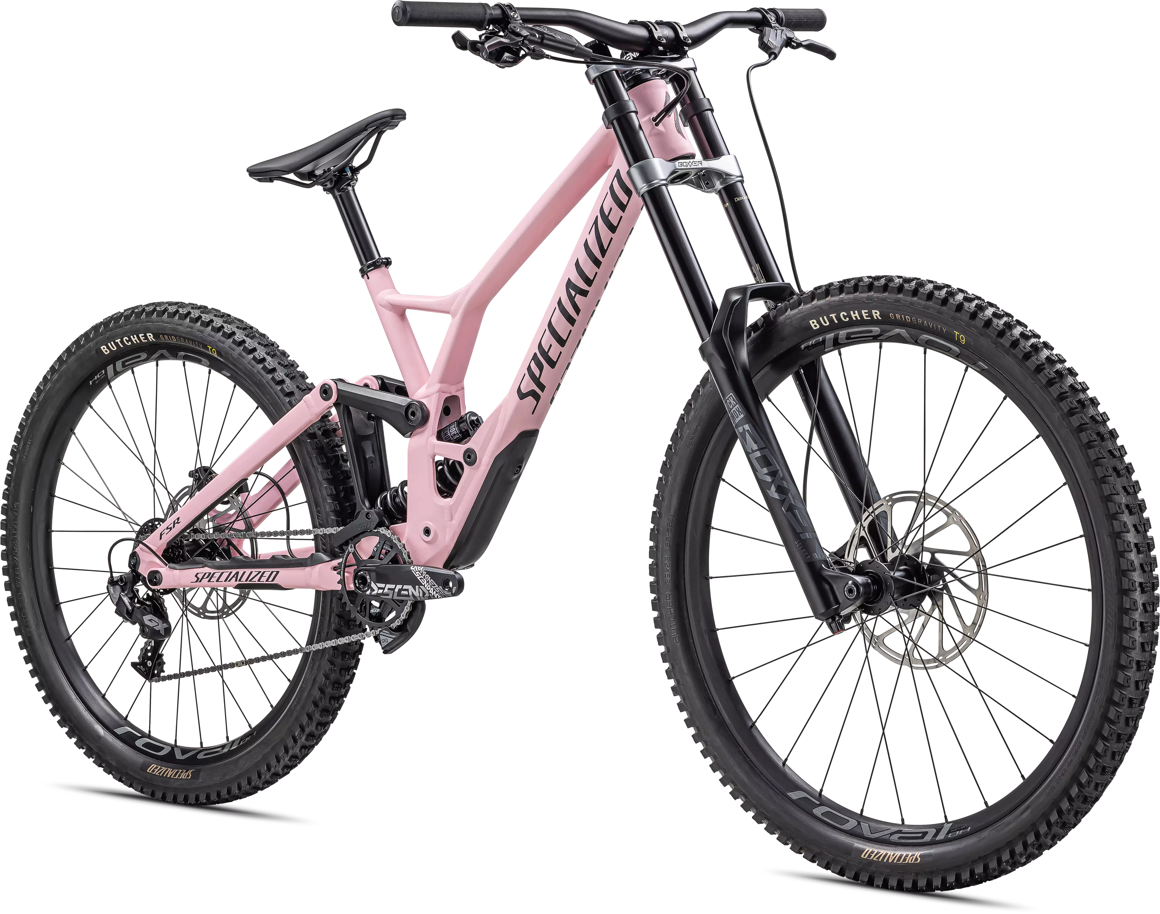 RockShox BoXXer Select 29, DH DebonAir spring, adjustable low-speed compression, adjustable rebound, short crown, 20x110mm thru-axle, 56mm offset, 200mm of travel