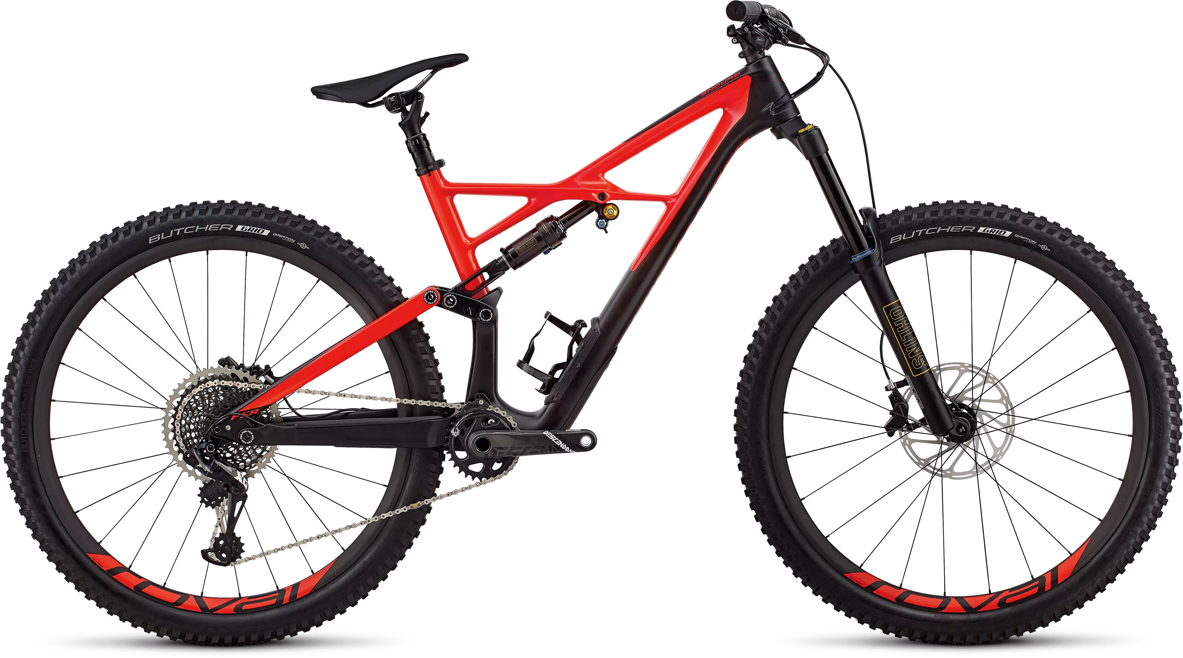 For the build, this Enduro spares no expense at hitting the pinnacle of performance, with a full SRAM X01 Eagle 12-speed groupset, powerful SRAM Code R brakes, stupid-fast Roval carbon wheels, a Command Post IRcc Wu dropper post, and an Öhlins RXF 36 fork up front.