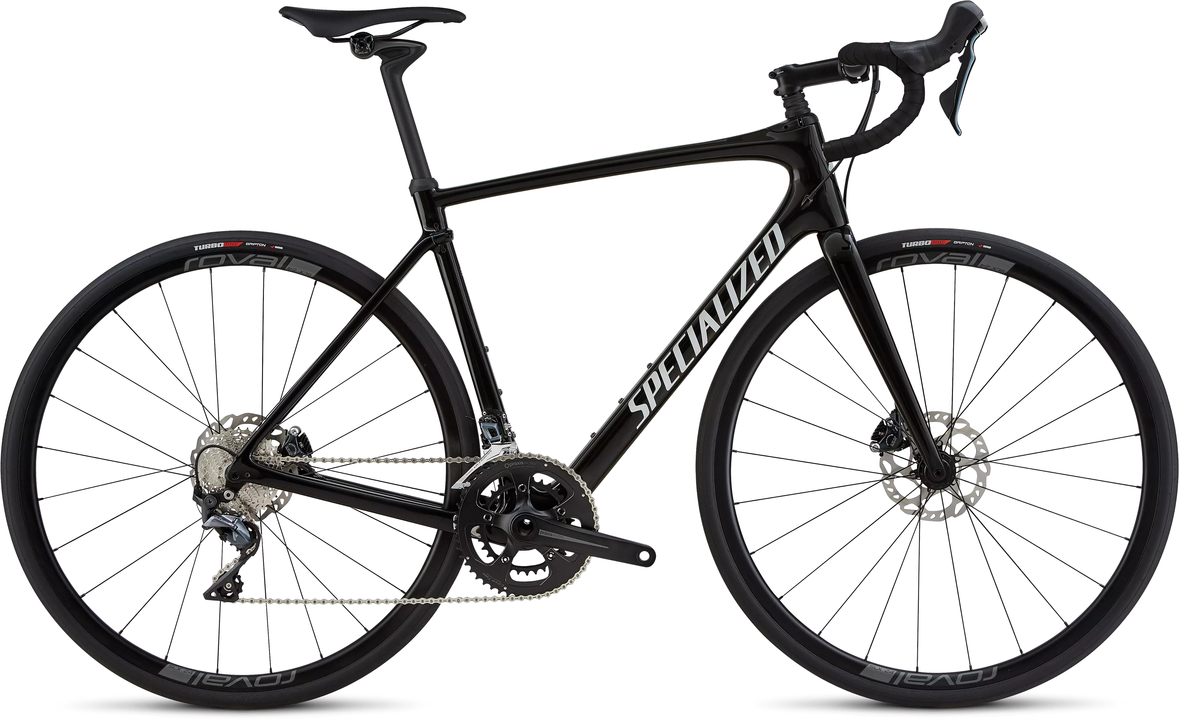Lastly, we spec'd it with awesome components, like Ultegra 8000 11-speed mechanical shifting, 8020 hydraulic disc brakes, and ultra-tough Roval SLX 24 wheels that have been cased in our Turbo Pro 28mm tires.
