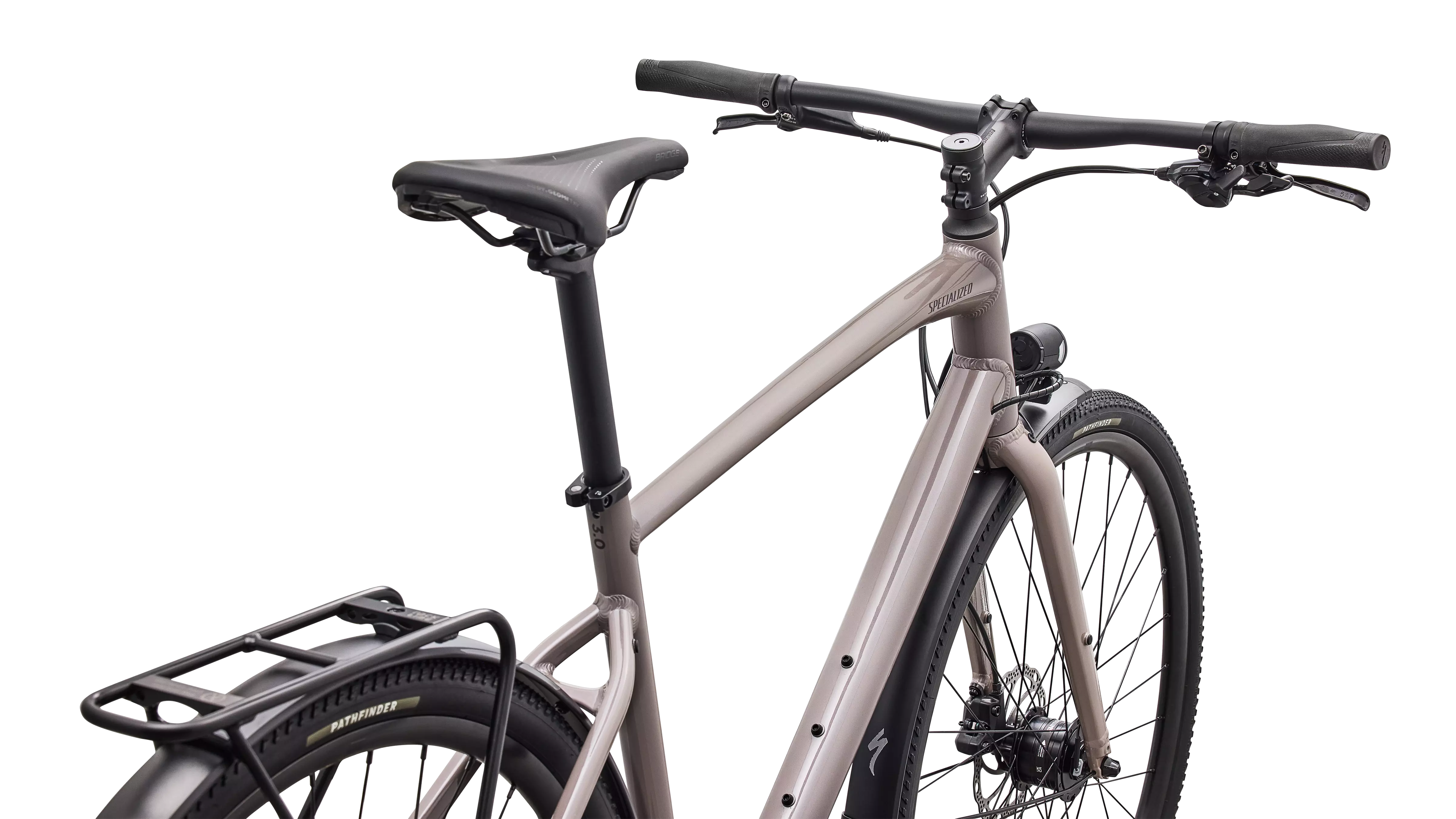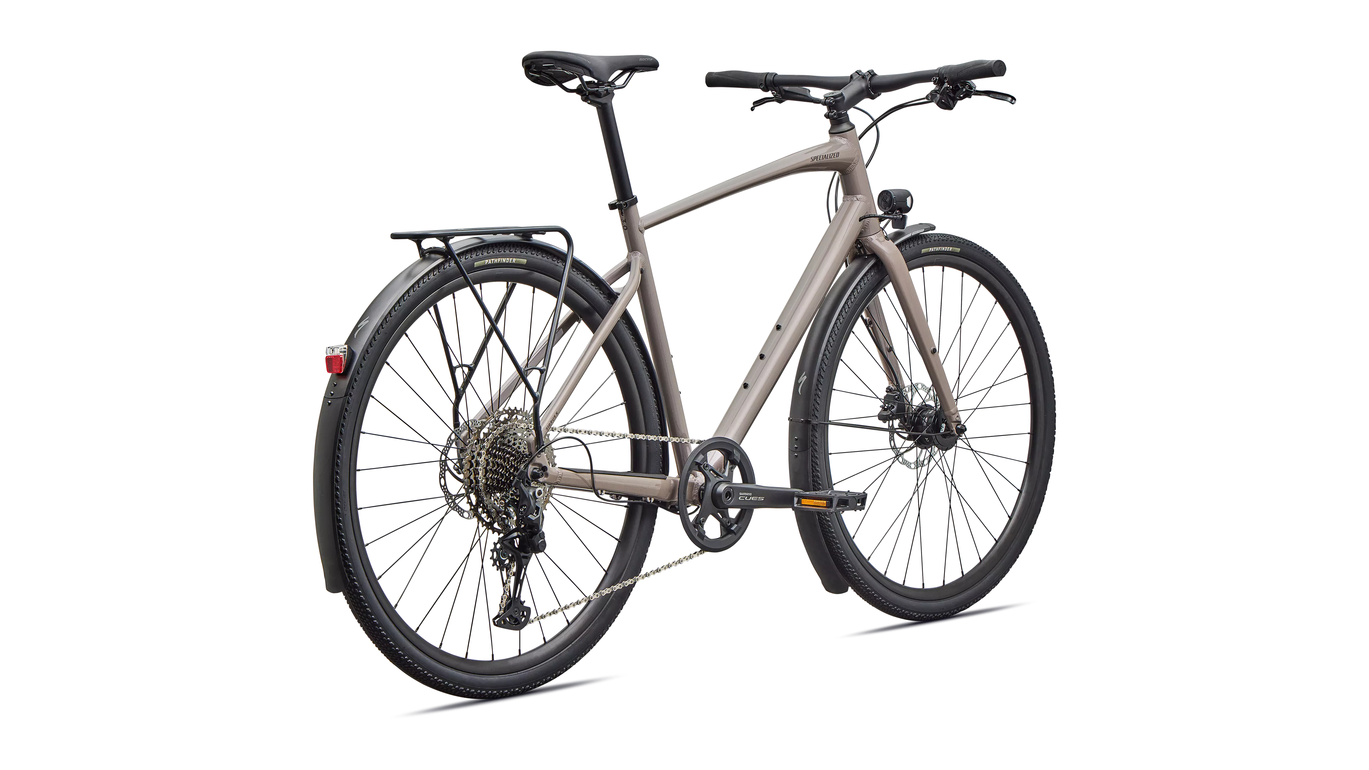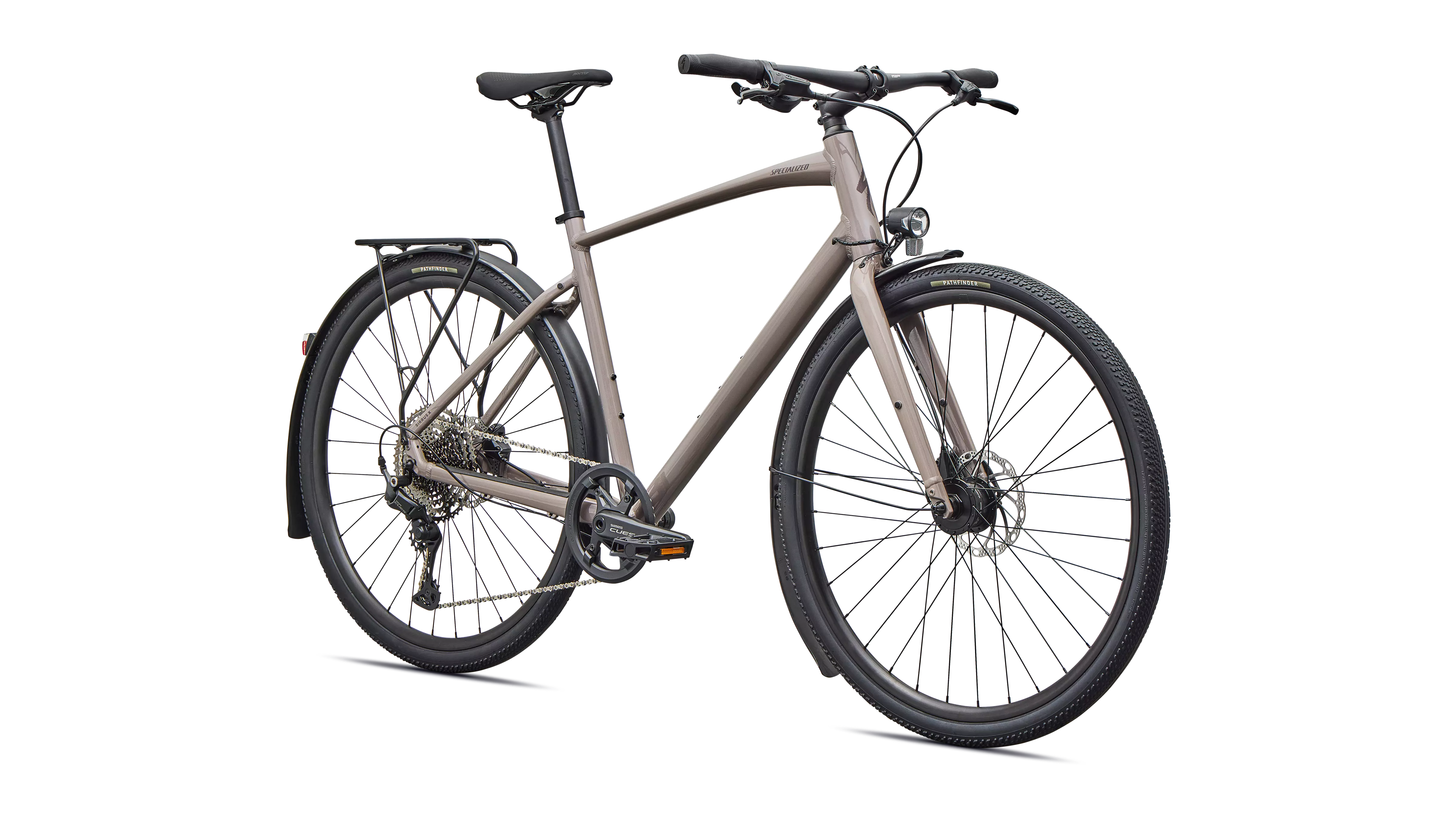 Specialized A1 Premium Aluminum, Fitness Geometry, butted tubing, internal cable routing, flat-mount disc, quick-release, Plug + Play rack/fender mounts