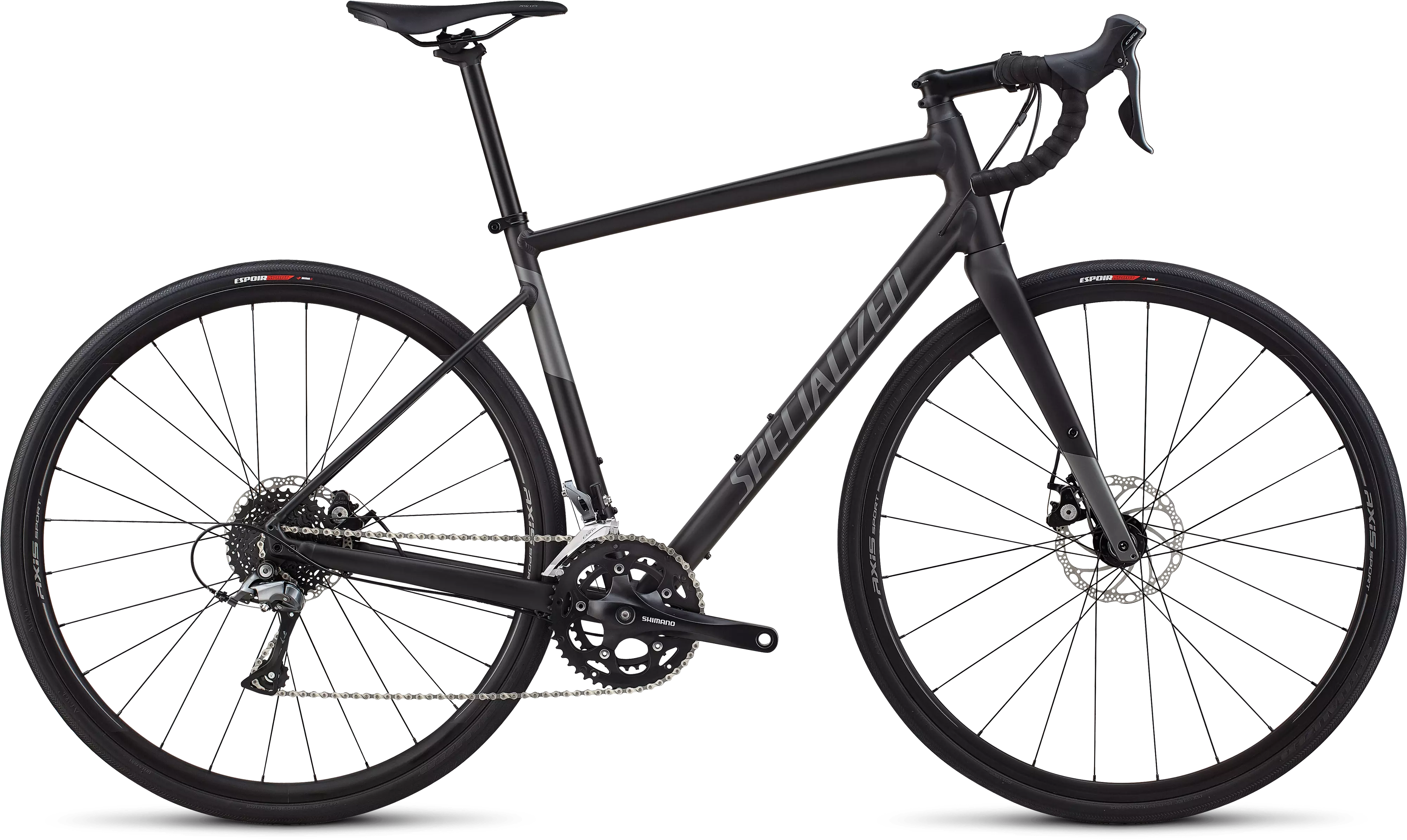 Specialized E5 Premium Aluminum, Open Road Geometry, threaded BB, 12x142mm thru-axle, flat-mount disc