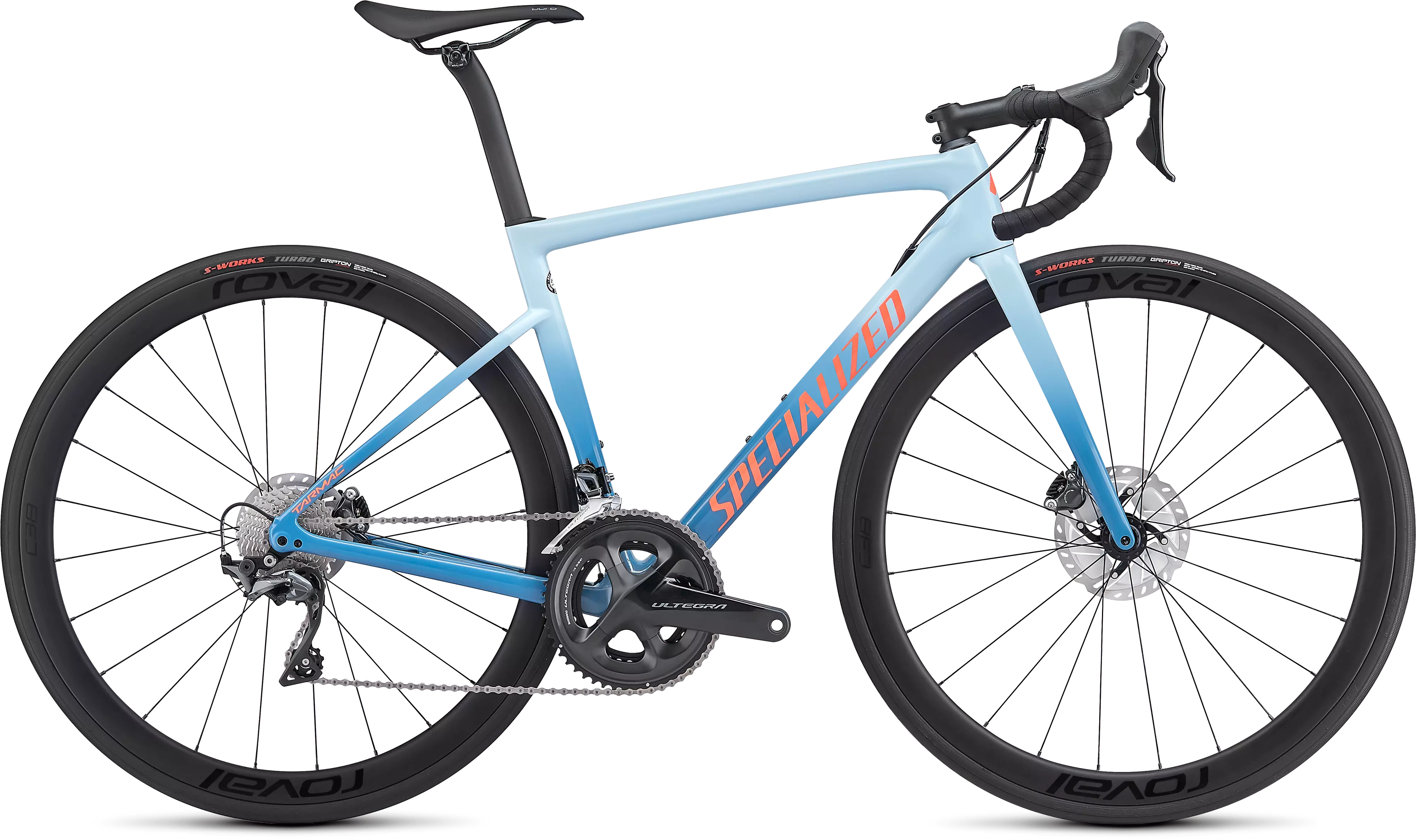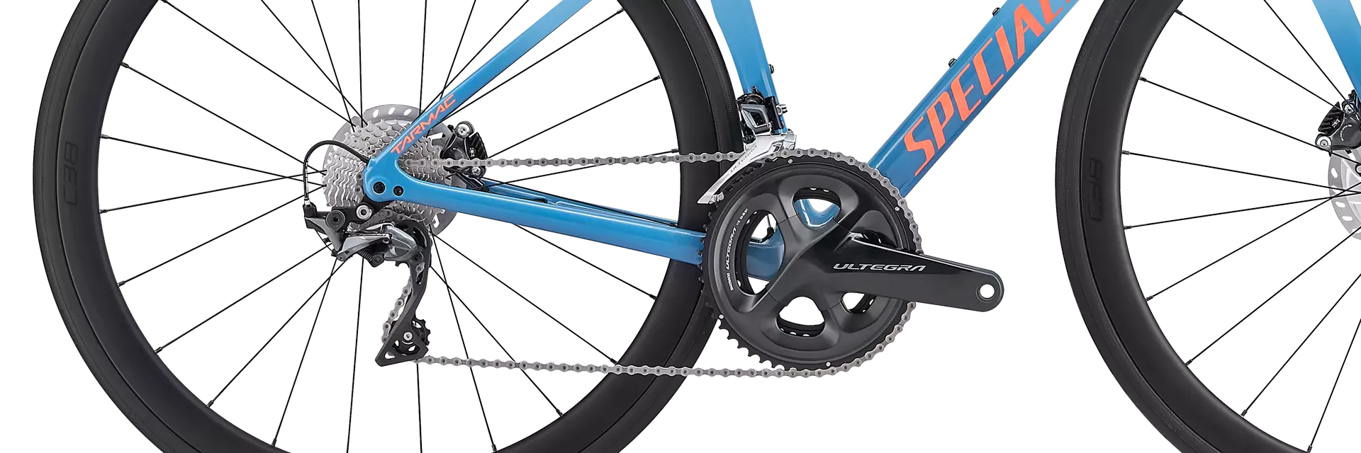 La construcción de las especificaciones en esta Tarmac Disc para Mujer es excepcional, presenta cambios mecánicos Shimano Ultegra, frenos disco hidráulicos Shimano, y un conjunto de ruedas de fibra de carbono Roval C 38 Disc, y un conjunto de piezas específicas para Mujer en cada punto de contacto de la bici, como el extraordinario Asiento Power para Mujer con tecnología Mimic.
