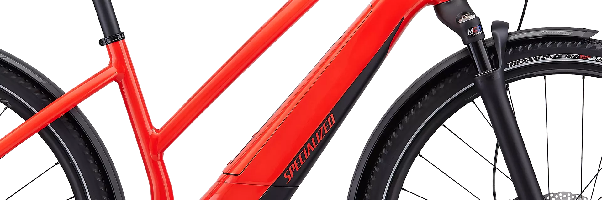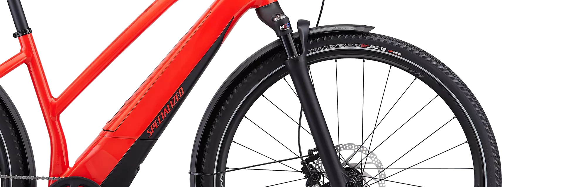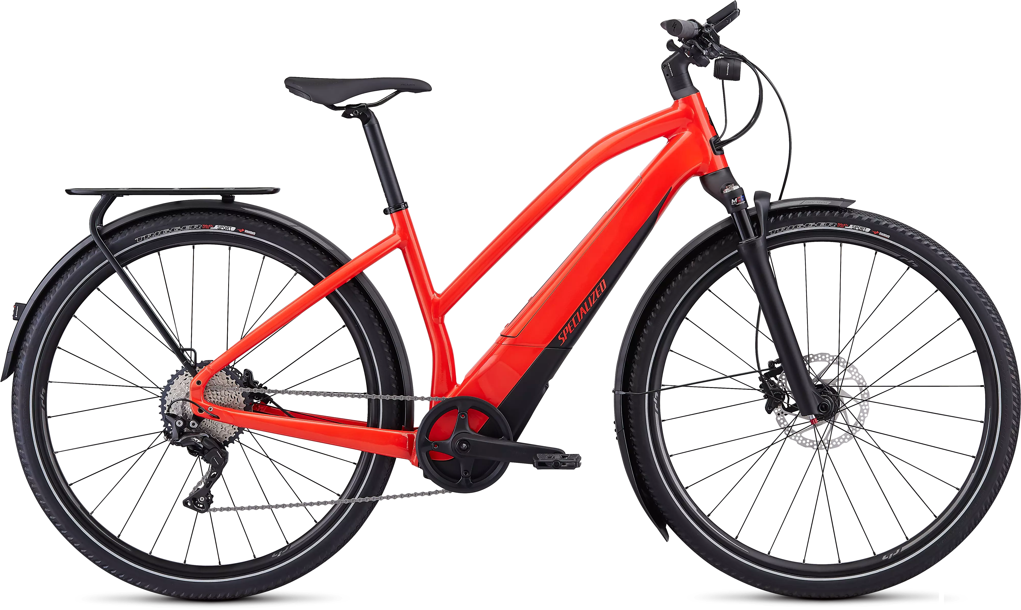 To top off all of the innovative features, we chose a worry-free spec on the Turbo Vado 4.0, so it features Shimano 11-speed components, hydraulic disc brakes, racks, and fenders.