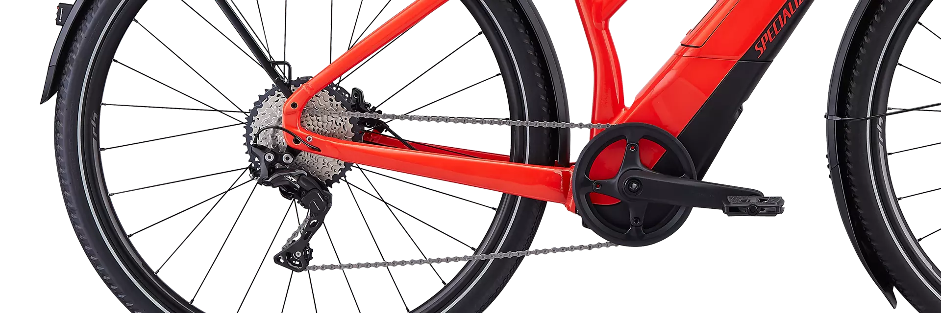 The Vado’s Specialized 1.2 motor is fully integrated with the frame, and it's also been custom-tuned for city riding. It intuitively reacts to the force of your pedaling, so the harder you pedal, the more power it delivers. And with an internal belt drive design, it does this without added vibration for the smoothest and most silent ride possible.