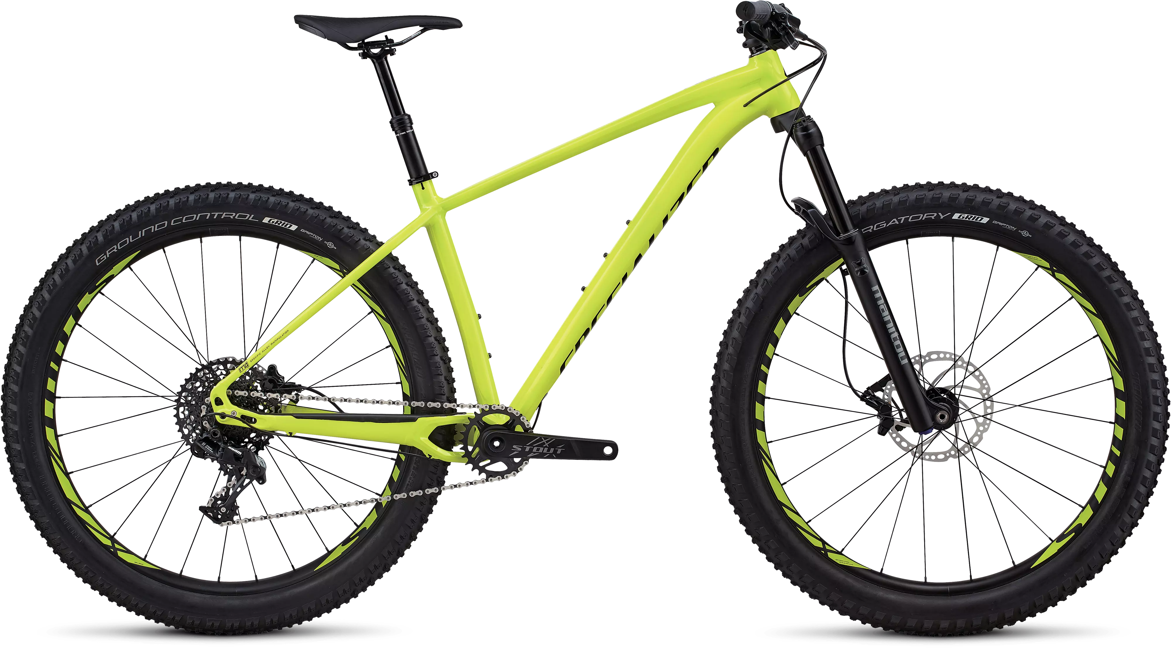 Specialized M4 Aluminum w/ Smooth Welds, tapered head tube and seat tube, forged post mount 160mm disc, 148mm thru-axle dropout, alloy replaceable derailleur hanger