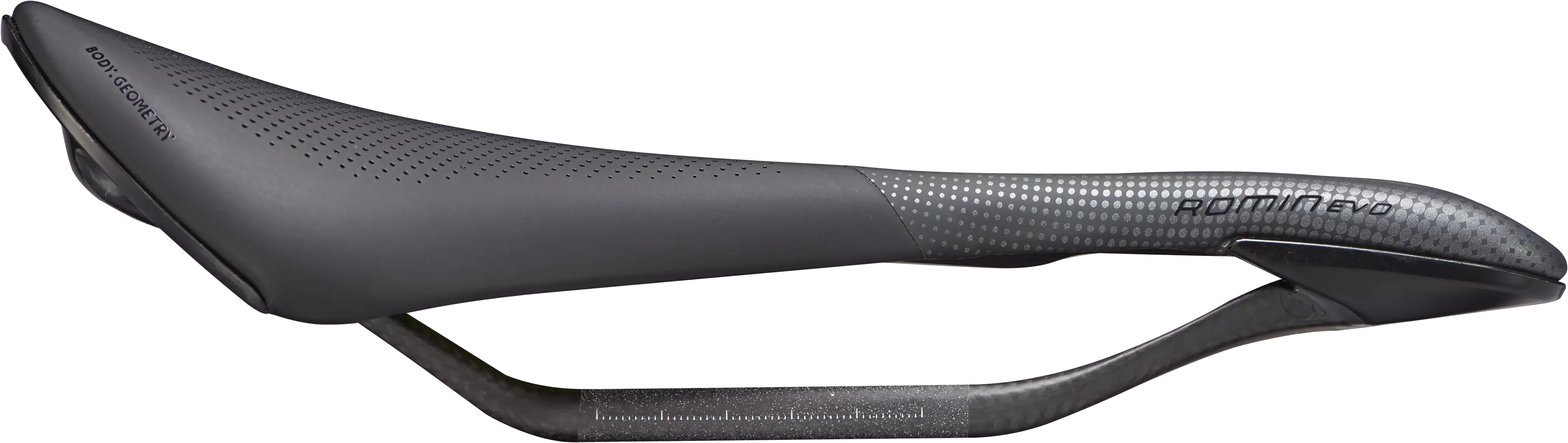 And when you combine this technology with the long-nosed, curved profile of the Romin EVO Pro saddle, with its FACT carbon rails and Level 2 padding for extra comfort, you get a high-performance saddle that's designed to help you perform at your best. It still features all of the Body Geometry design characteristics you know and love, so you can be assured of superior, all-day comfort in any ride position.