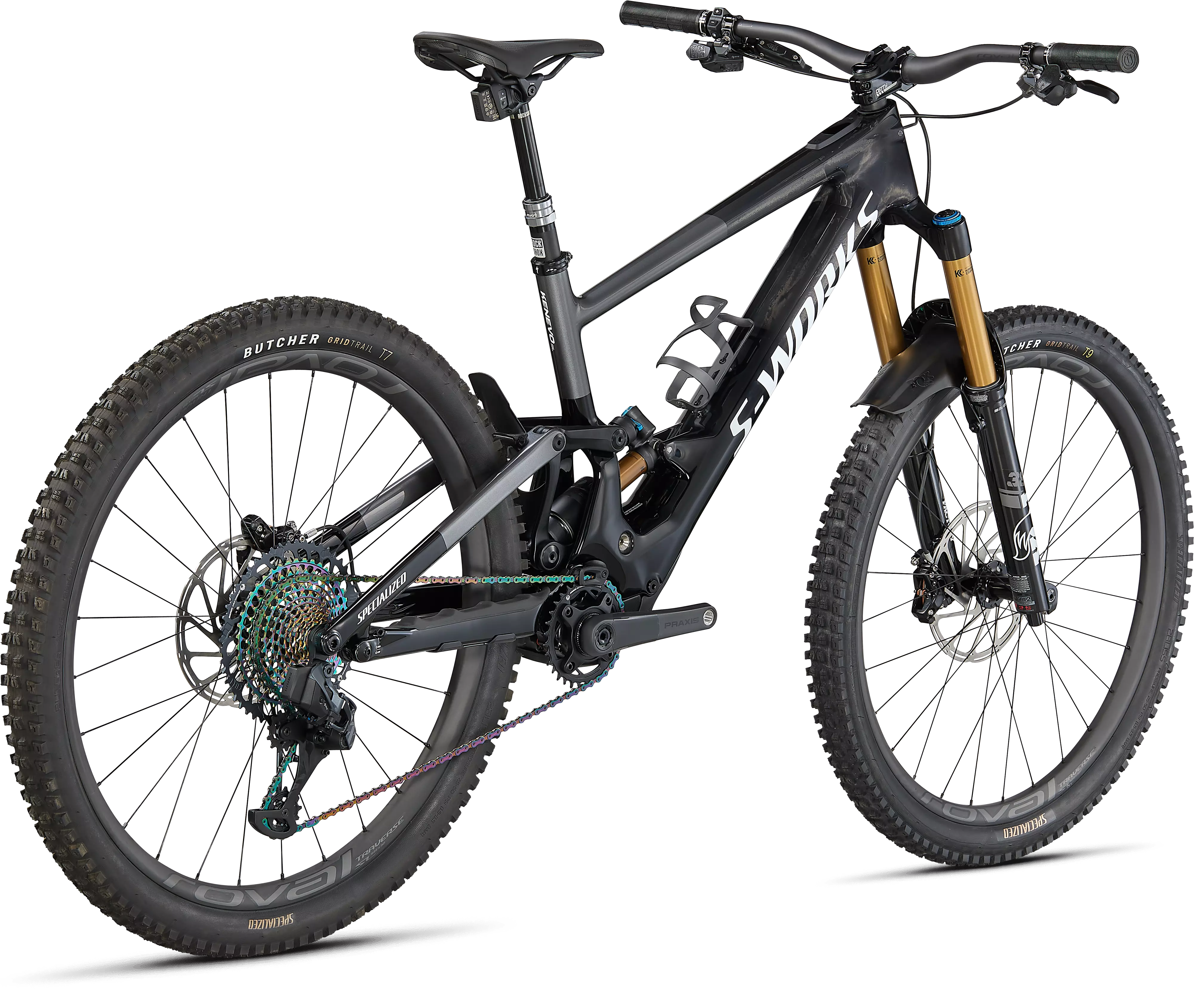No reparamos en gastos con la S-Works Turbo Kenevo SL: la hemos montado con los mejores componentes disponibles, incluida la transmisión SRAM Eagle AXS XX1 de primer nivel, suspensiones FOX Factory y ruedas Roval Traverse SL superligeras y superresistentes.