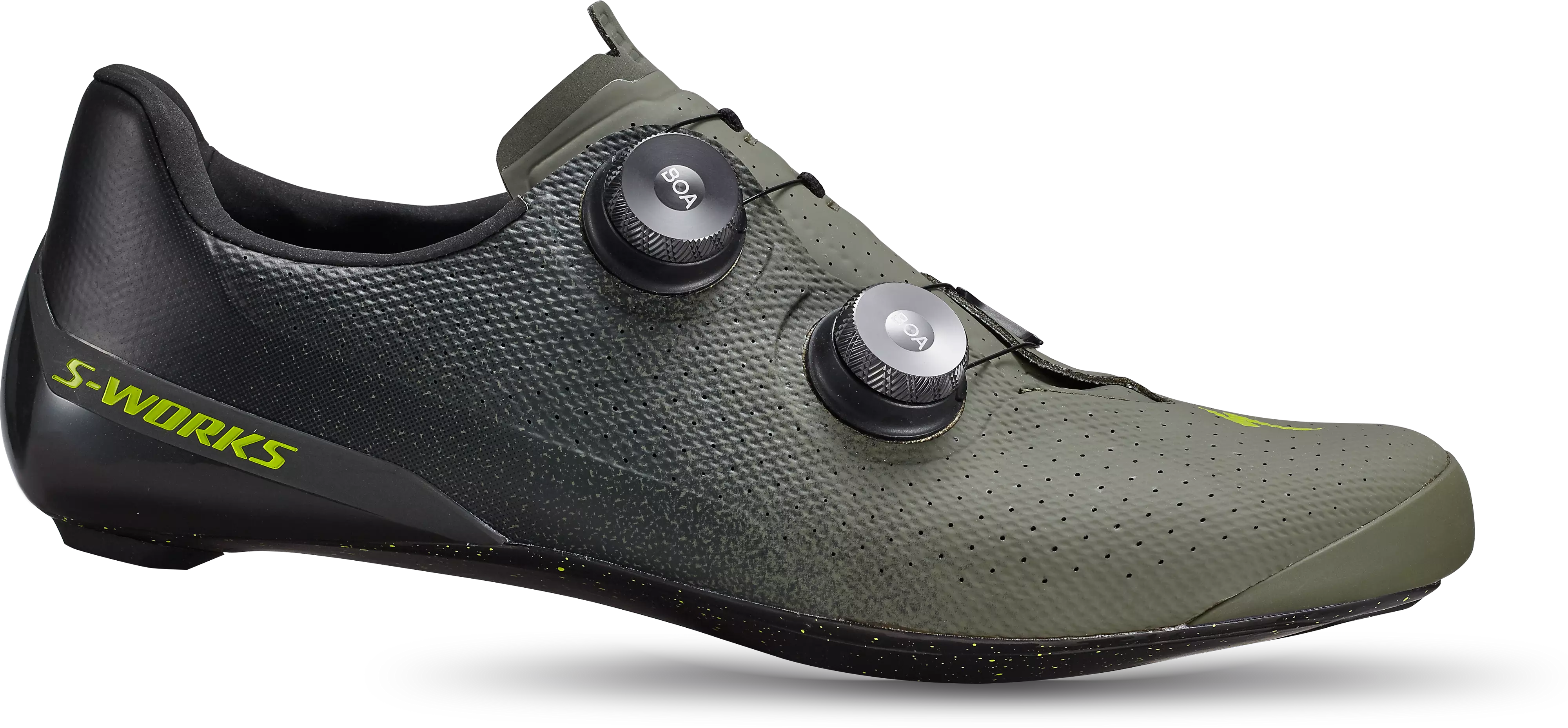 The S‑Works Torch is built for riders who demand uncompromising speed and efficiency. Whether it's serving the world's fastest professionals racing the grand tours or the local race scene, its ultra-light carbon sole with internal I‑Beam structure shaves 20 grams off our previous S-Works 7 and delivers maximum stiffness for instant power transfer—every watt goes straight to the pedals. A refined BOA® Fit System ensures micro-adjustable precision and mid-foot lockdown, while adaptive materials and a data-driven last create a fit that feels custom, even under peak effort. Our Body Geometry philosophy is meticulously built into every shoe, supporting hip, knee, foot alignment with expanded width options, an asymmetric heel cup for support under load, and a wide range of cleat adjustability for perfect positioning, the Torch disappears beneath you—leaving nothing but pure performance and all-day comfort.