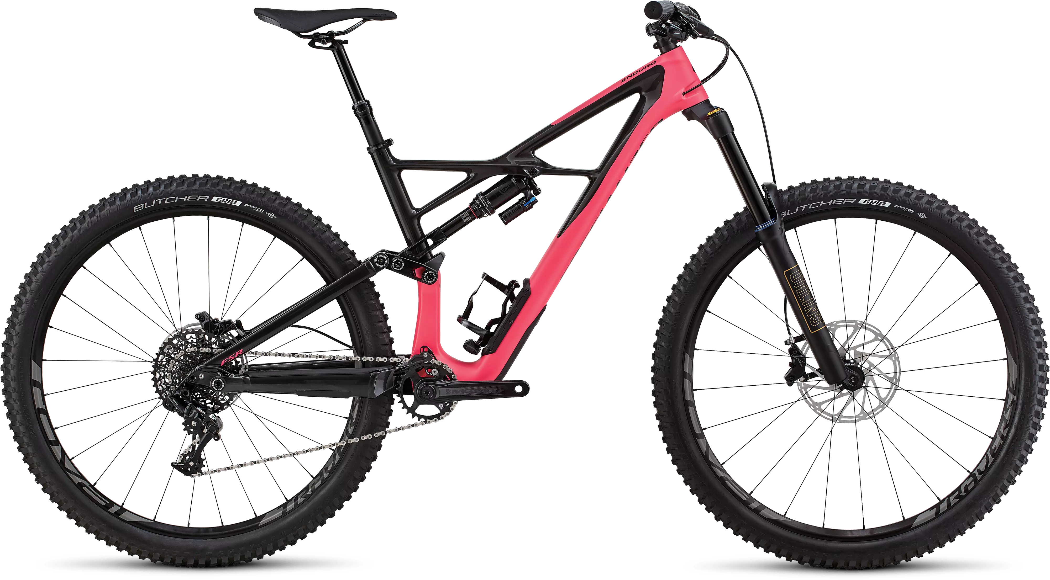 For the build, this Enduro is packed with drool-worthy gear, like SRAM one-by 11-speed shifting, powerful Code R brakes, hand-built Roval wheels, and a Öhlins RXF 36 fork up front.