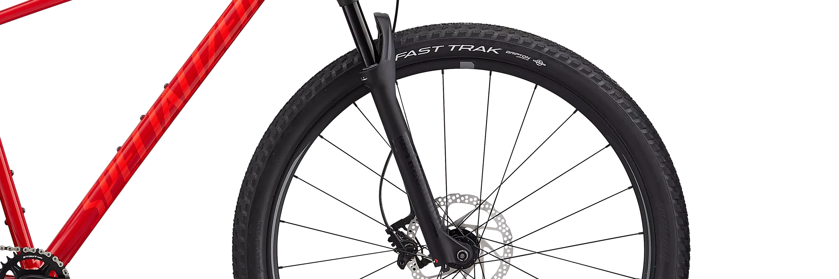 • Rocks and bumps are soaked up via the RockShox Judy Gold fork with 90/100 millimeters of travel (size-specific). It features proprietary technology from RockShox, like its Solo Air™ spring, that maintains an ideal equilibrium, as well as being one of the lightest air springs on the market.