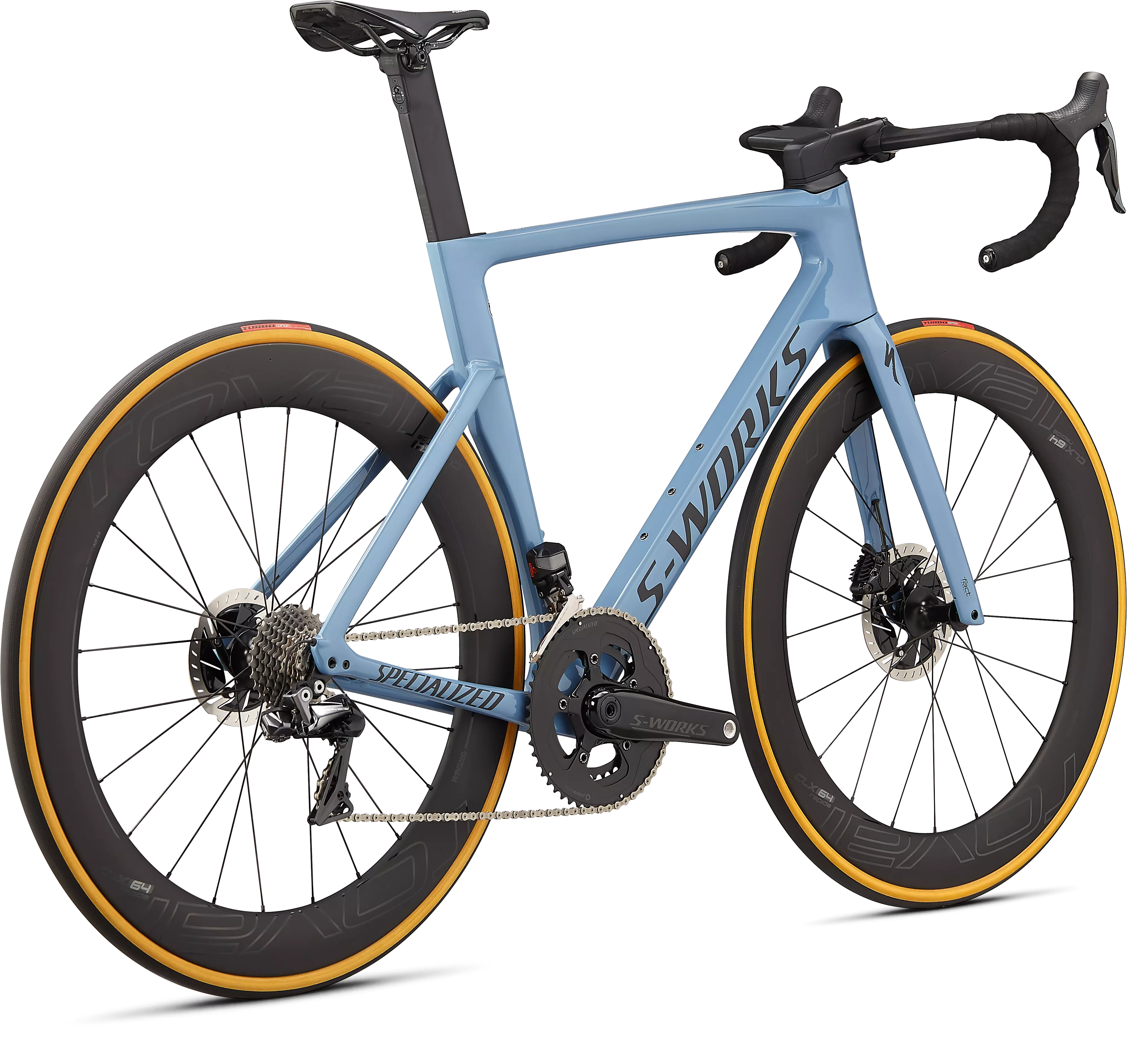 The S-Works Venge comes with the best components spec around, with Shimano Dura-Ace Di2, hydraulic disc brakes, Roval CLX 64 Disc wheels dressed with 700x26mm Turbo Cotton Tires, and our S-Works Power Cranks that are the lightest & most accurate in the world.