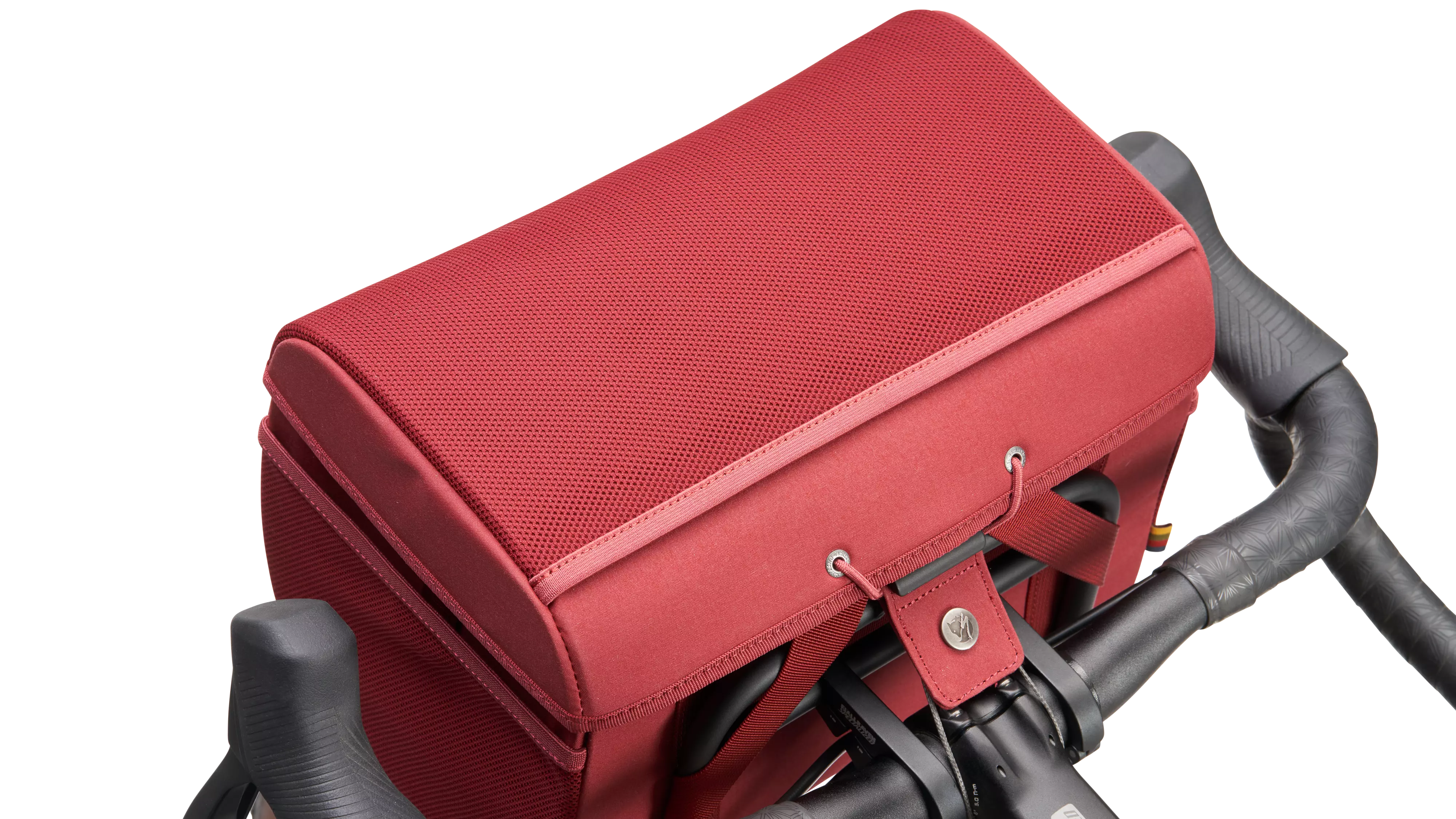 The Handlebar Bag provides easy-access storage and works just as well on urban missions as on gravel escapes. Slide it onto the handlebar frame and fasten it with straps (note that the handlebar frame is not included and must be bought separately for the handlebar bag to function on a bike). Should you not want to leave it on your bike, it detaches easily and you can carry it with the removable shoulder strap. Elastic mesh pockets on the top and sides for items you want close at hand. Two attachment points on the front for tent poles, accessories, or the Specialized/Fjällräven Snack Bag. Note: The lid and seams are not sealed, but the lining is waterproof, so the bag offers protection from the rain. Part of the Specialized/Fjällräven series for urban rides and bikepacking adventures.
