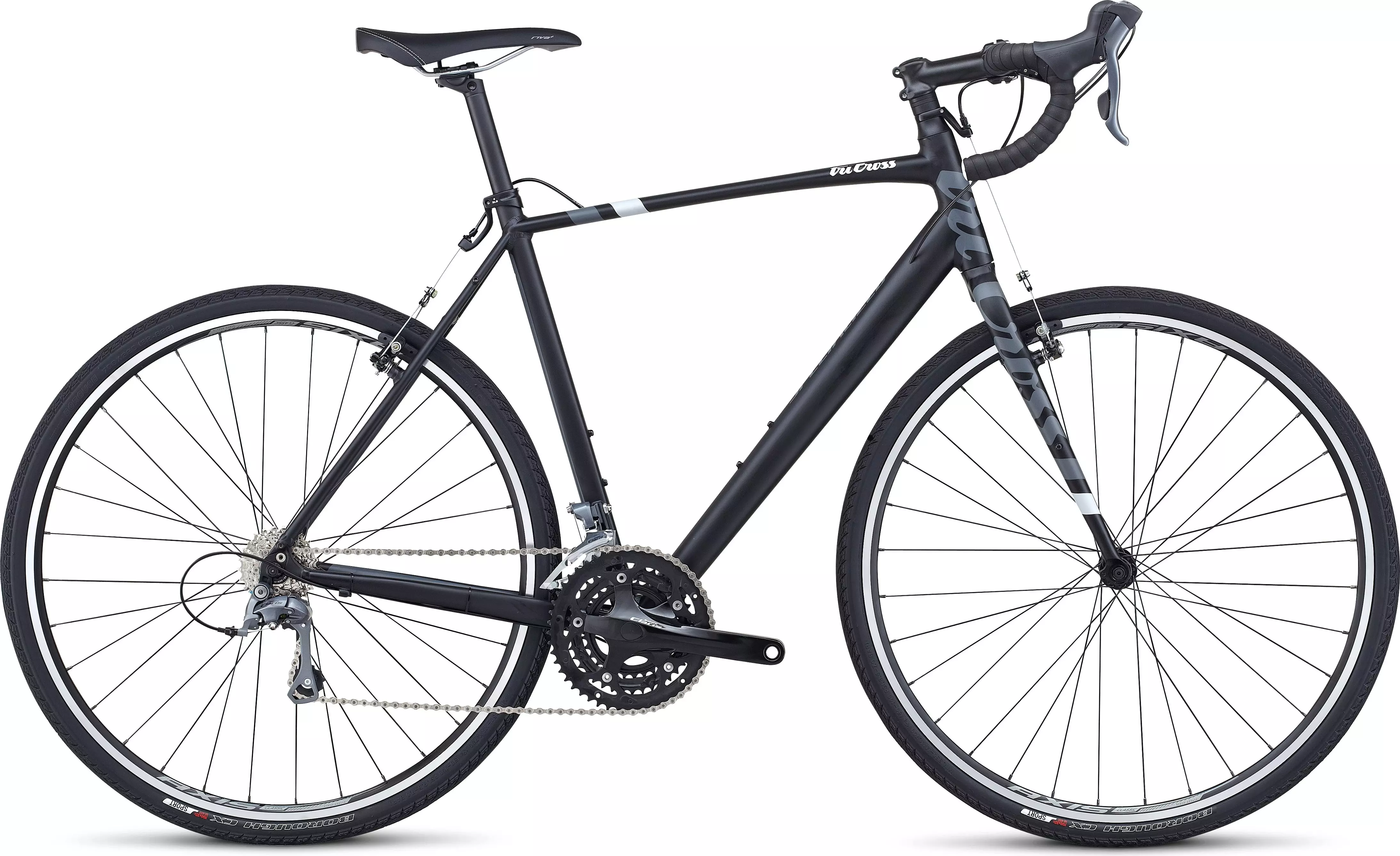 Tricross is the perfect do-it-all bike for anything from trails to commuting to touring, with rack/mudguard mounts, wide-range gearing, and secondary brake levers.