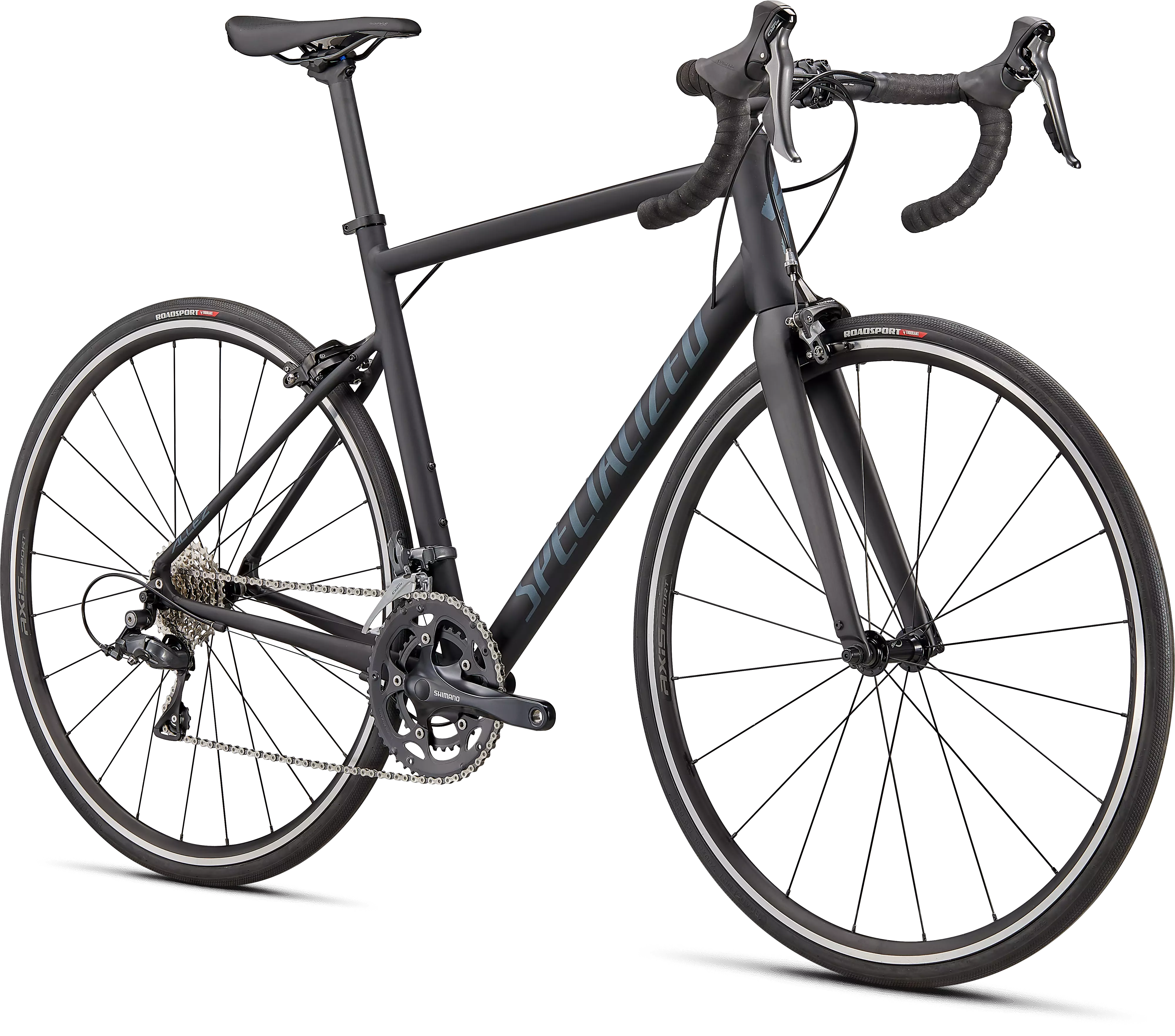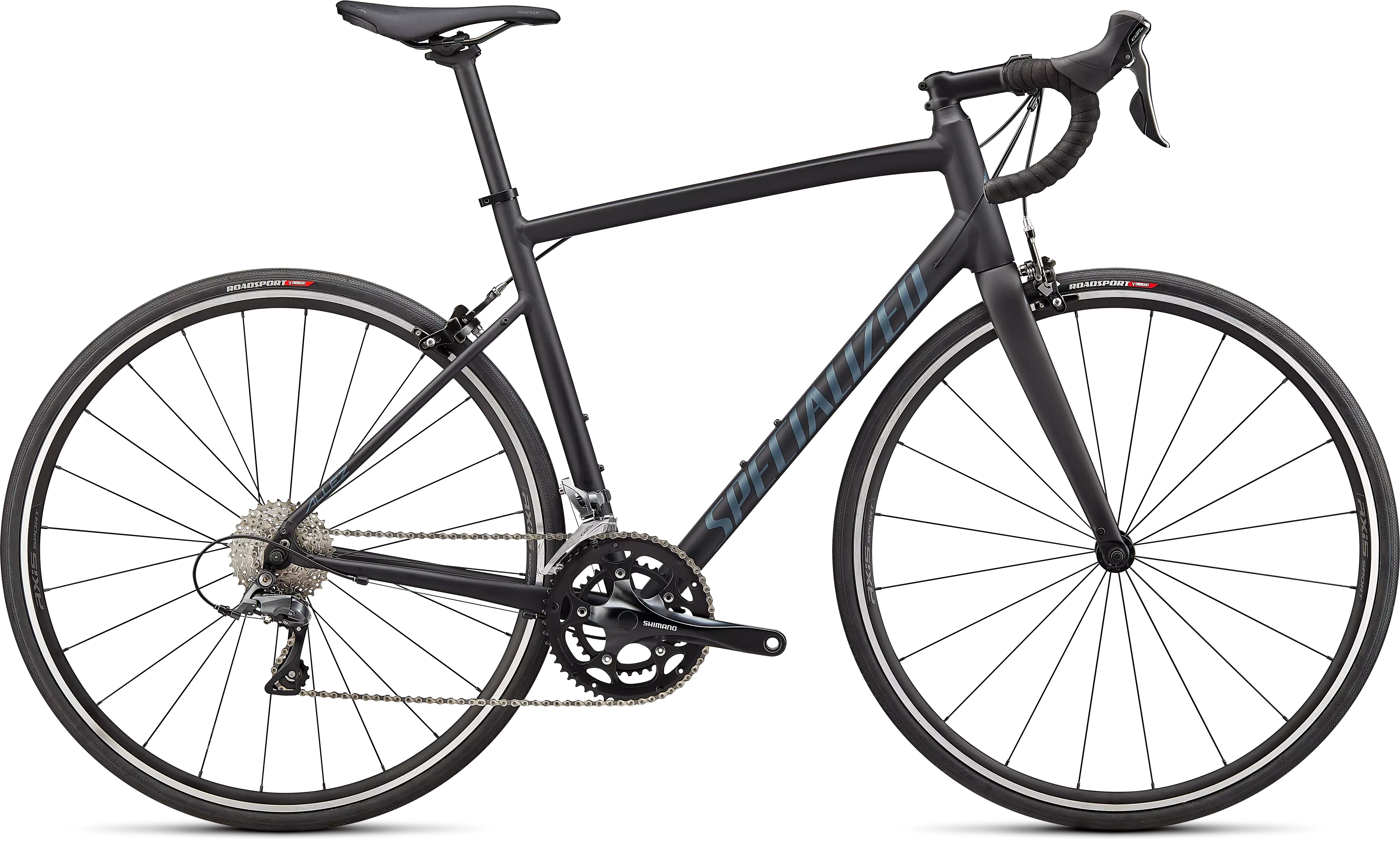 Para el montaje, esta Allez cuenta con cambios fiables Shimano Claris, llantas de aluminio Axis Sport duraderas, el nuevo sillín Body Geometry Bridge súper cómodo y neumáticos RoadSport con protección.