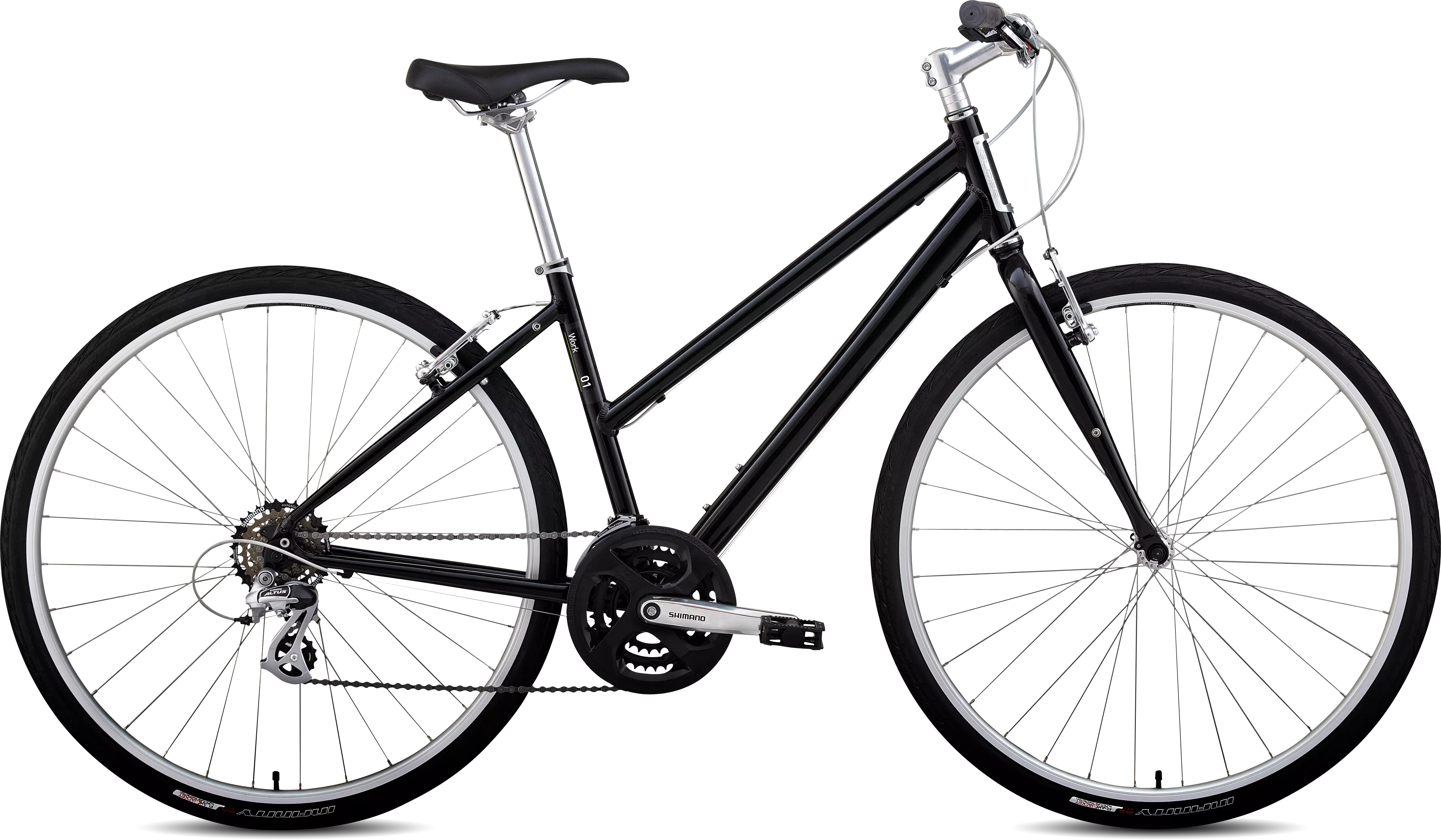 The high-value, no-nonsense Work is perfect for the commuter who wants a light weight bike with an upright position, step-through convenience, predictable handling, and rack/mudguard mounts for added versatility