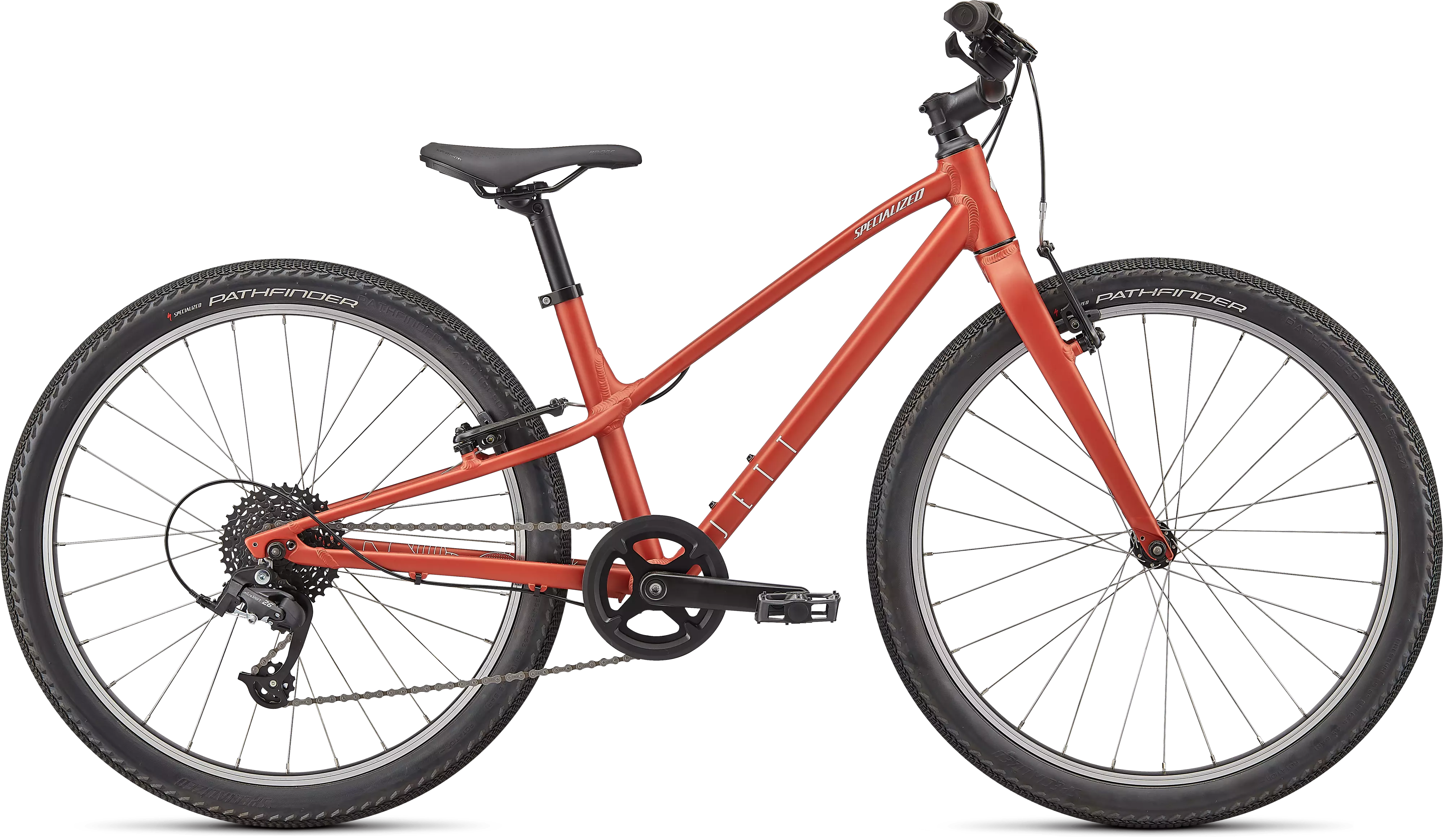A lightweight bike is simply more fun and the Jett Multispeed’s all-new A1 aluminum frame, alloy fork, Pathfinder tires, and 8-speed drivetrain make it one of the lightest kids’ bikes on the market.