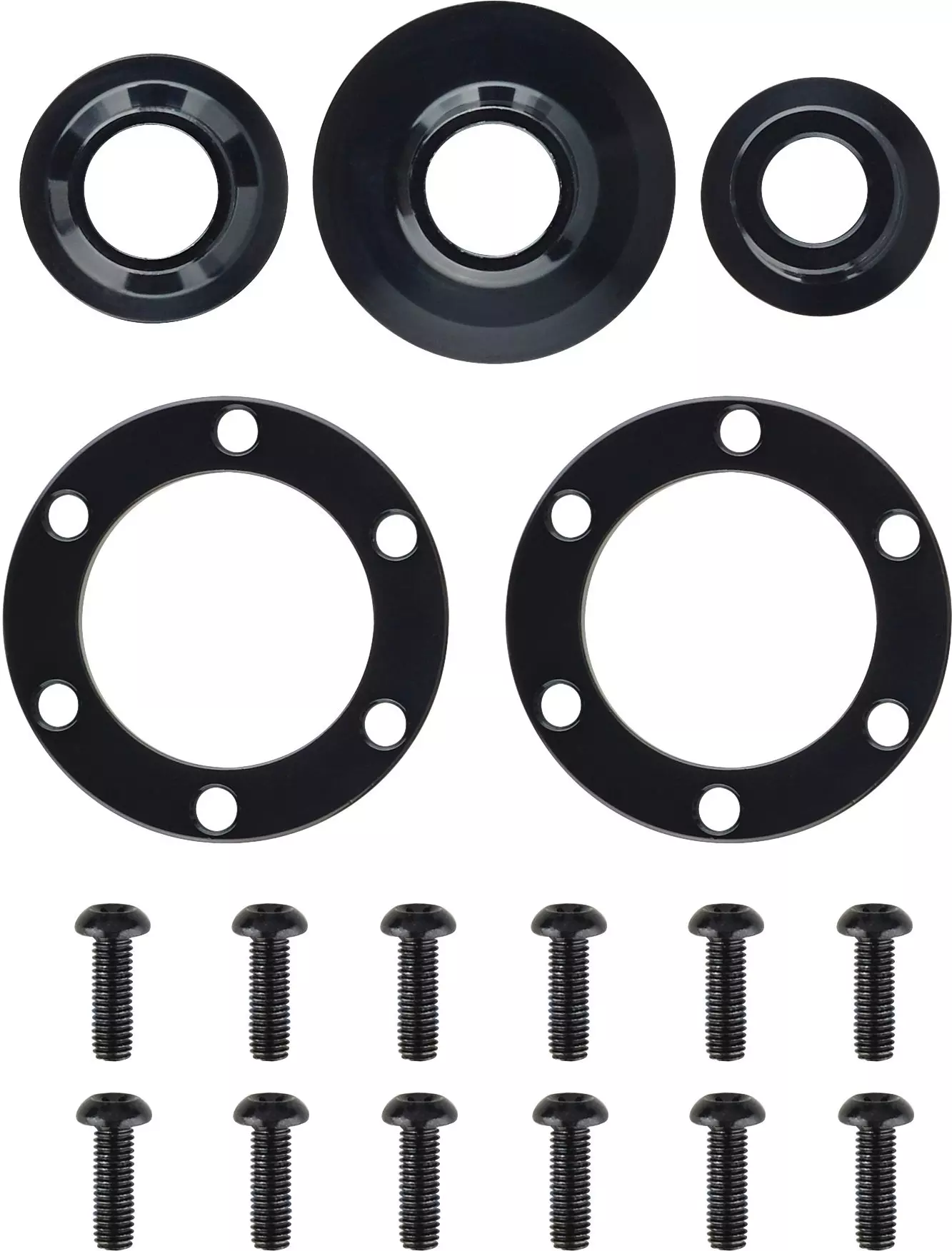 Kits include front and rear hub end caps, rotor spacers, and kit-specific rotor bolts.
