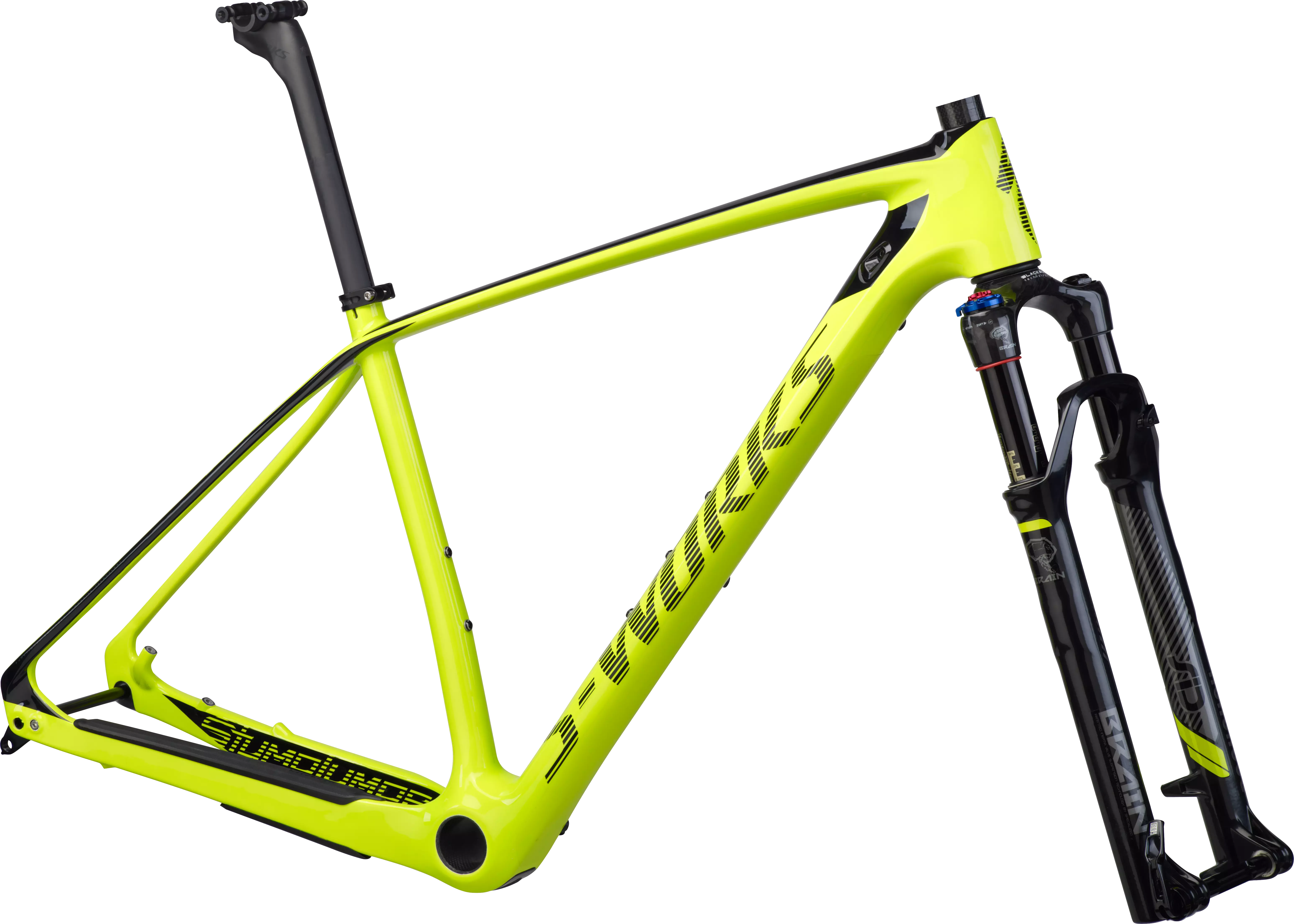 Custom RockShox SID World Cup 29 fork with Specialized Brain inertia-valve damping has 90mm of air-sprung travel (Small 80mm), a carbon steerer tube, and 15mm thru-axle to create the most efficient and supple cross-country fork available