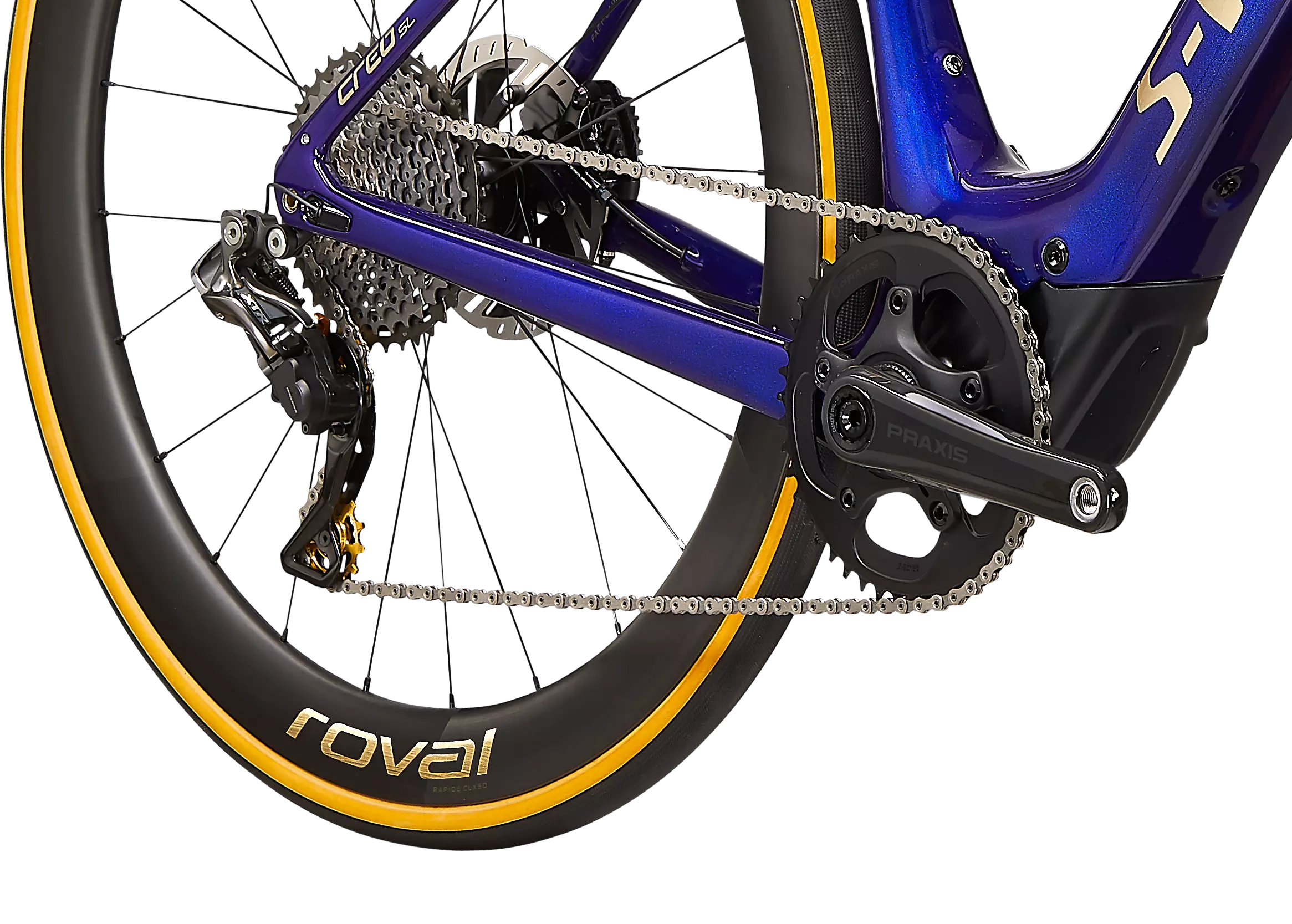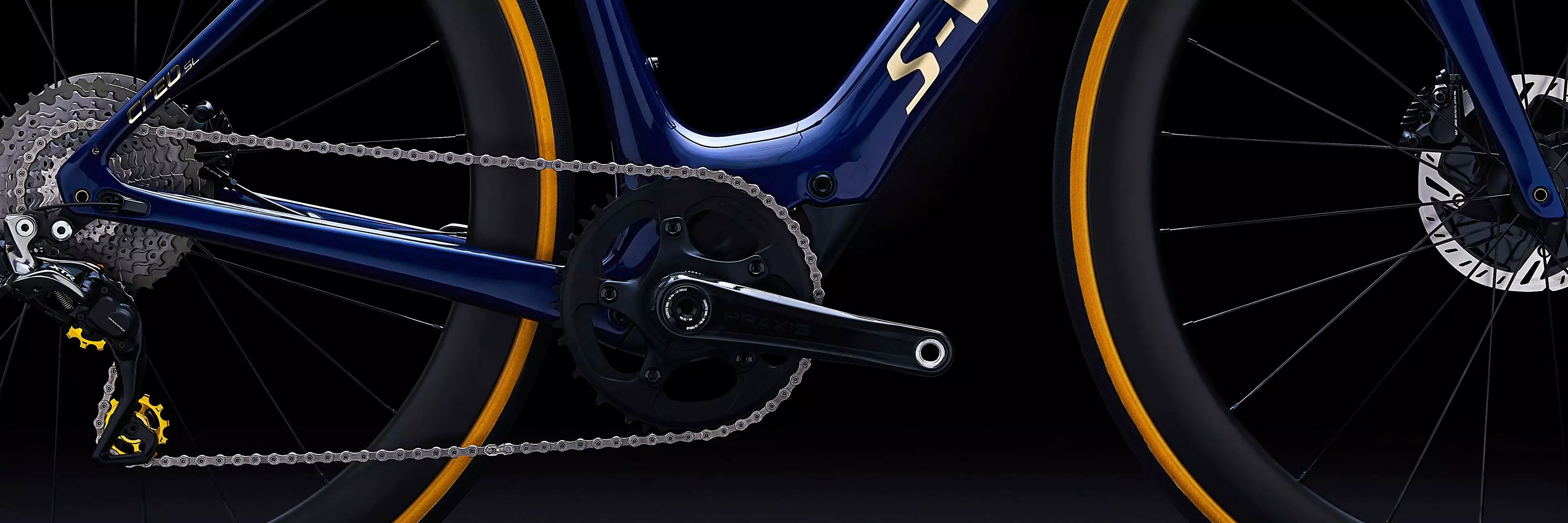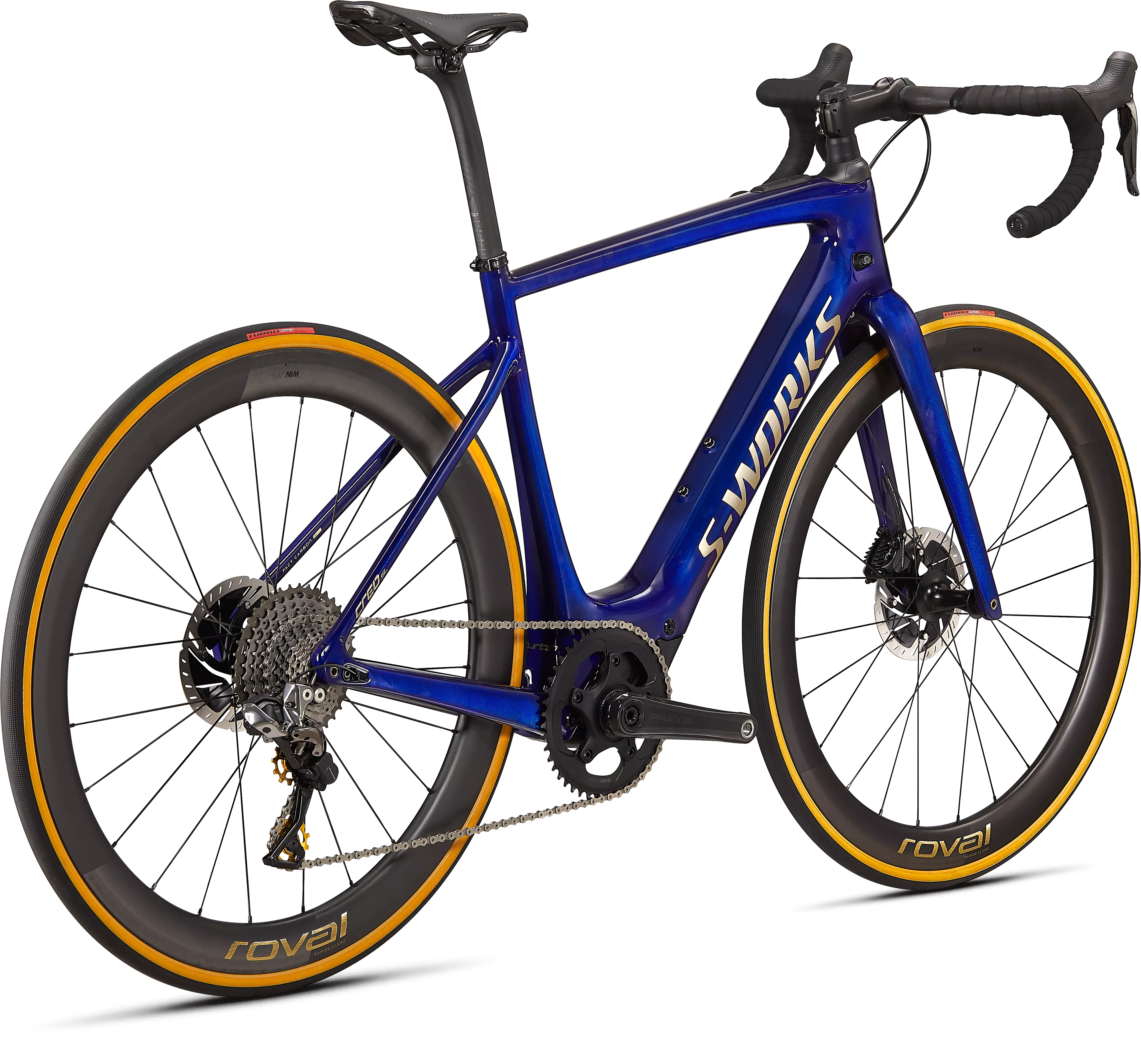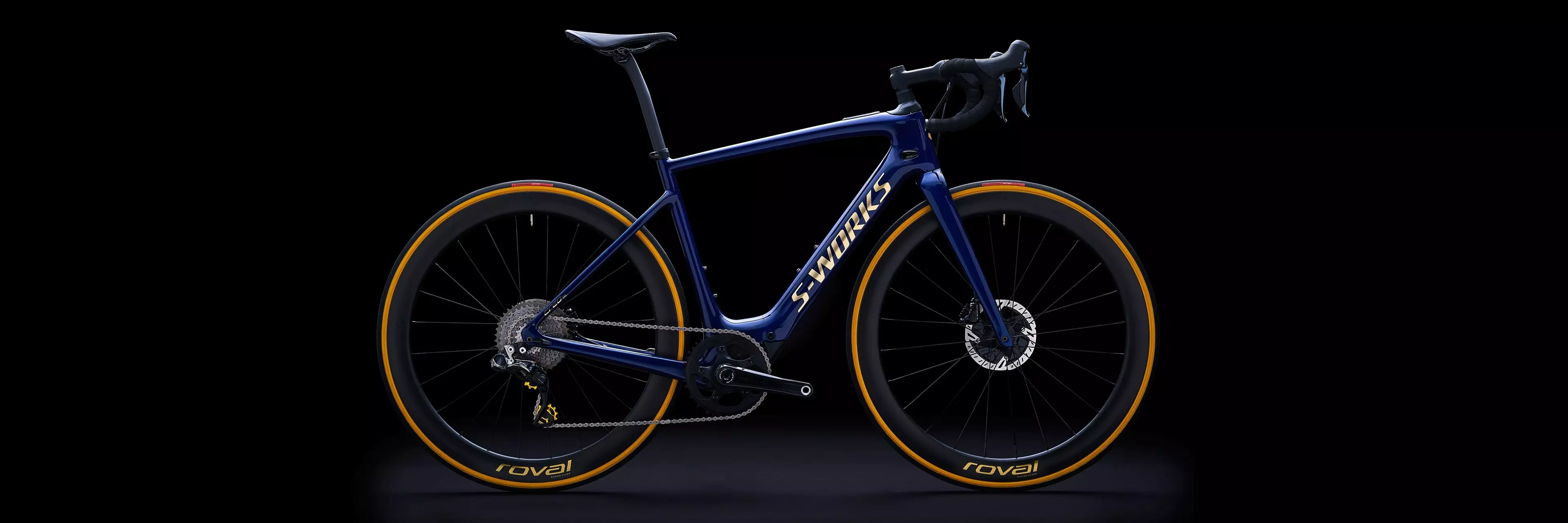 The S-Works Turbo Creo SL Founder's Edition is an exclusive, limited-edition bike. It features our light and lively FACT 11r carbon frame and fork with a Future Shock 2.0 that features an adjustable hydraulic damper for more control and confidence. It's also the lightest Turbo Creo SL build at just 11.9kg, thanks in part to its Shimano Dura-Ace Di2 build, XTR rear derailleur, S-Works Short and Shallow bars, and Roval CLX 50 wheels that have been cased with Turbo Cotton tires. Meanwhile, special gold touches, like anodized thru-axles, CeramicSpeed pulley wheels, and a numbered Founder's Edition plaque on the seatstay put this build over the top. You'll also get two range extenders. And did we mention the custom Specialized SL Kit? Well, you'll be getting one, too. And if you need us to light a fire under you, only 250 of these incredible Founder's Edition bikes will ever be made.
