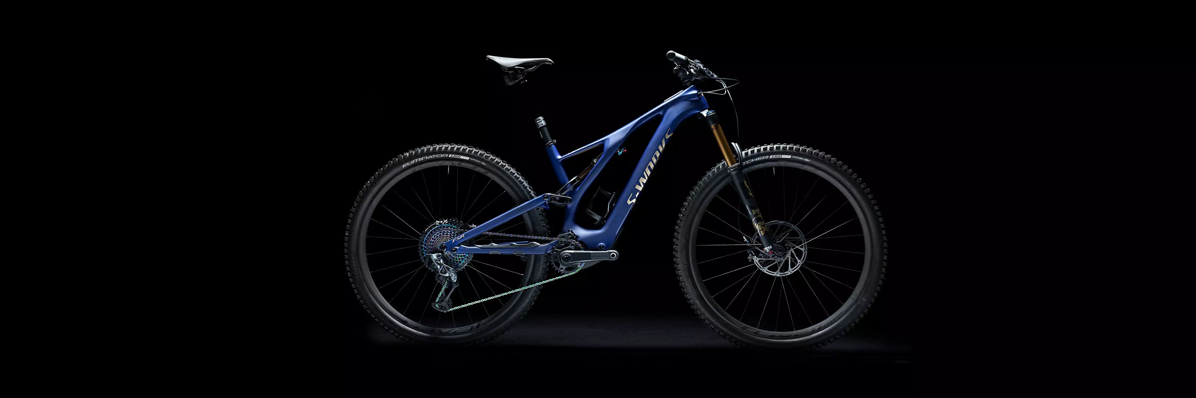 Limited to just 250 bikes worldwide, the S-Works Turbo Levo SL Founder's Edition pulls out all the stops. Each individually-numbered Founder's Edition will come with a very special build where it's all in the details—gold foil graphics laid over our Spectraflair paint in satin finish, a custom Power saddle with a matching gold "S" graphic, matching gold FOX fork and rear shock graphics, SRAM AXS wireless drivetrain with "rainbow" colored cassette, chain, and brake hardware, as well as two Range Extenders for the ultimate Power to Ride More Trails. The S-Works Turbo Levo SL Founder's Edition is sure to be an instant classic.