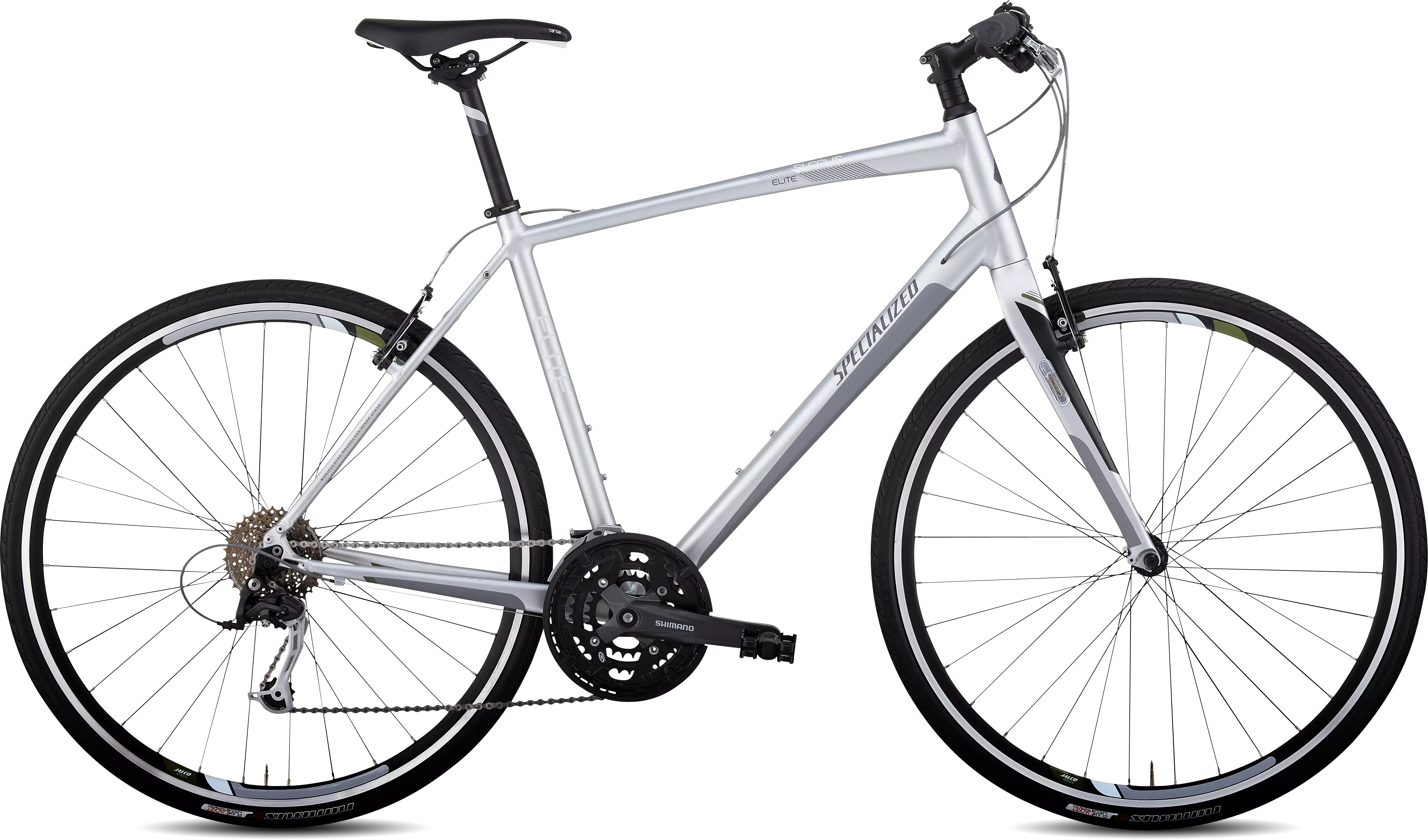 Specialized E5 aluminium, fully manipulated butted tubing, smooth weld, internal cable routing, tapered/integrated headset, mudguard/rack eyelets
