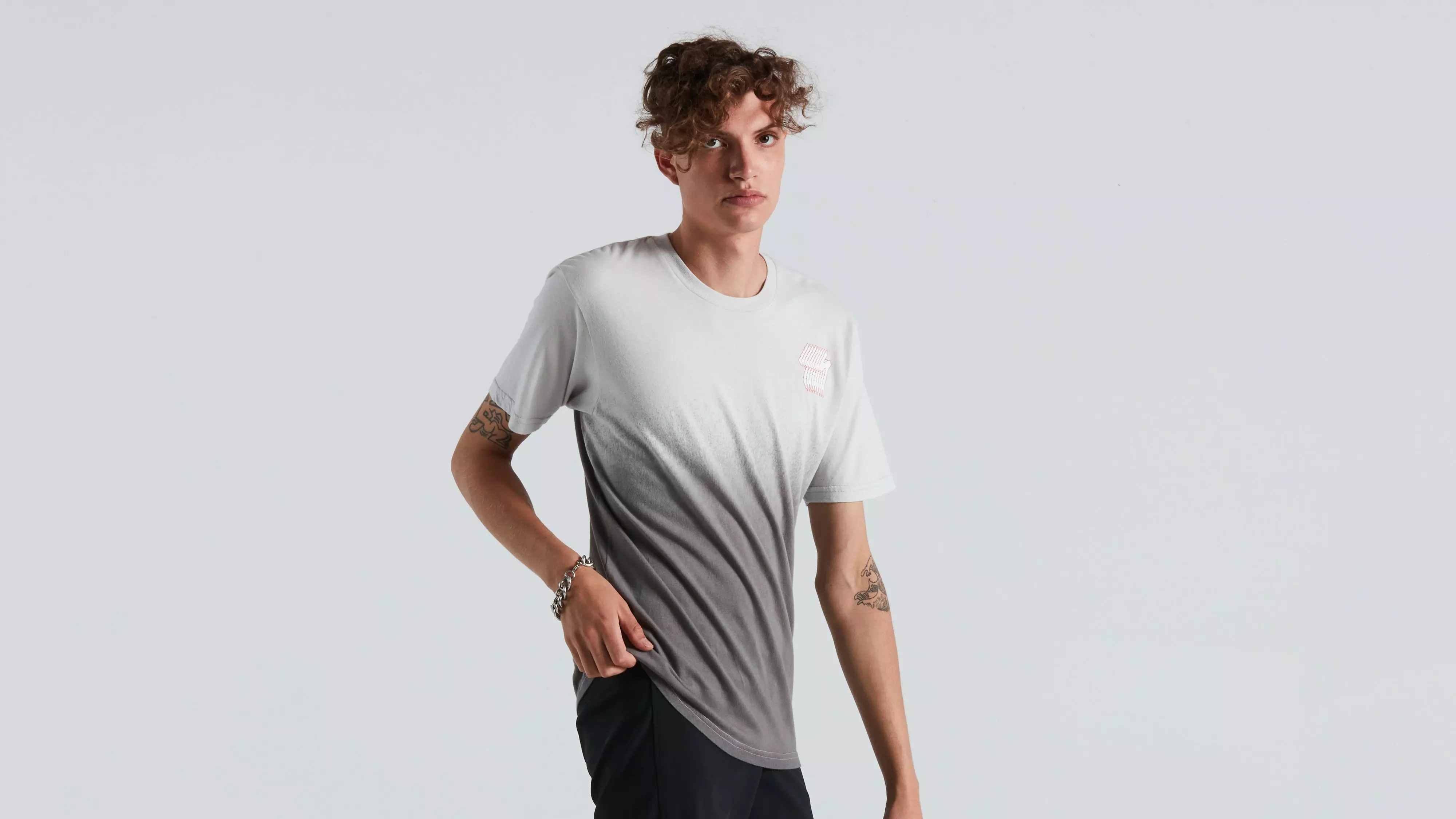 Branded screen print on the chest.