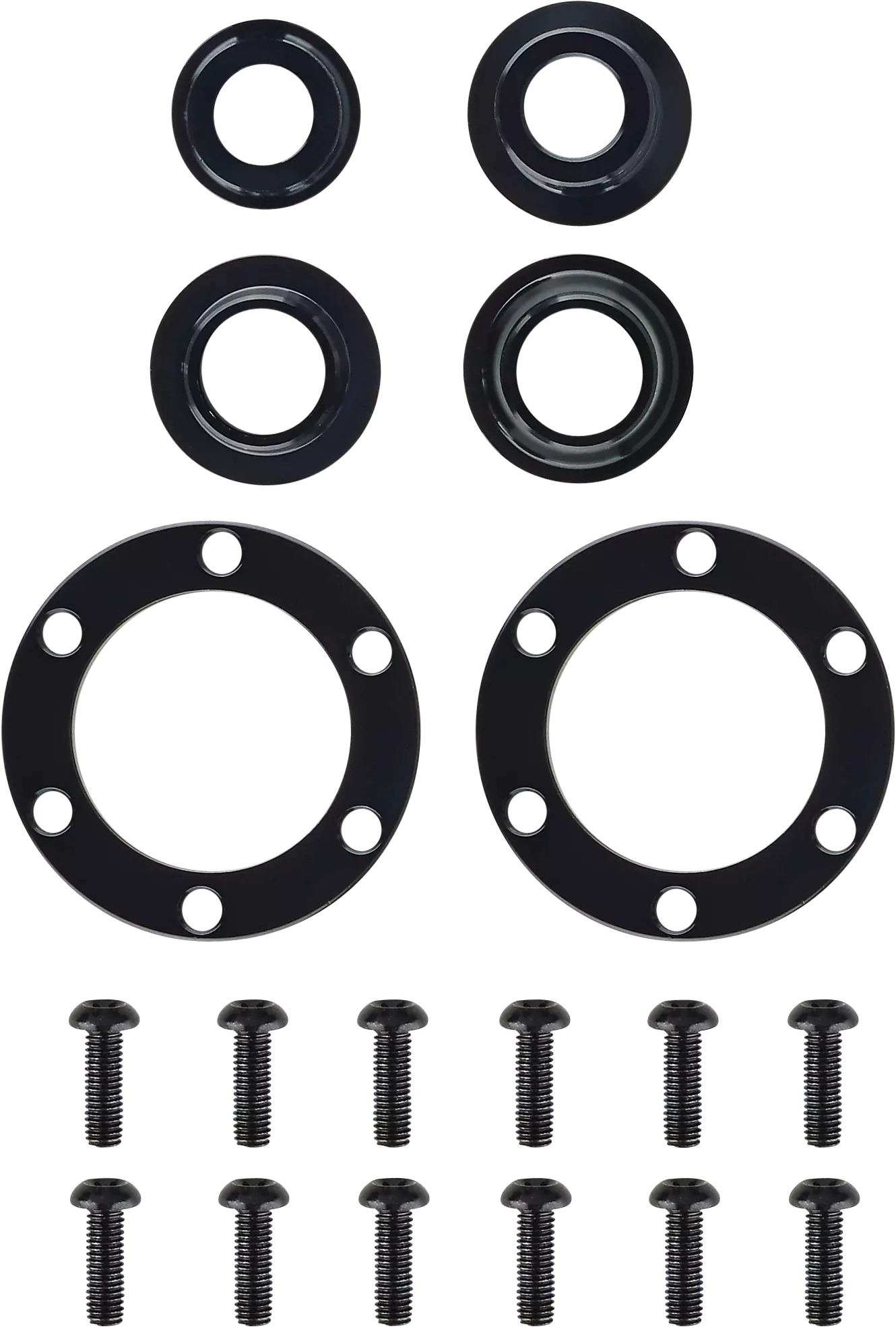 Kits include front and rear hub end caps, rotor spacers, and kit-specific rotor bolts.