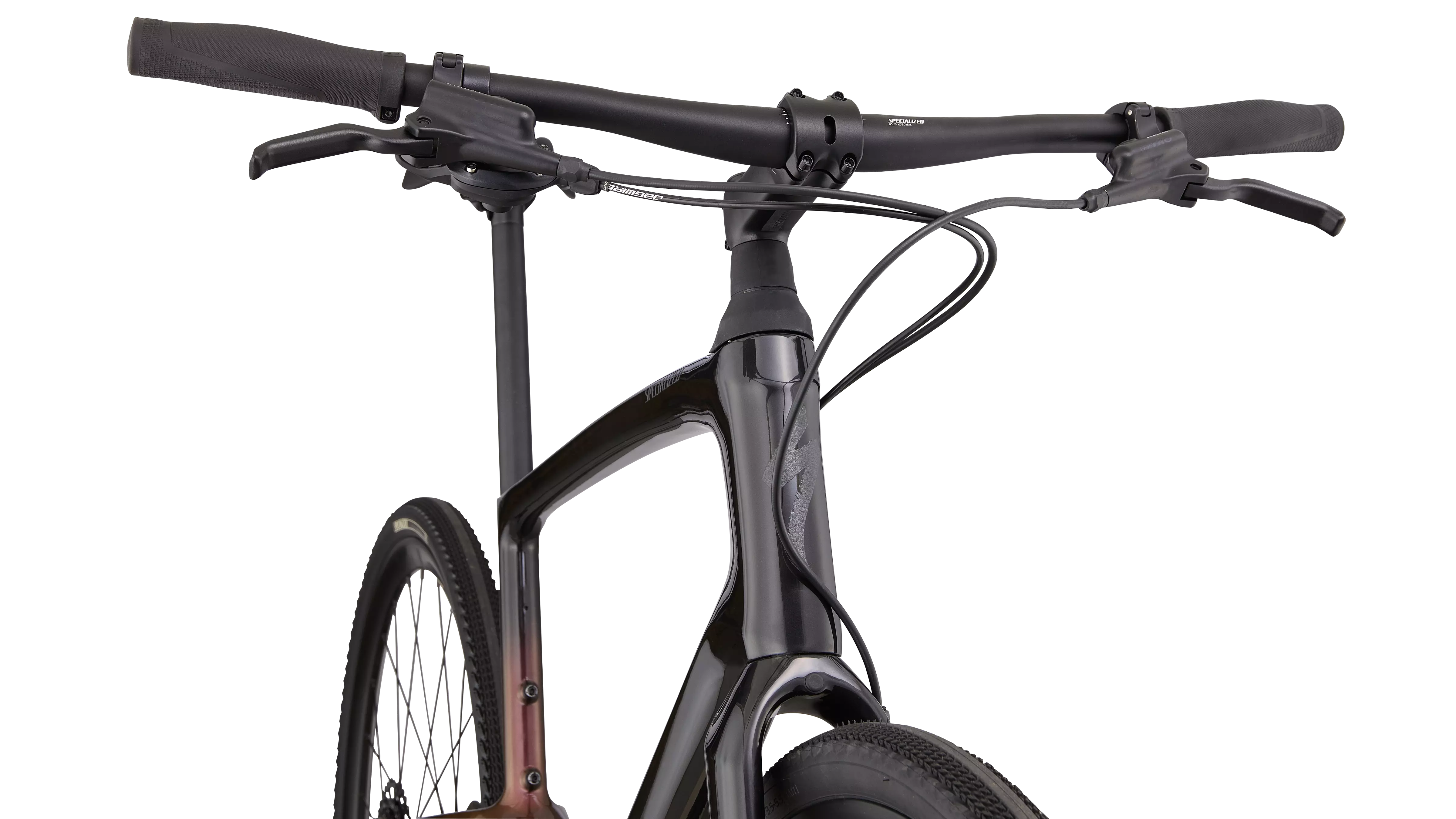 Specialized FACT 9r carbon frame features internal cable routing.