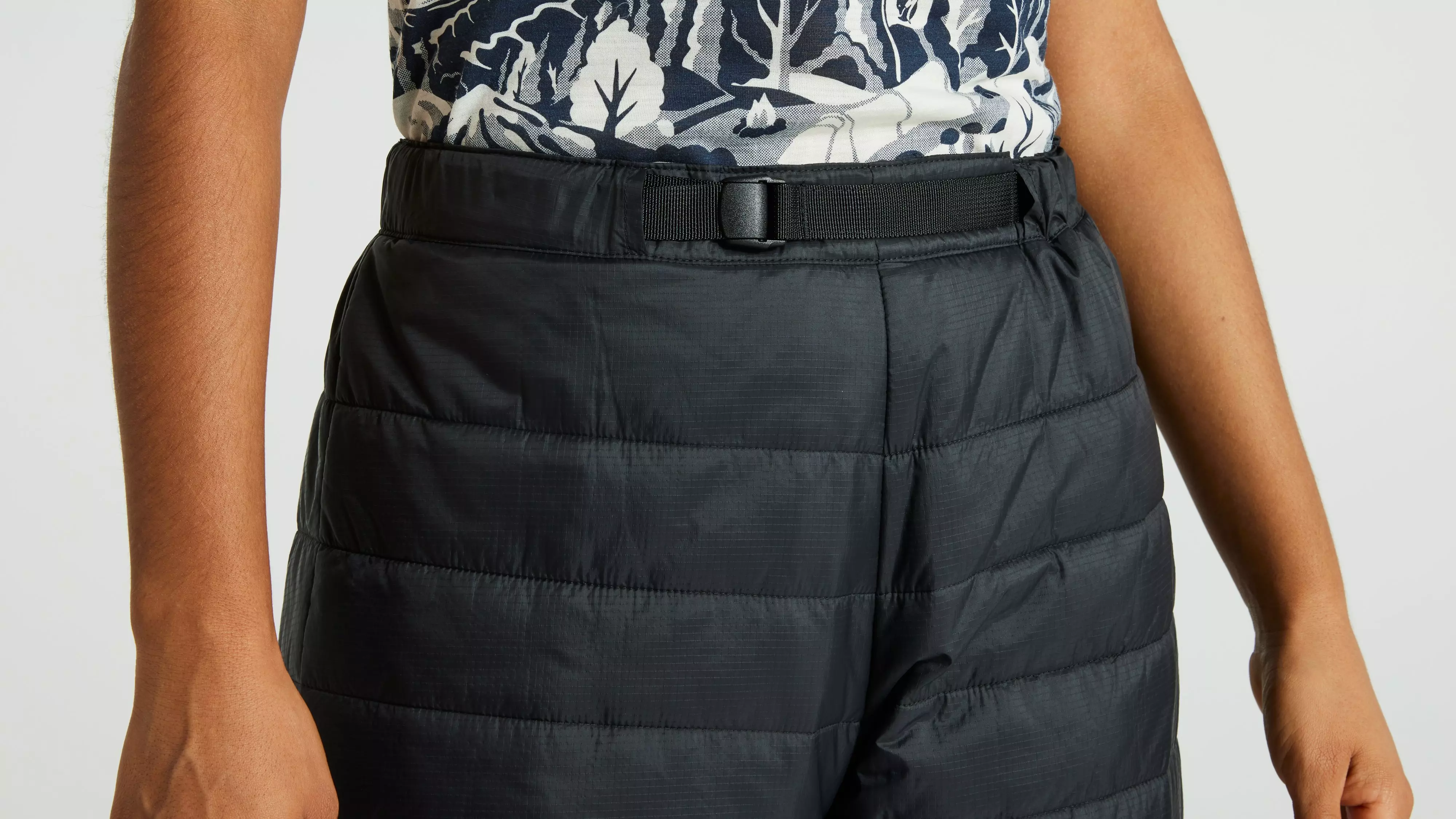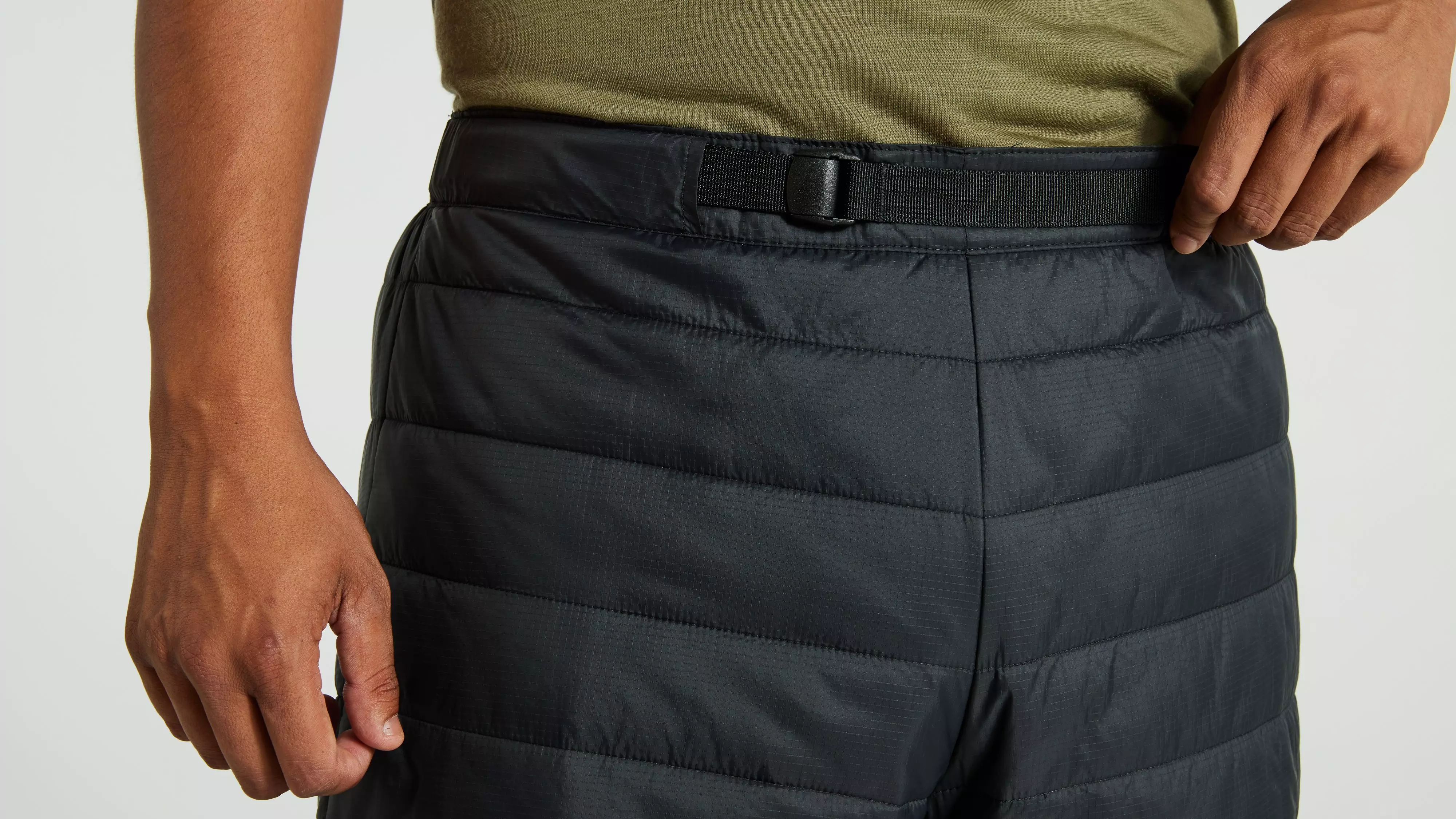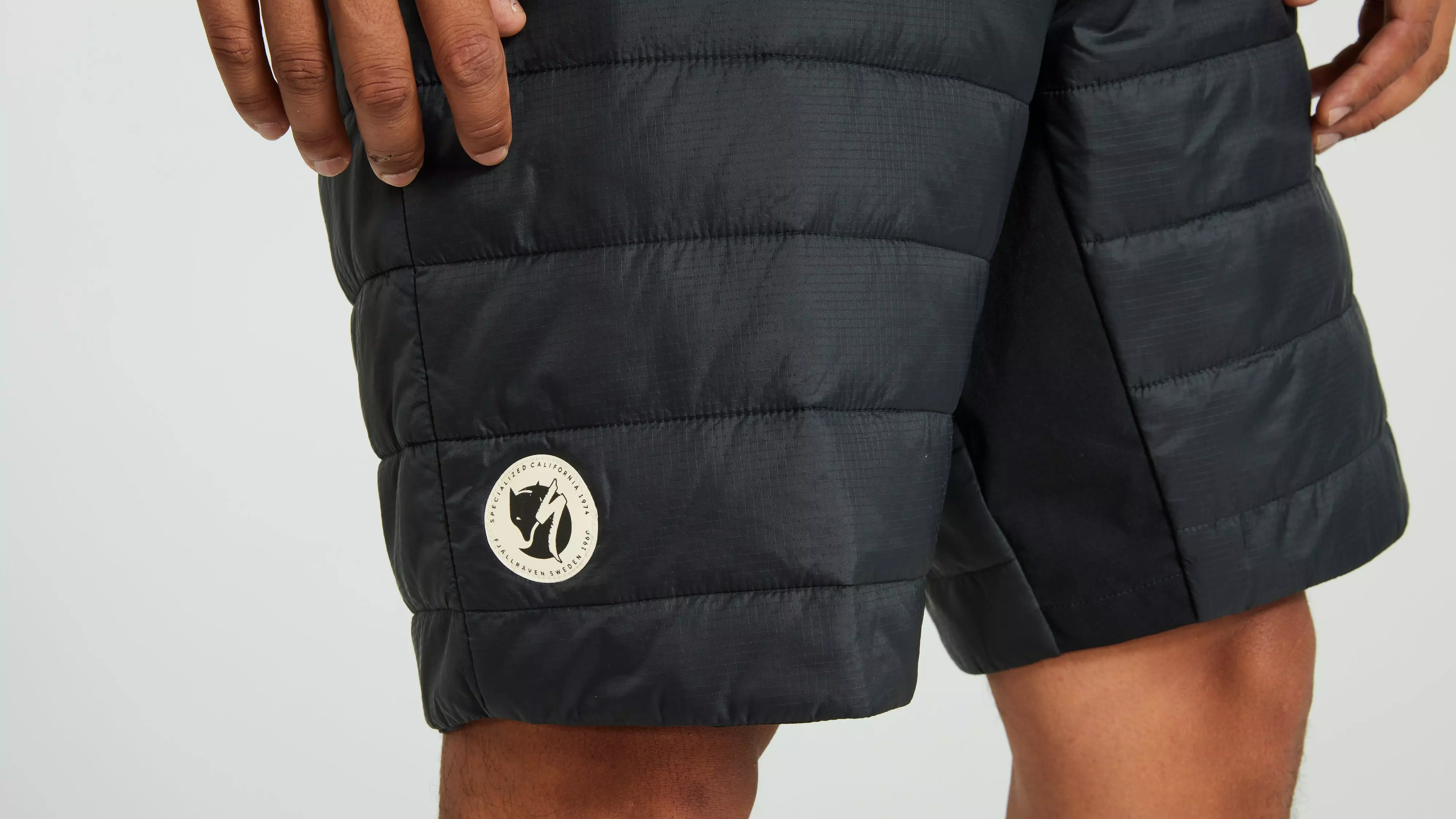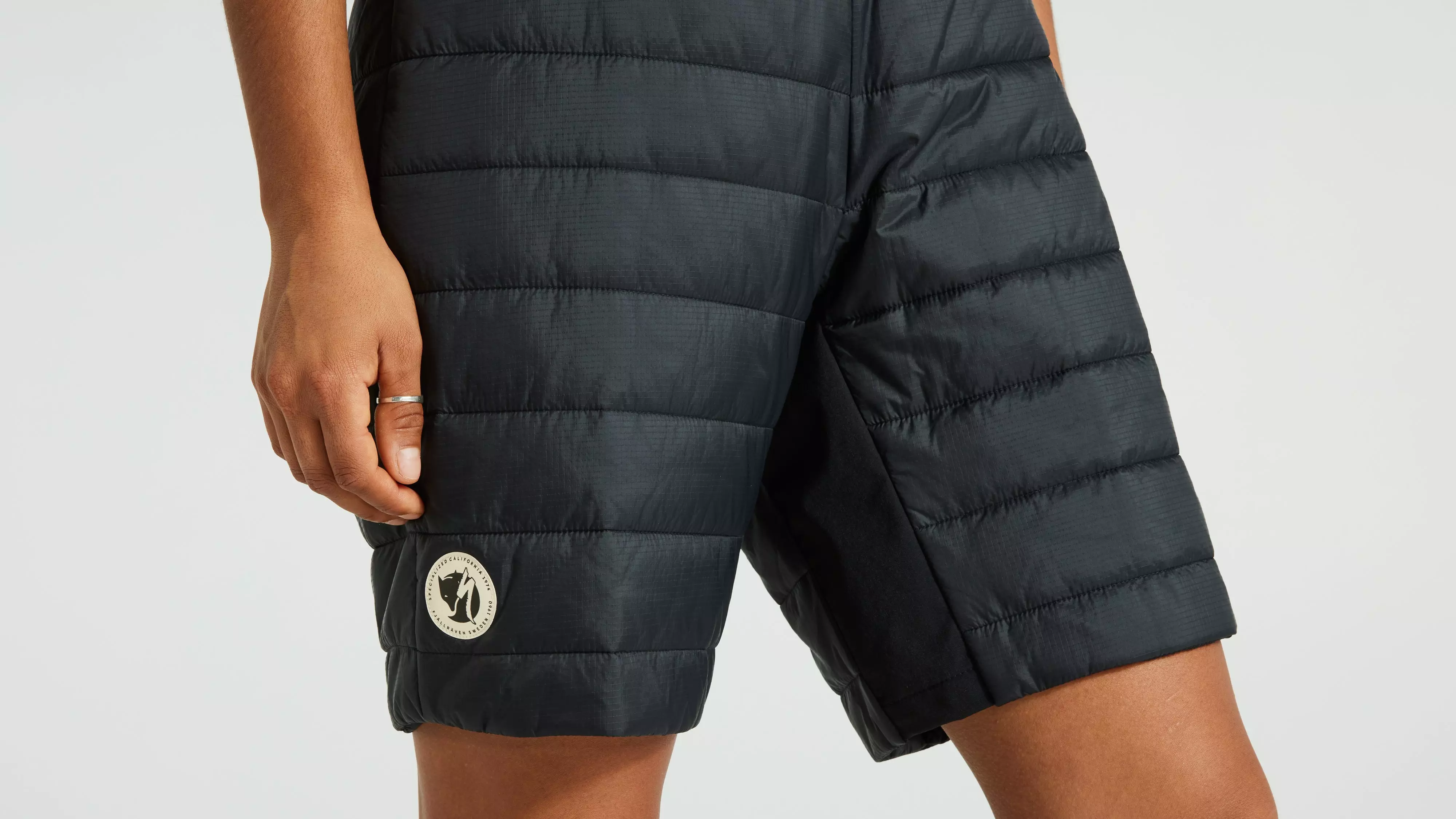 Packable, lightweight insulated unisex shorts. Lightly padded with synthetic insulation and an outer fabric in recycled polyamide. Supports the Specialized/Fjällräven Thermo Anorak and is optimized for long bike rides as a reinforcement layer for men and women. Adjustable, elastic cam-lock waistband. Unisex fit. Part of the Specialized/Fjällräven series for urban rides and bikepacking adventures.
