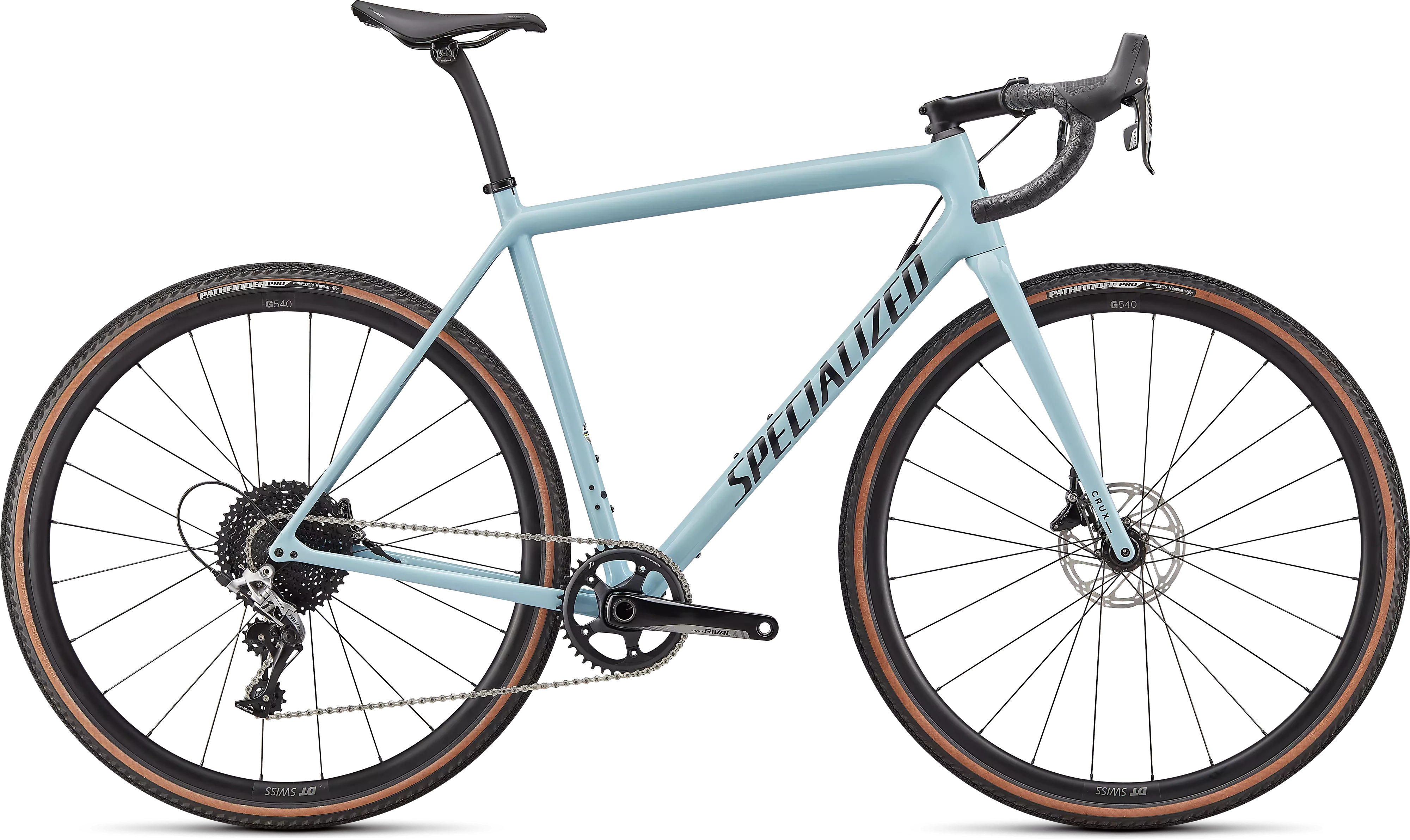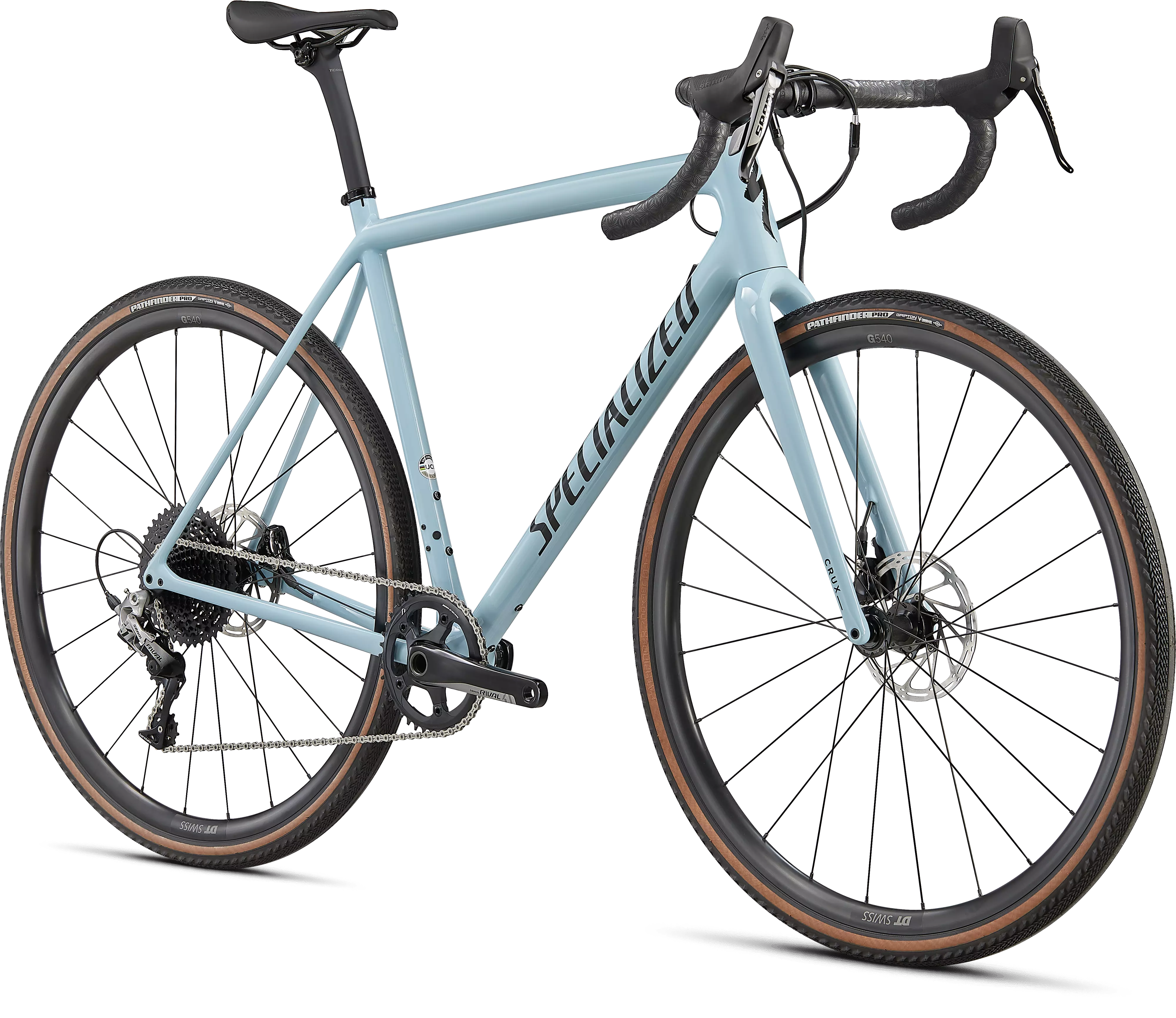 Crux Compは、信頼性が高く、スムーズに変速するSRAM Rival 1グループセット、油圧ディスクブレーキ、丈夫なDT G540 Discホイール、そして荒れた路面に食いつく700x38mm Pathfinder Pro 2Bliss Readyタイヤを搭載します。