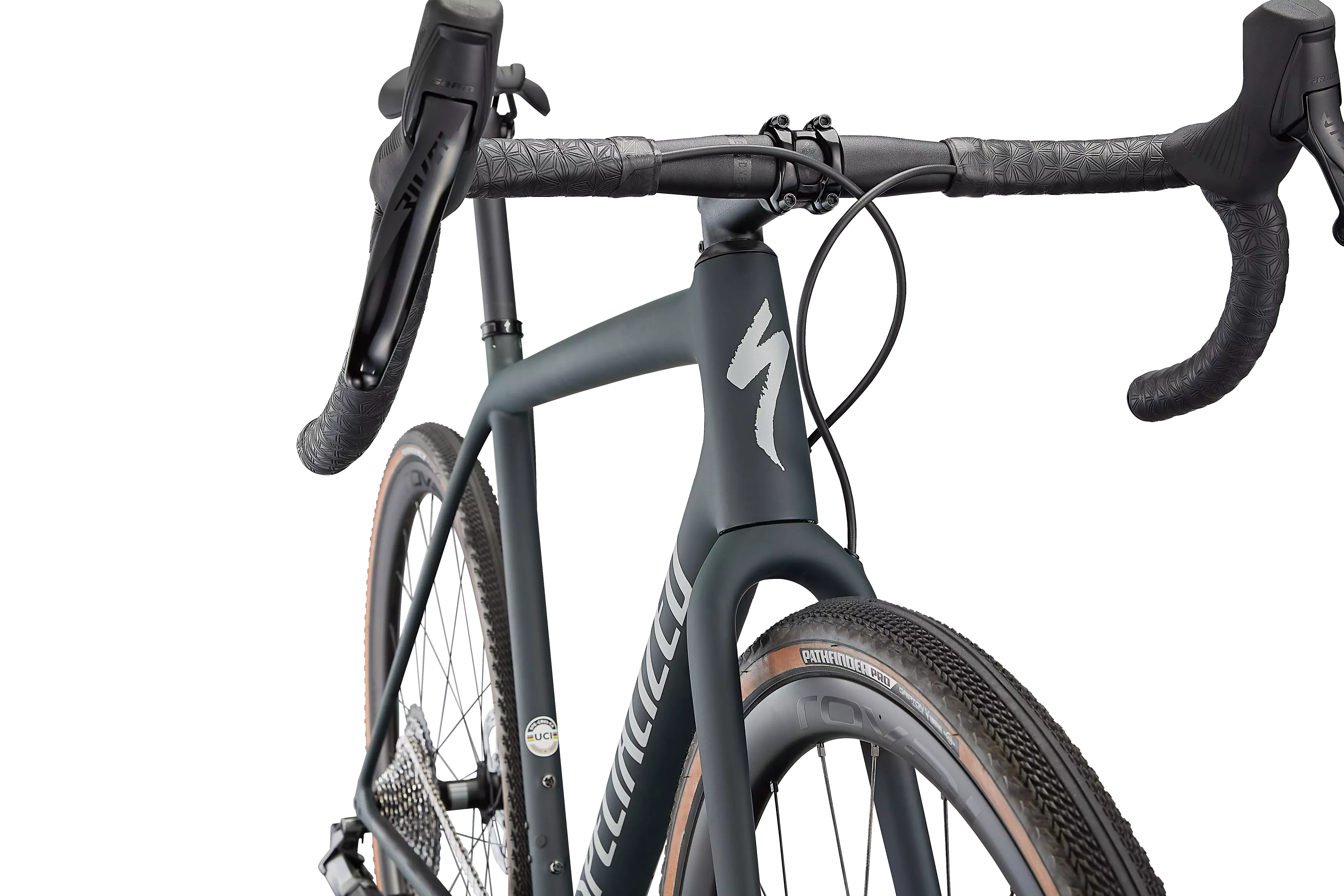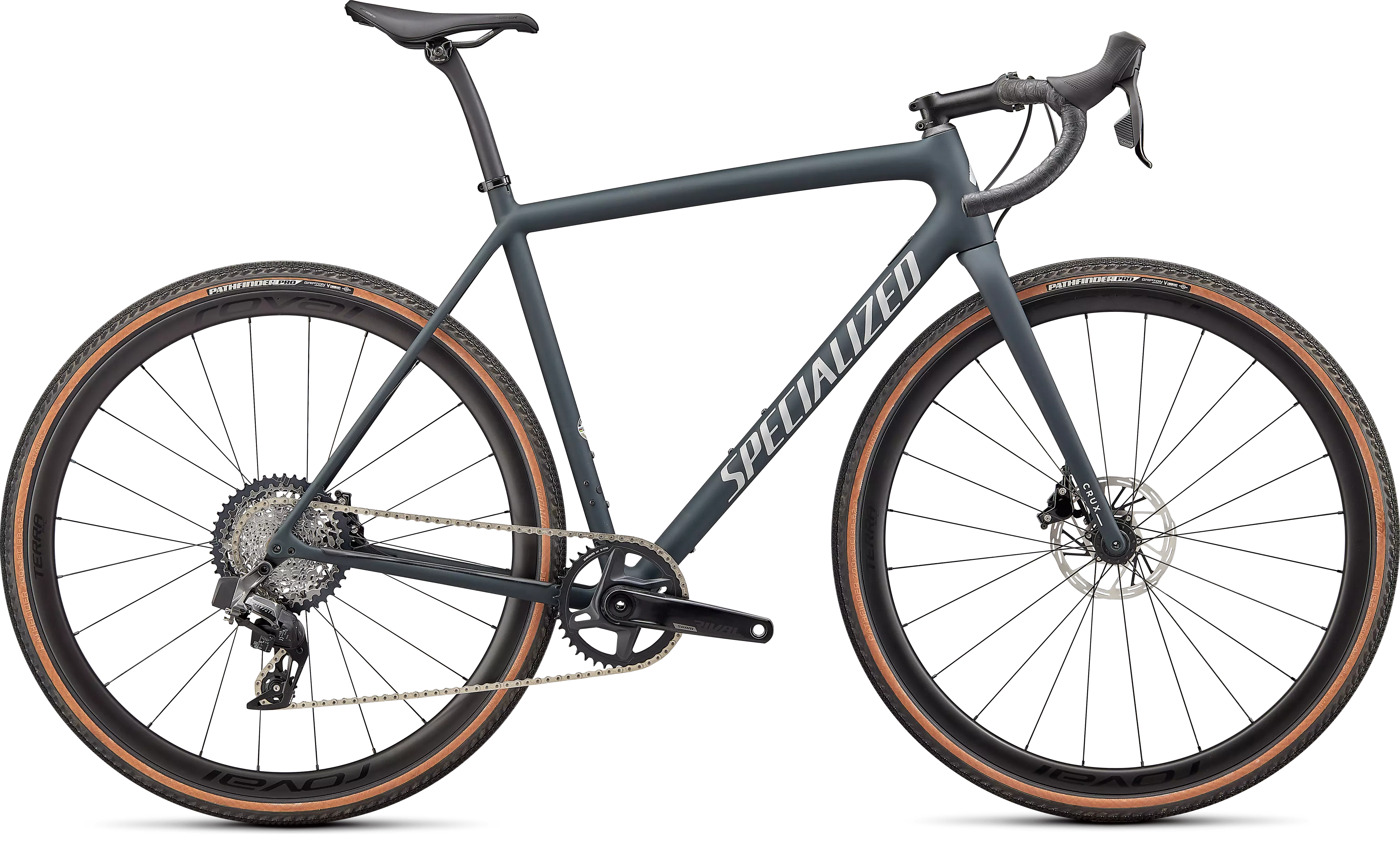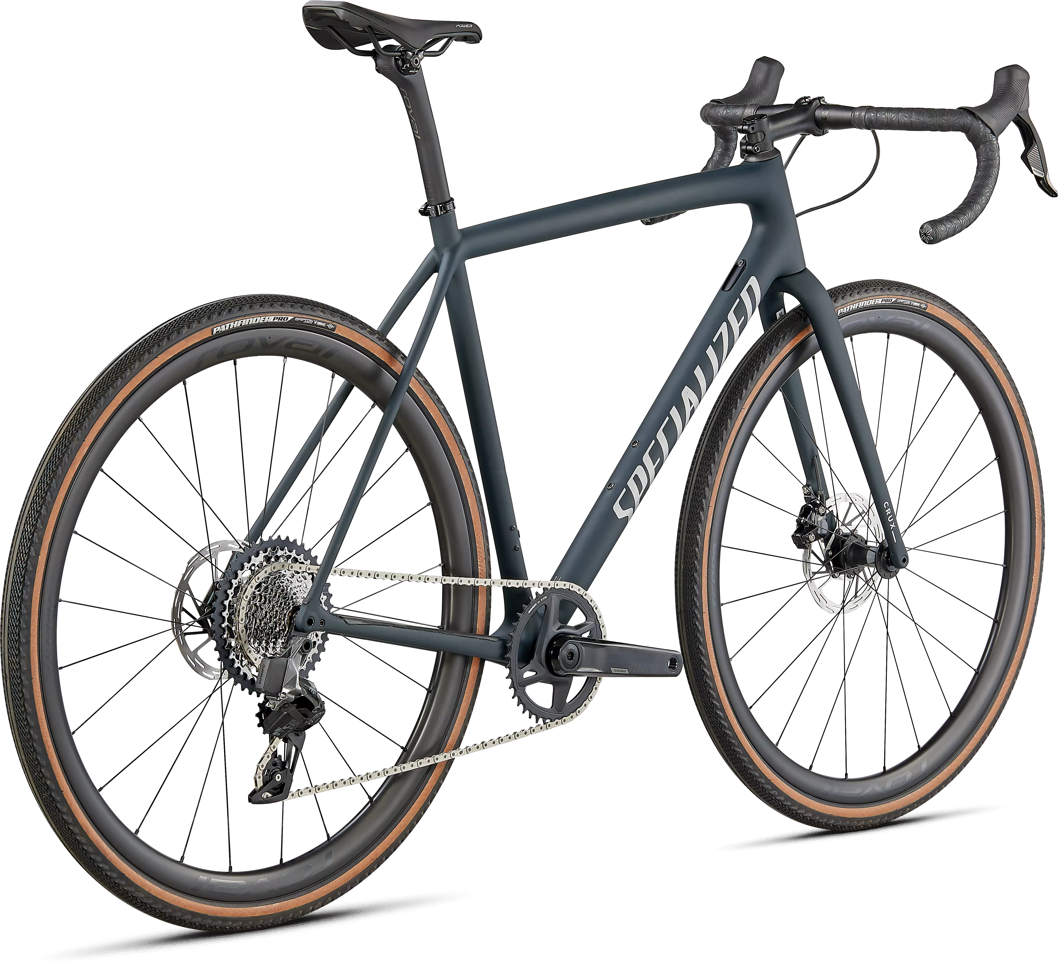 This Crux Expert comes spec'd with an intuitive and crisp-shifting SRAM Rival eTap AXS hydraulic disc groupset, incredibly tough Roval Terra C Disc wheels, and 2Bliss Ready, 700x38mm Pathfinder Pro tires that hookup over nasty terrain.