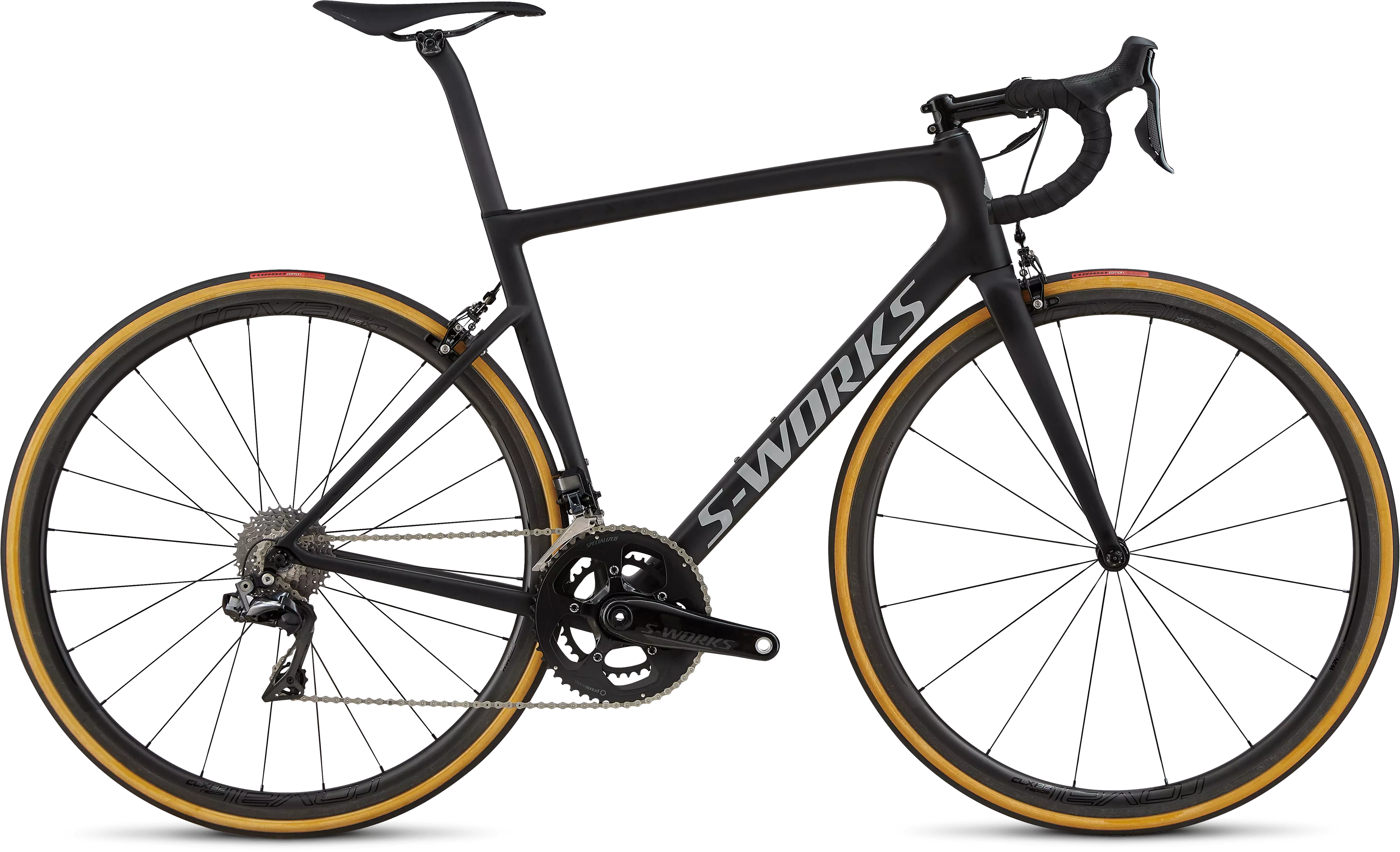 52/36TのS-Works カーボンファイバー製クランクセットとチェーンリングの組み合わせが最上のパワー伝達を提供。アルプスを最速で駆け上がり、平地での厳しい戦いに挑むにふさわしい逸品。