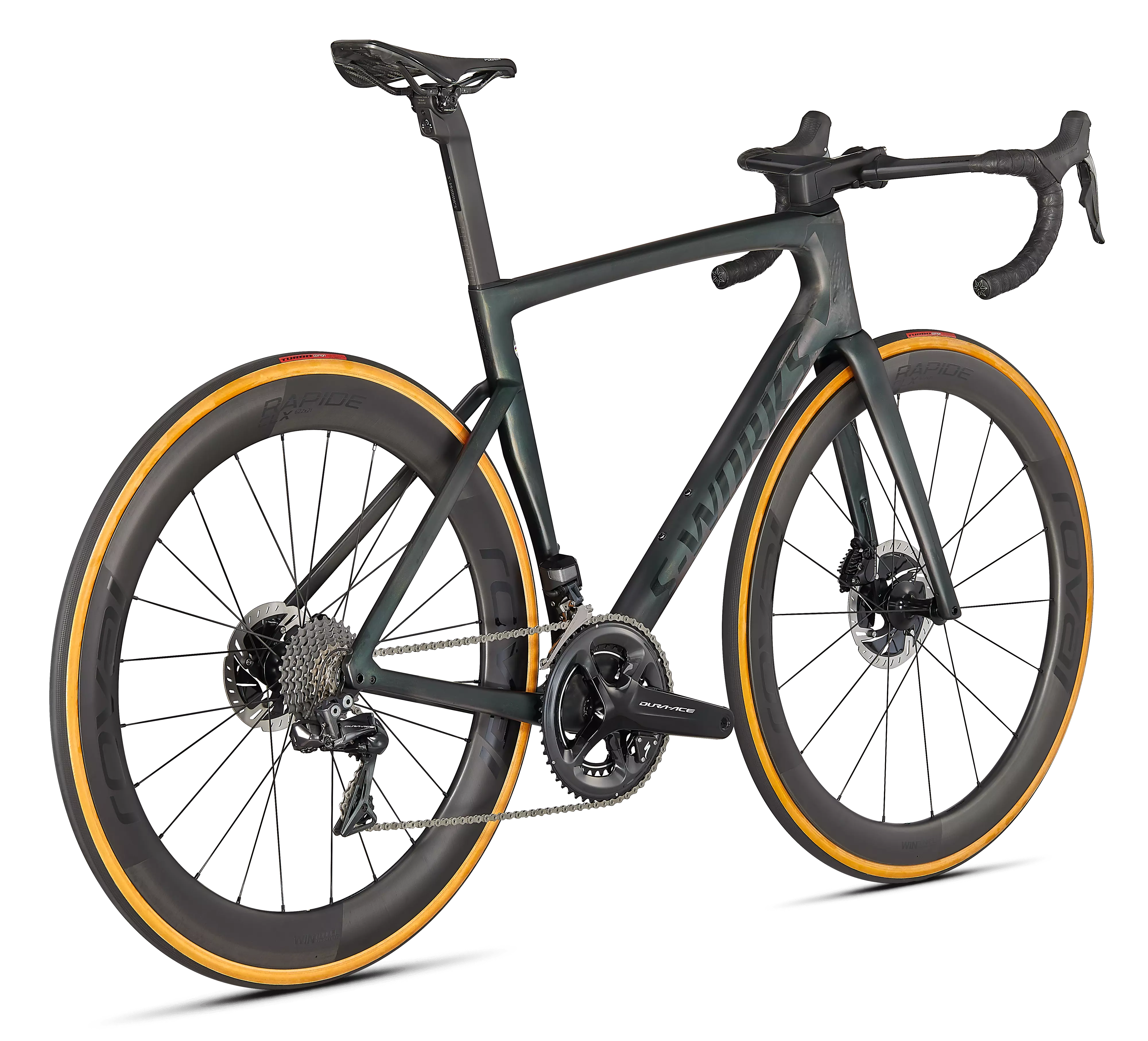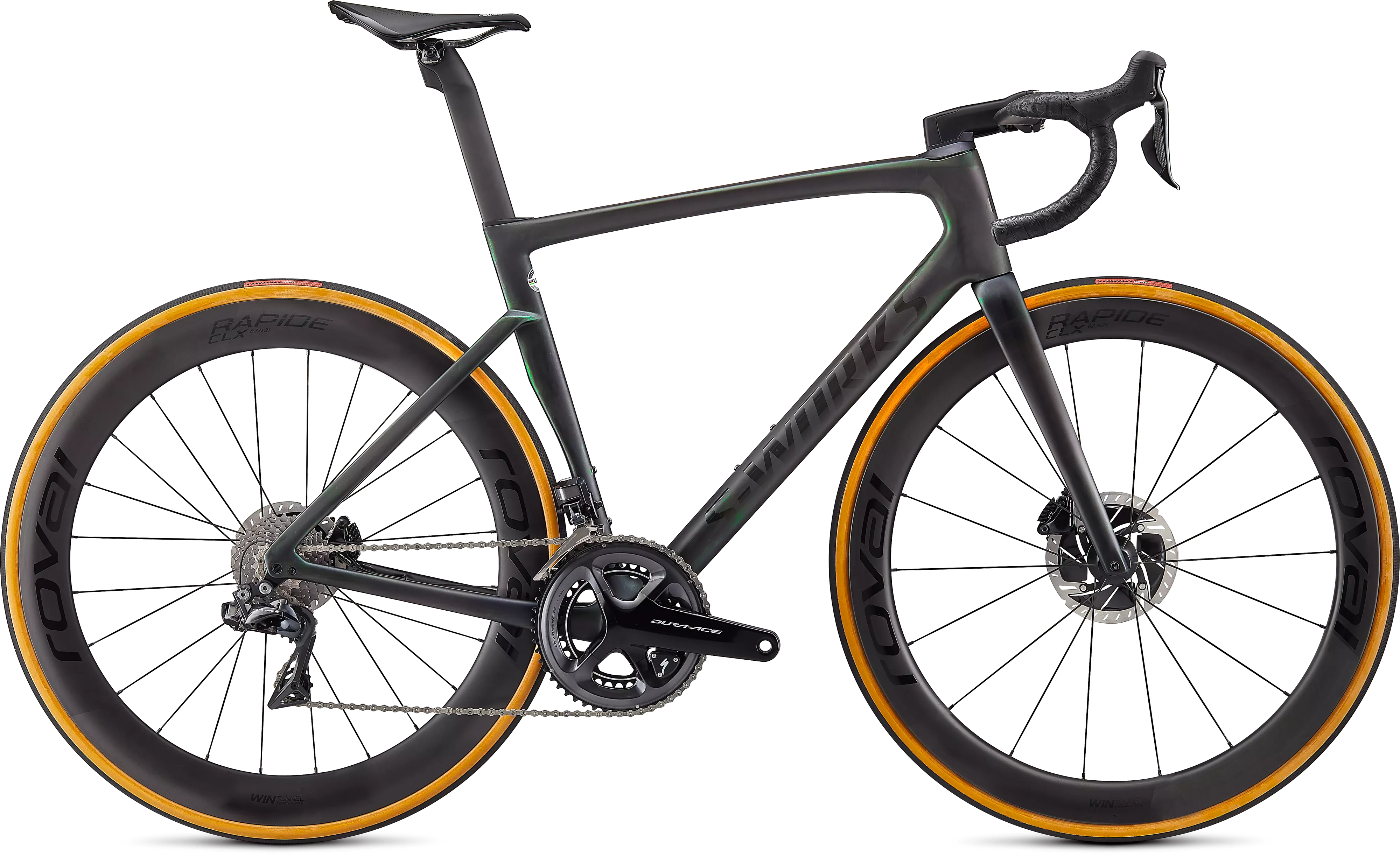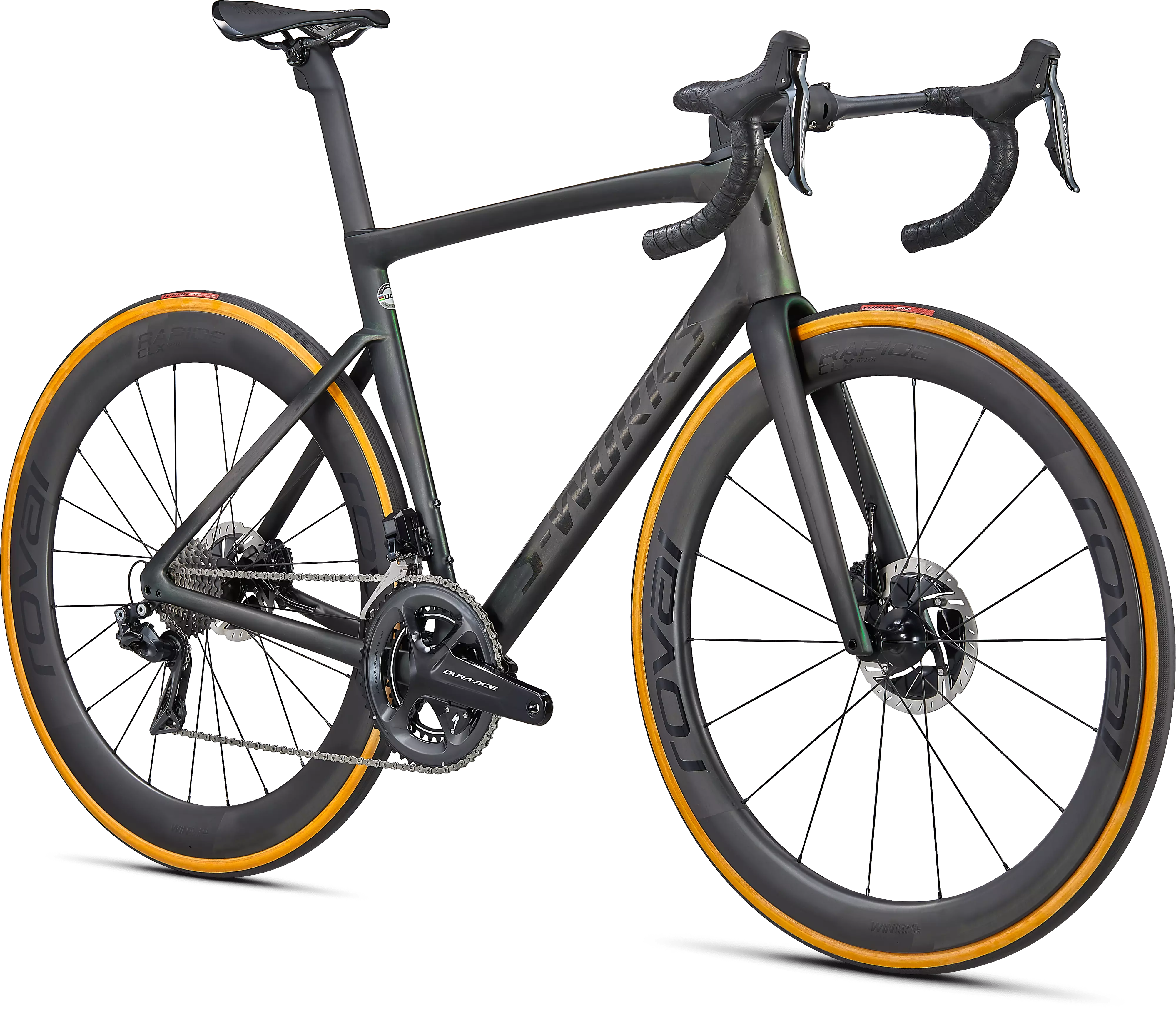 エアロ性能か軽さ、またはライドクオリティーかスピードのそれぞれどちらか一方しか選べないのでしょうか? そんなことはありません。新しいTarmacは、UCI規則ギリギリの軽さで坂を上り、もっとも速く下れるバイクです。FreeFoil Shape Libraryから新しいRider-First Engineered™ フレームに至るまで最先端技術をふんだんに使い、一切の妥協を排した真のレースバイクが誕生しました。エアロ性能か軽さのどちらかを犠牲にする時代は終わりました。新型Tarmacは、これまでで最速を誇るレースバイク。その圧倒的な走りをぜひ体感してください。 世界最速のフレームに取付が許されるのは、最高のコンポーネントのみ。そのため、パワーメーターを搭載したShimano Dura-Ace Di2 グループセットと、安定性とエアロ性能が秀逸な新しいRoval CLX Rapide ホイールを搭載させました。S-Works Tarmacは、箱から出した時点ですでに最高レベルのレースマシンです。