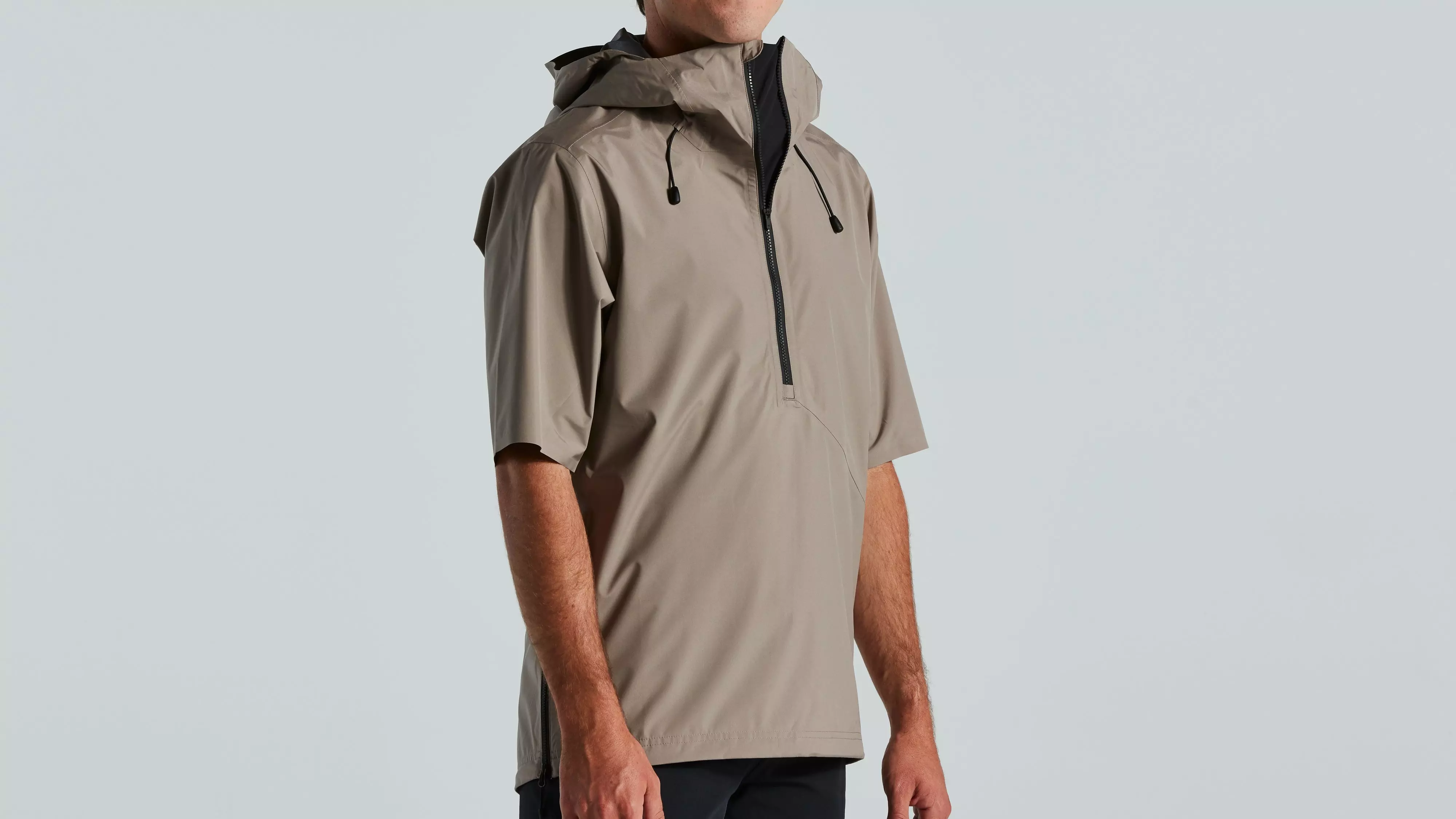 Trail-Sereis Short Sleeve Rain Anorakは、湿度が上がる大雨の中を快適に切り抜けるためのウェアです。防水でありながら通気性を兼ね備えた3レイヤーシェルを採用し、どれだけ雨が降ろうとあなたの体はドライのまま。それでいてショートスリーブなので、気温の変化に合わせやすいのが特徴です。