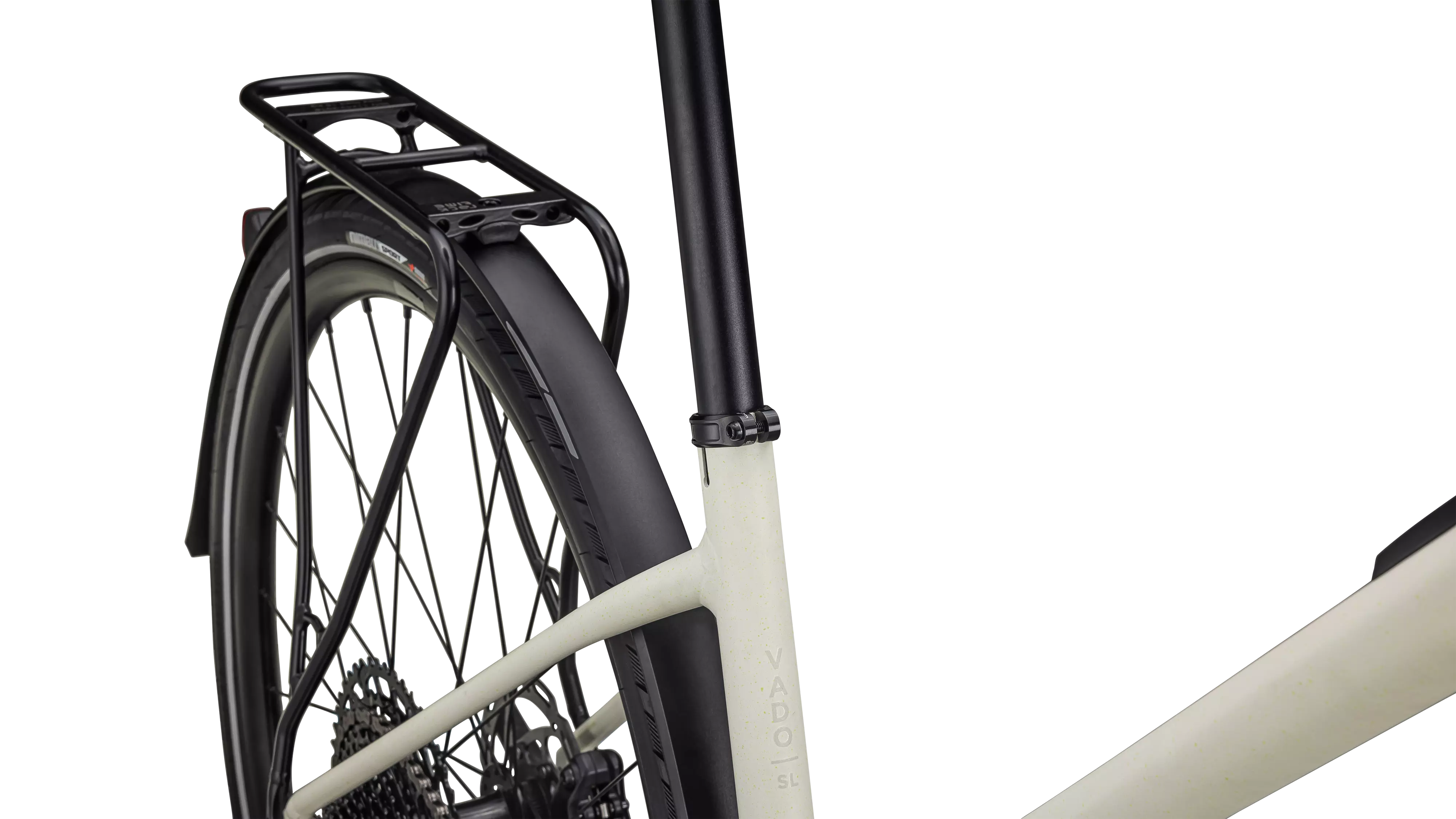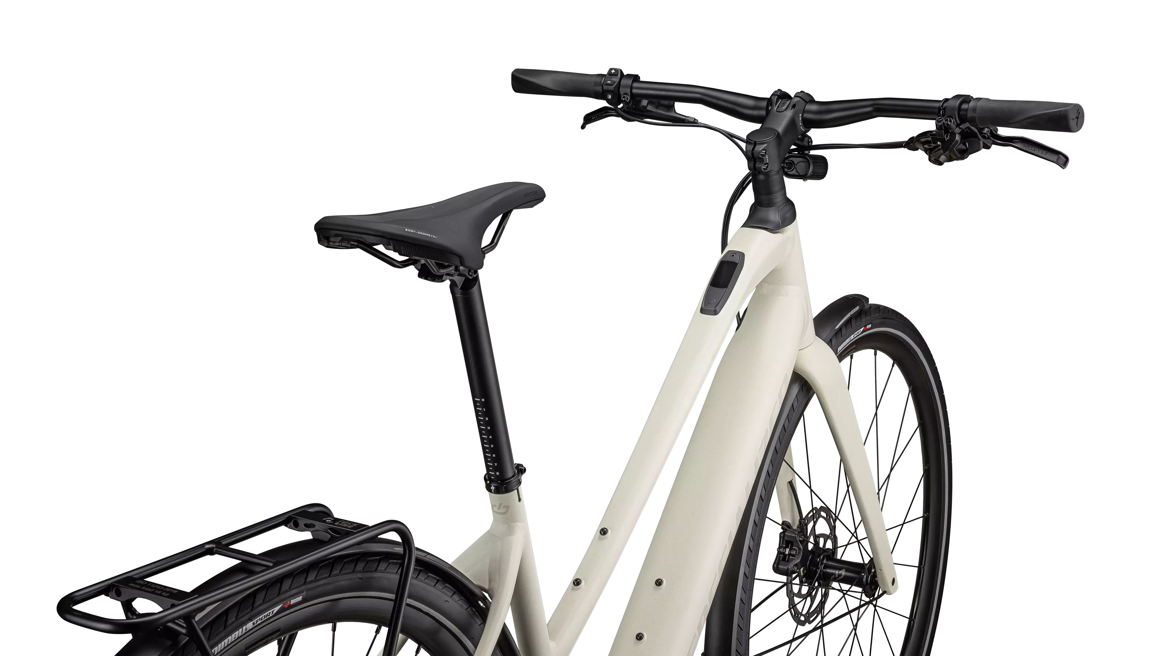 ステップスルーのフレーム形状は、トップチューブを低く保つことで、乗り降りが容易。通勤や通学の移動手段としての利便性を向上させます。搭載されるTurbo SLリアラックはRacktimeと互換性があり、お好みのパニアやバックを搭載できます。またDRYTECHフェンダーが水しぶきや泥はねからライダーを守ります。