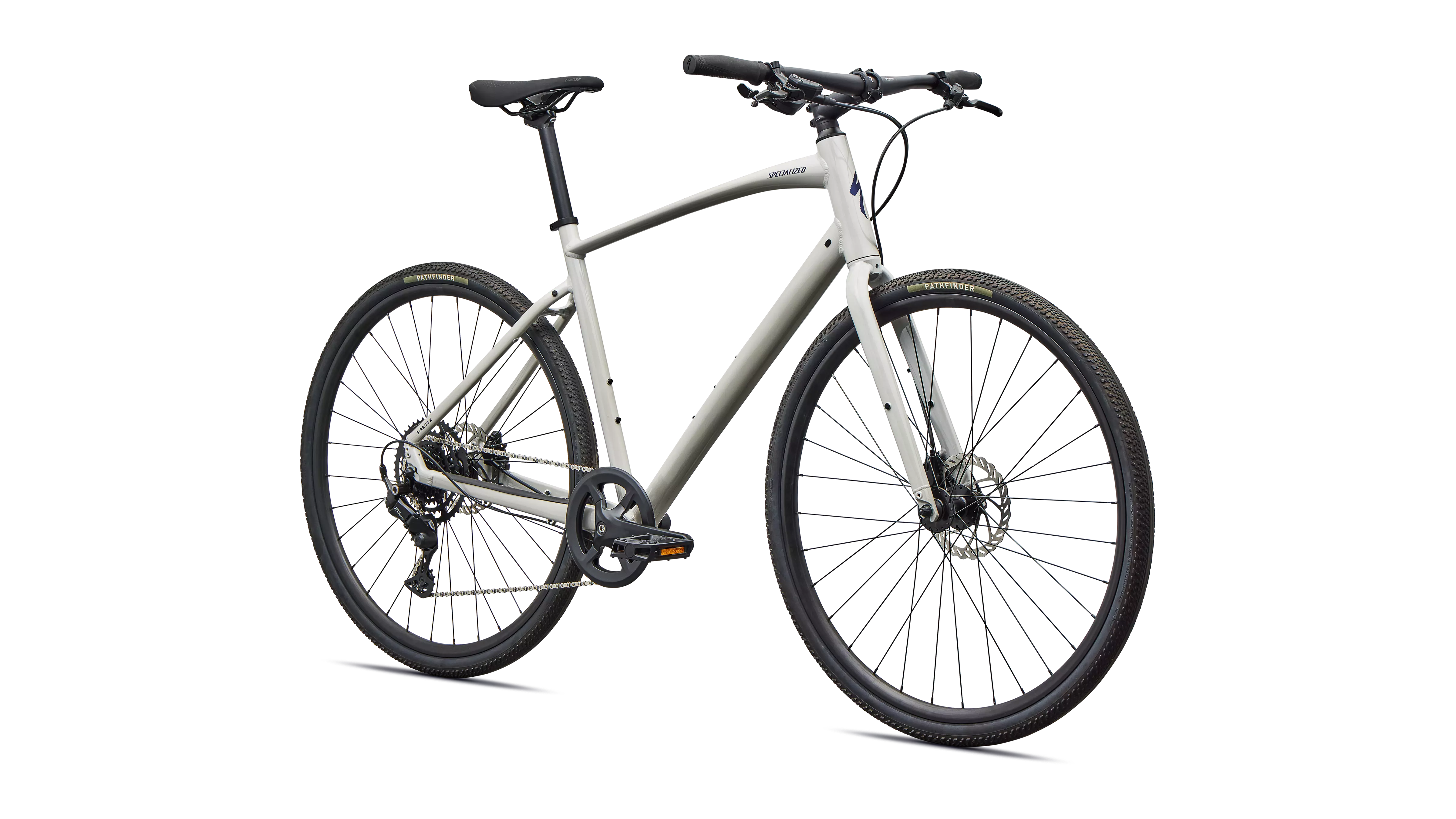 Specialized A1 Premium Aluminum, Fitness Geometry, butted tubing, internal cable routing, flat-mount disc, quick-release, Plug + Play rack/fender mounts