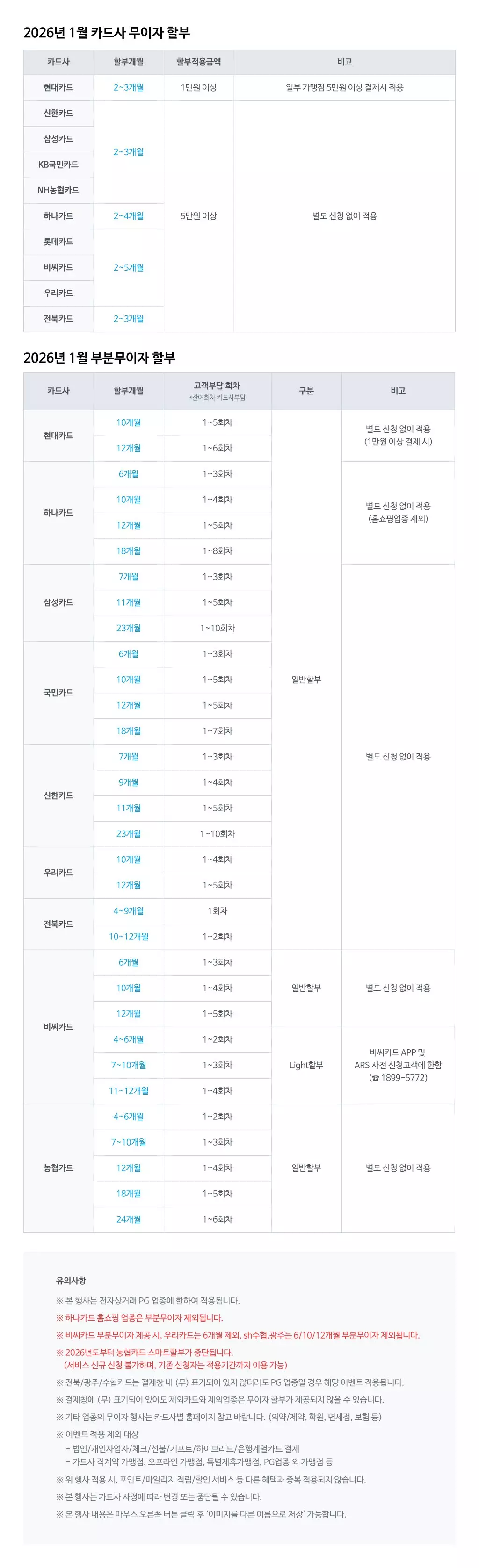 "KCP 카드 결제 시 카드사 별 무이자 혜택을 확인하세요"