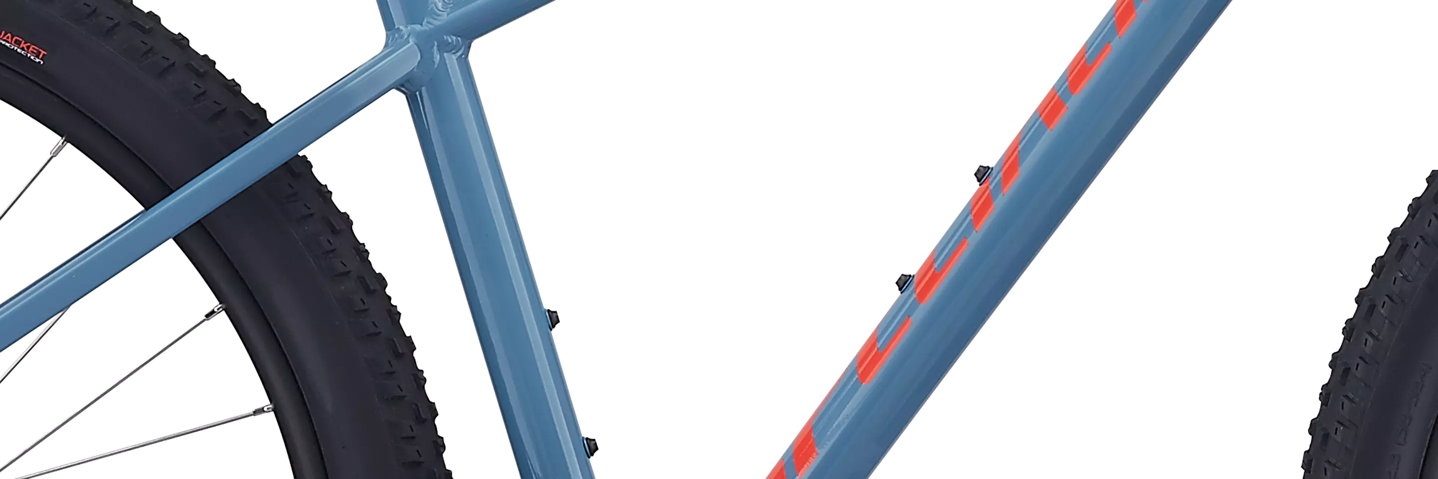 A1 Premium Aluminum, Sport Trail 27.5 Geometry, zero-stack head tube, internal cable routing, 135x9mm forged dropouts, chainstay-mounted disc brake, replaceable alloy derailleur hanger
