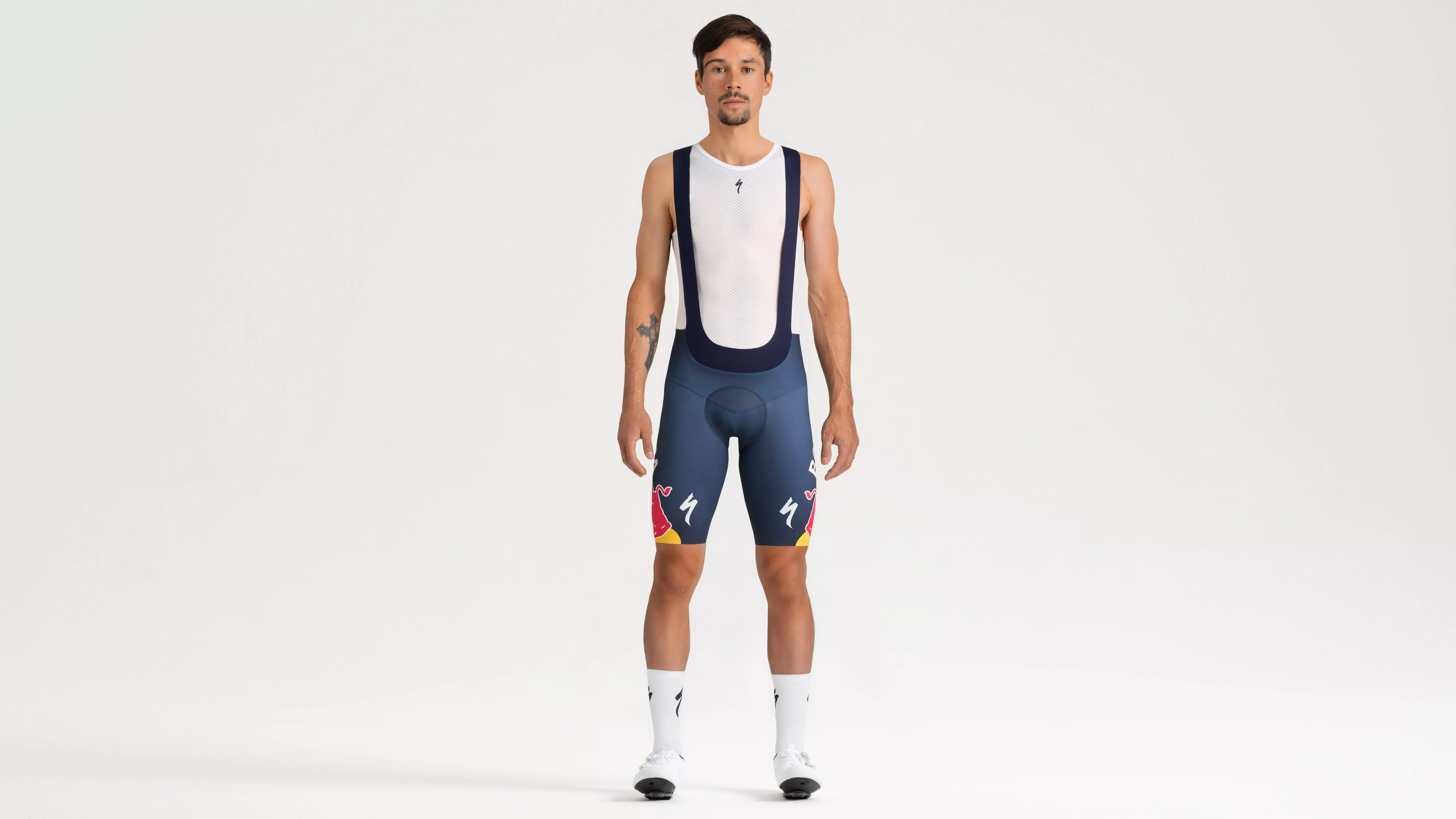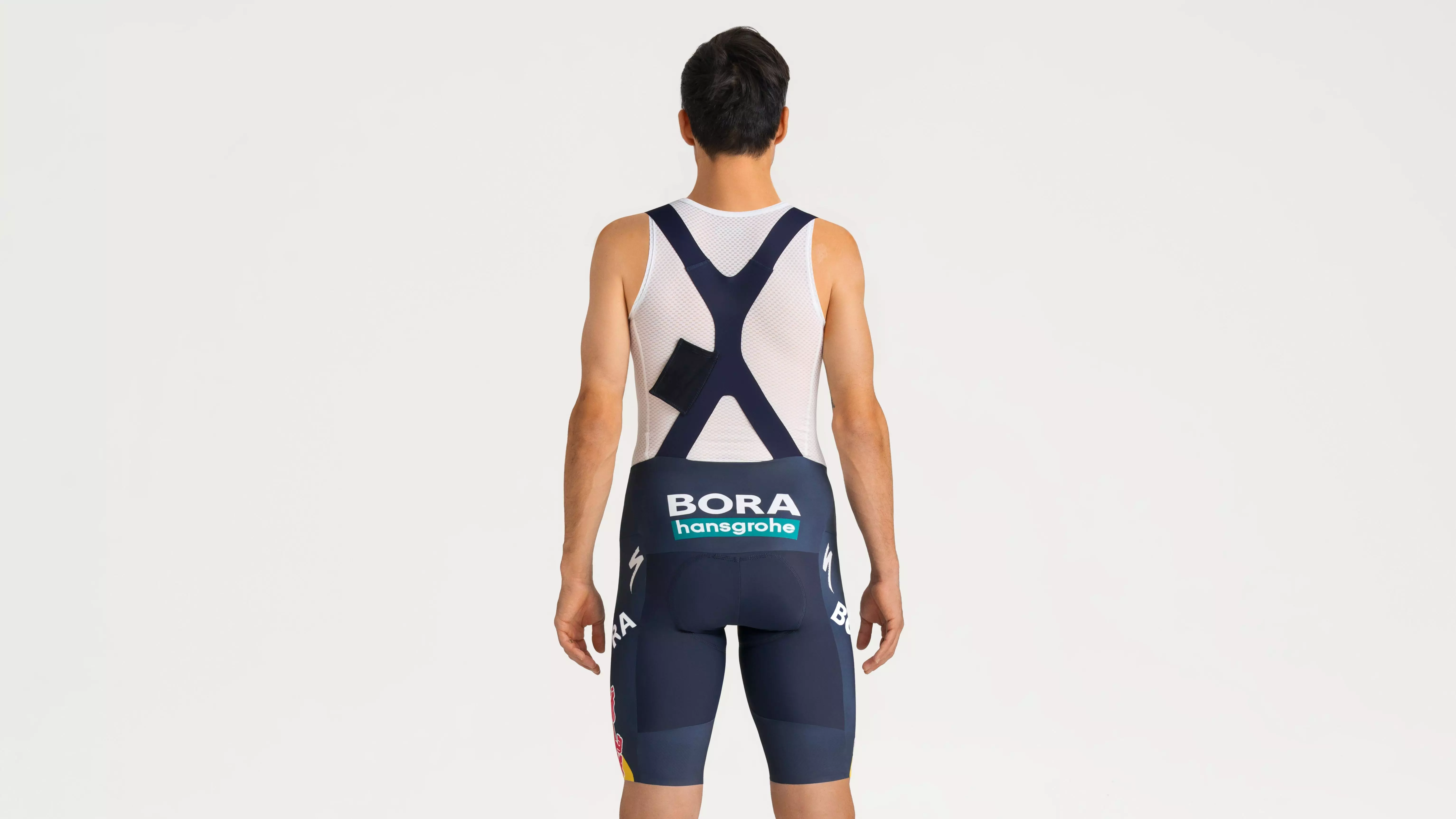 Ride like the pros with the Red Bull - BORA - hansgrohe Race Bib Short, designed to World Tour specifications. Four-way stretch fabric wicks sweat, while breathable suspenders ensure a secure fit. Raw-cut leg openings and a high-compression fit support muscles and reduce fatigue. Featuring the Triple Density Body Geometry Chamois, these bibs deliver pro-level comfort and performance for every ride.
