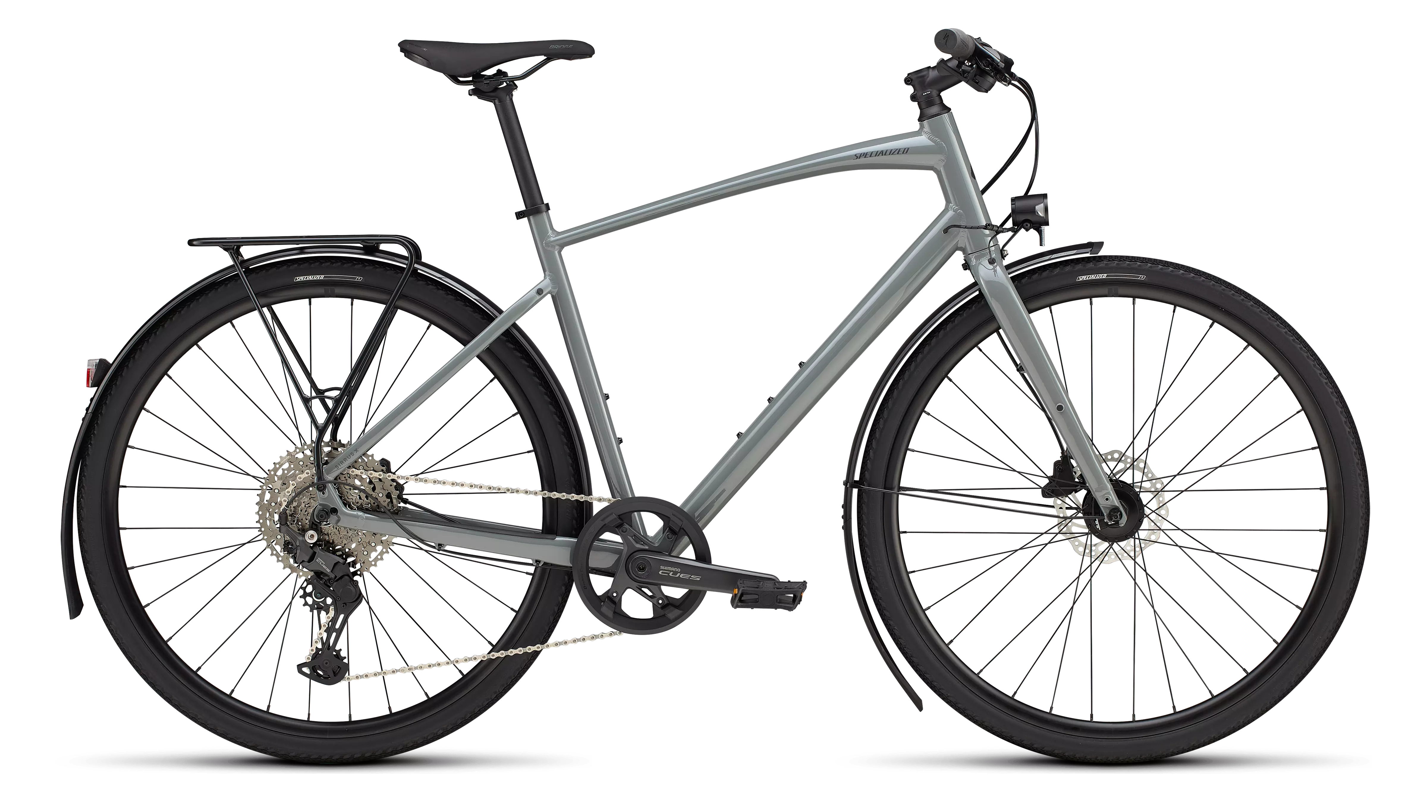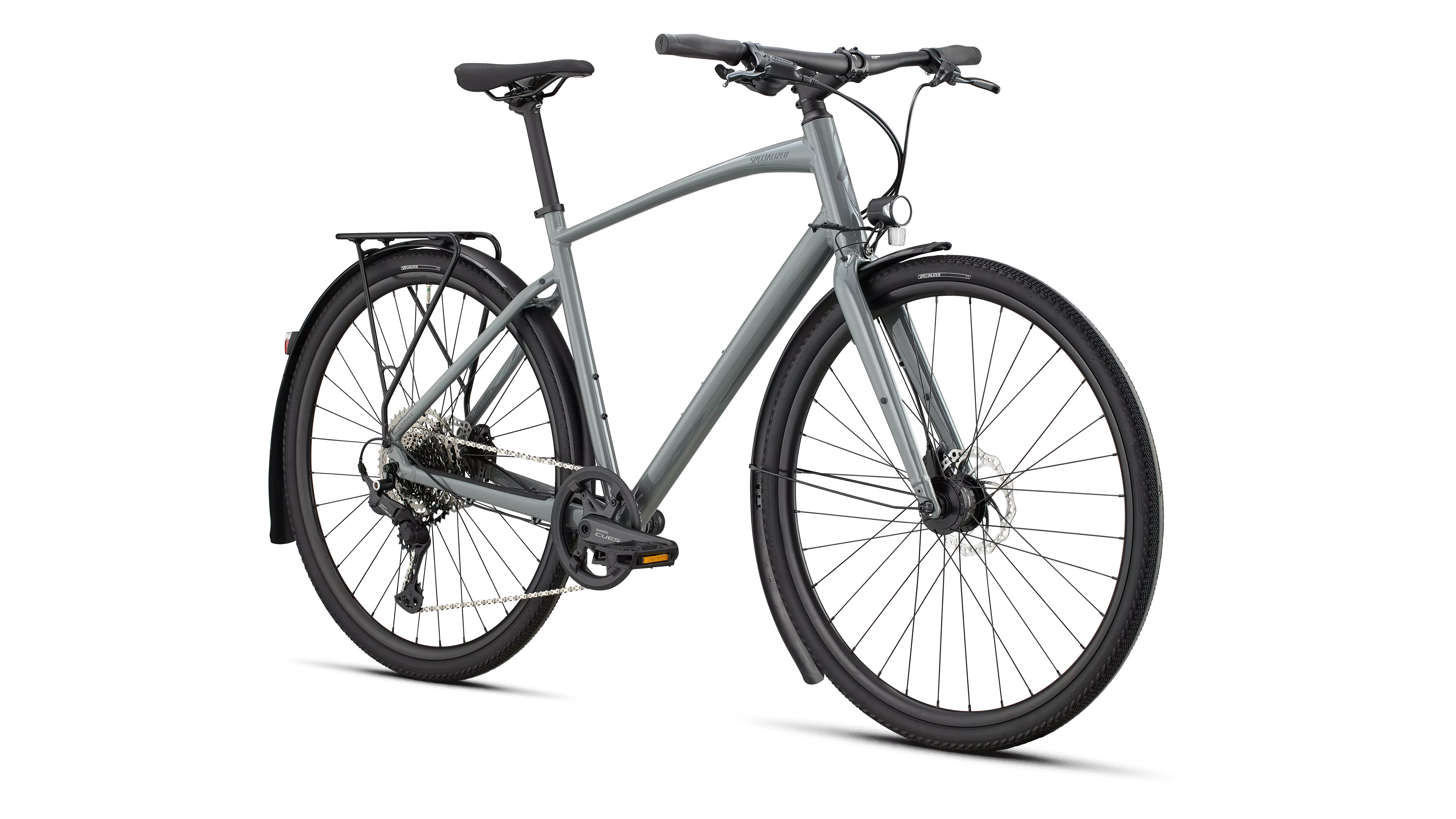 Specialized A1 Premium Aluminum, Fitness Geometry, butted tubing, internal cable routing, flat-mount disc, quick-release, Plug + Play rack/fender mounts