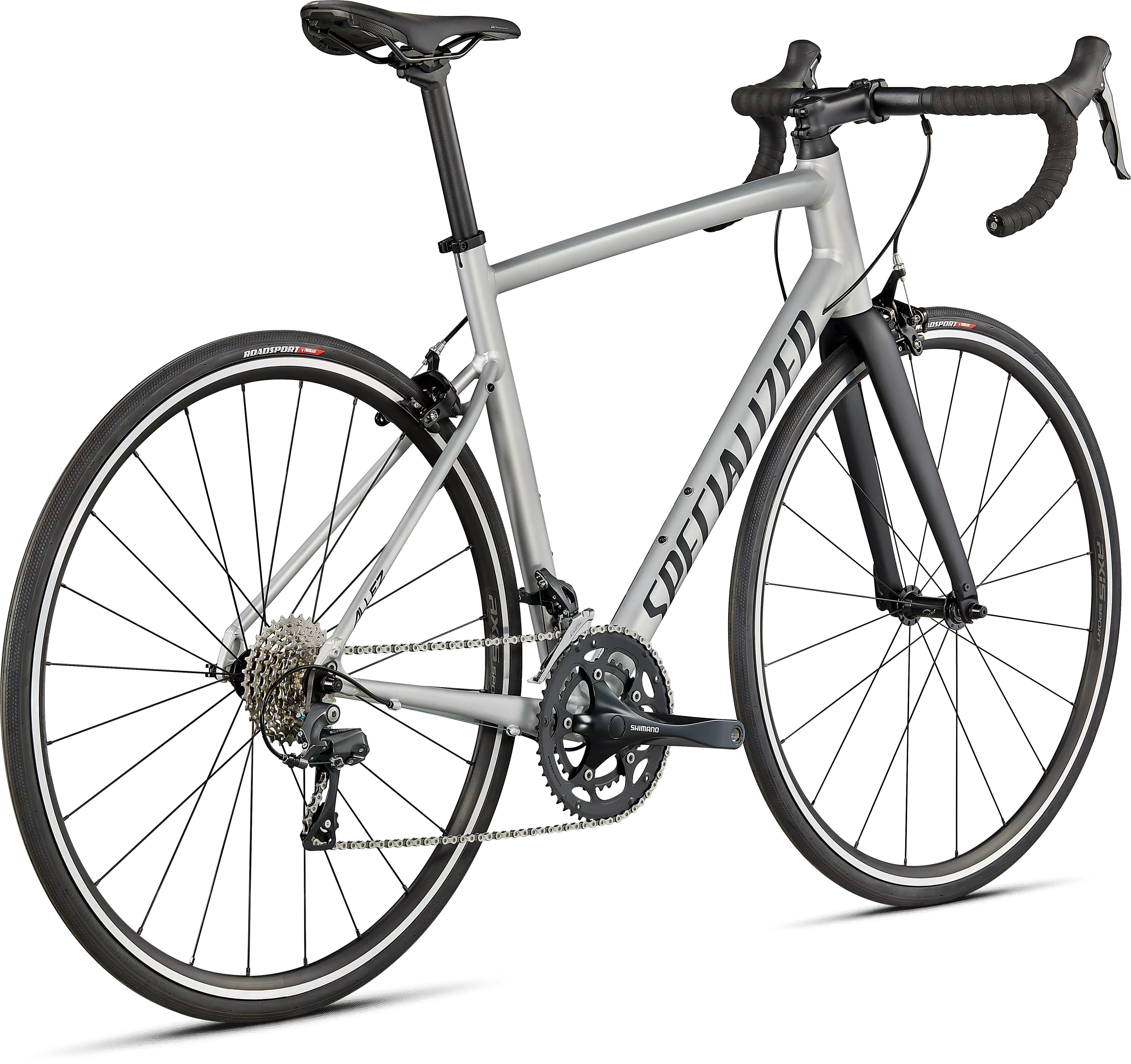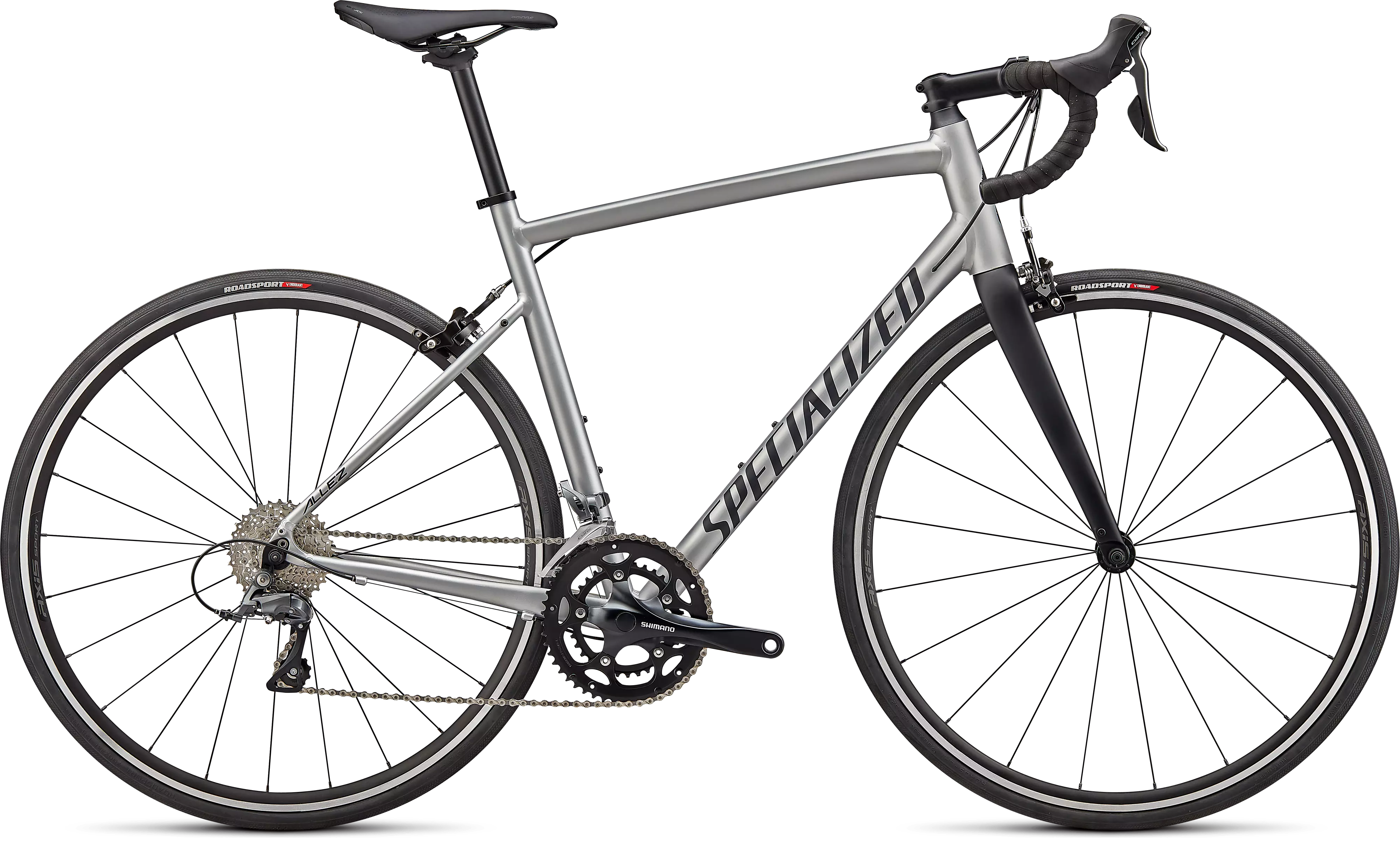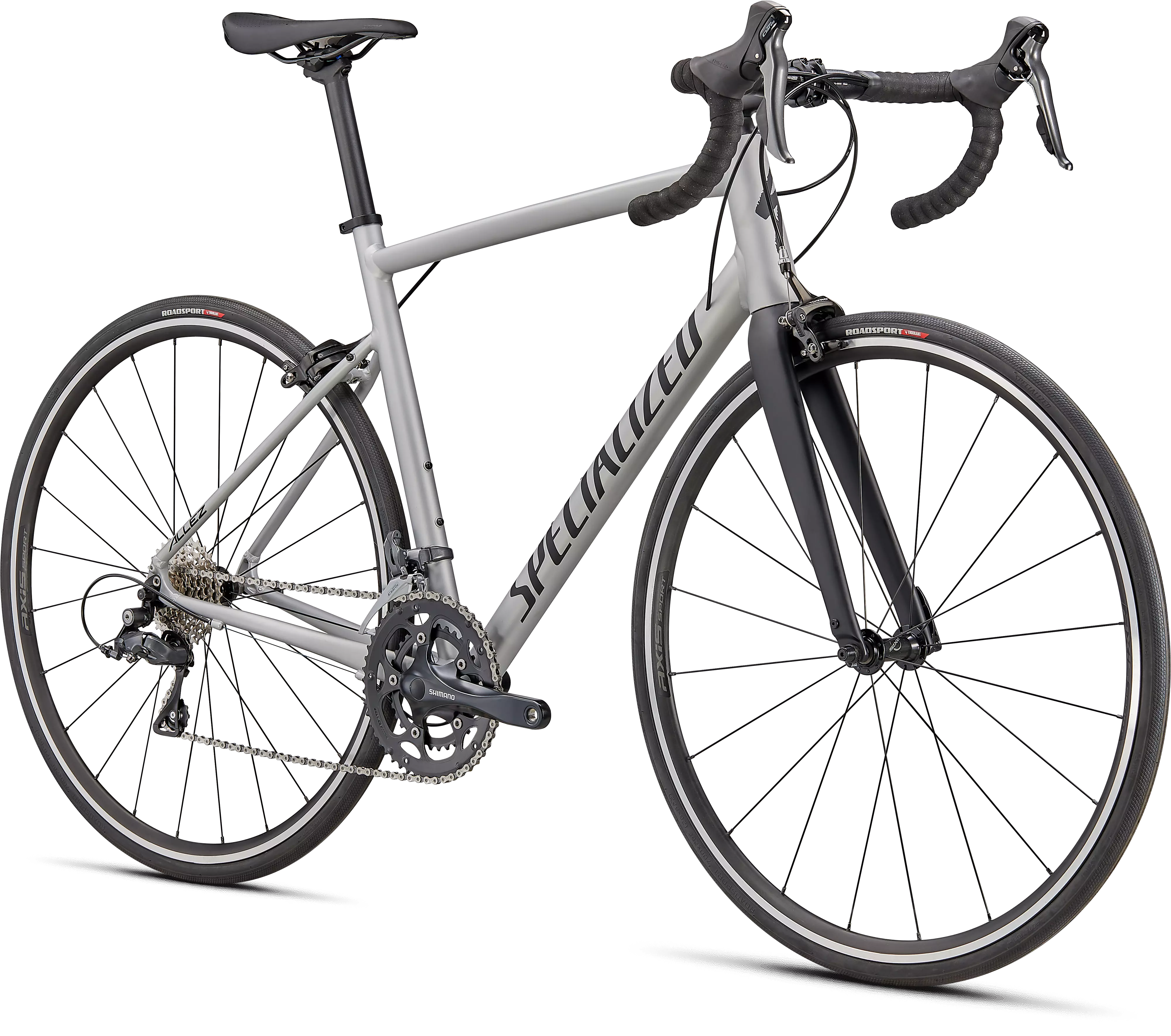 Para el montaje, esta Allez cuenta con cambios fiables Shimano Claris, llantas de aluminio Axis Sport duraderas, el nuevo sillín Body Geometry Bridge súper cómodo y neumáticos RoadSport con protección.