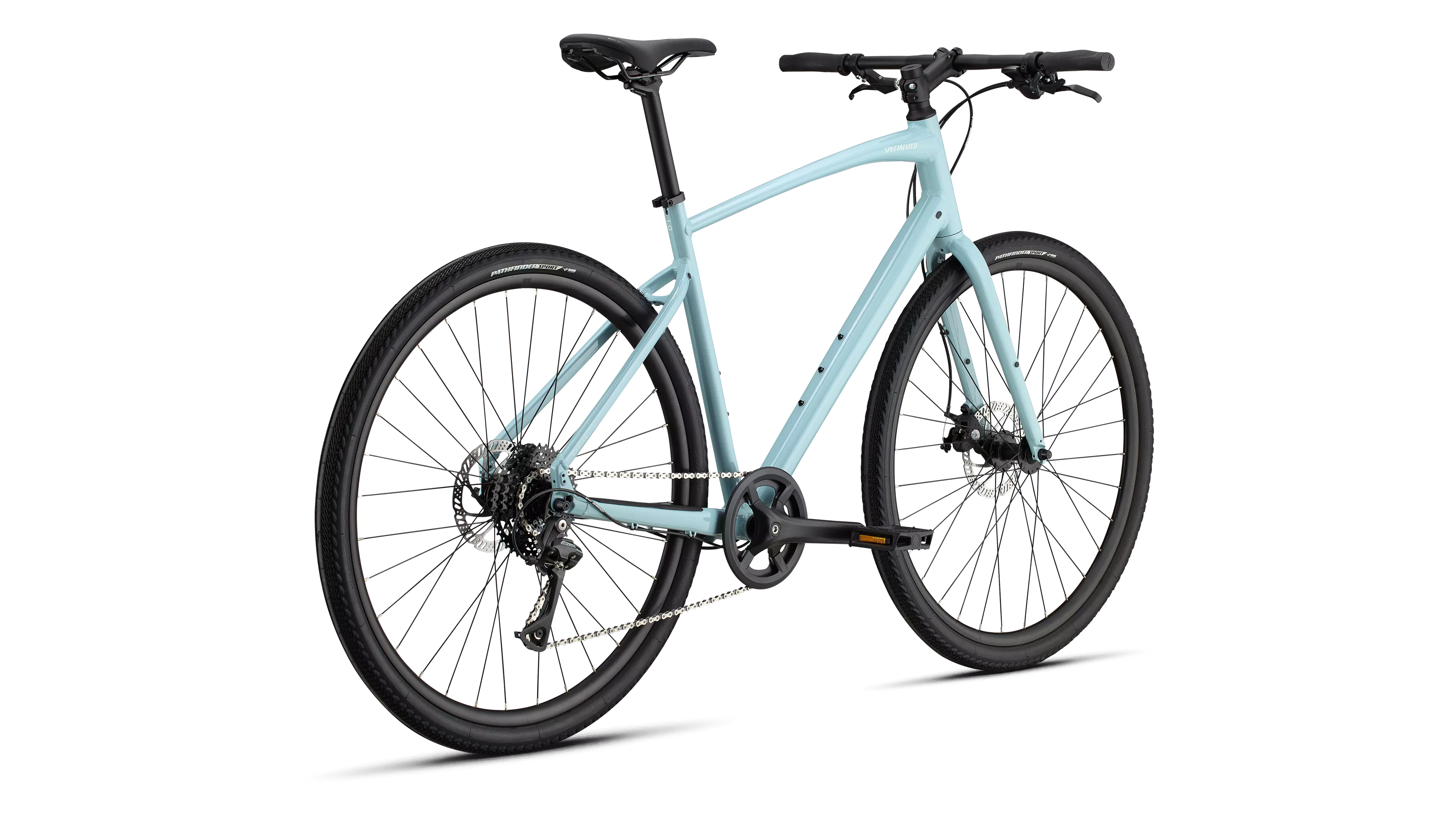 Float over rough terrain with fast rolling Specialized Pathfinder 42c tires featuring proprietary Gripton rubber compound.