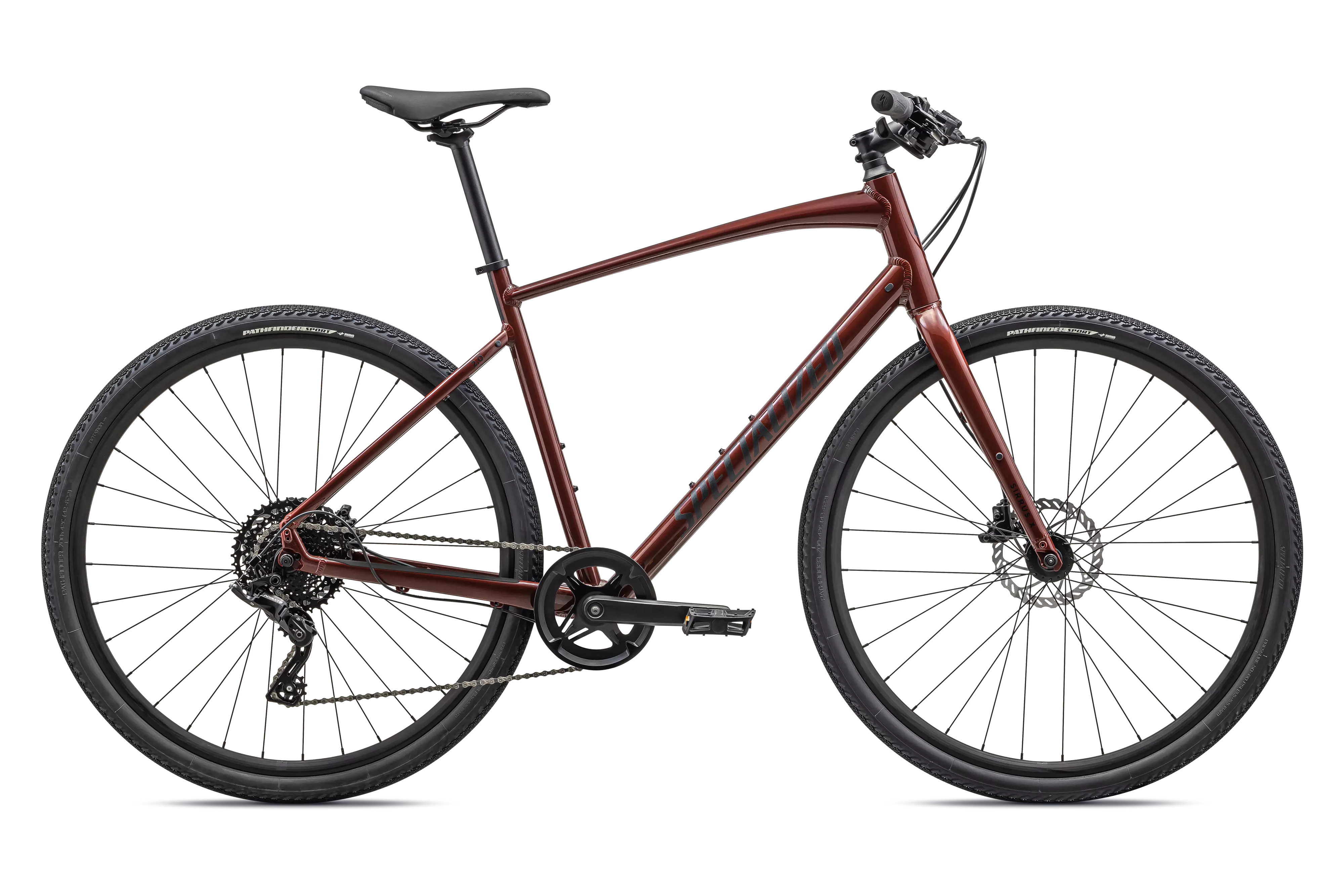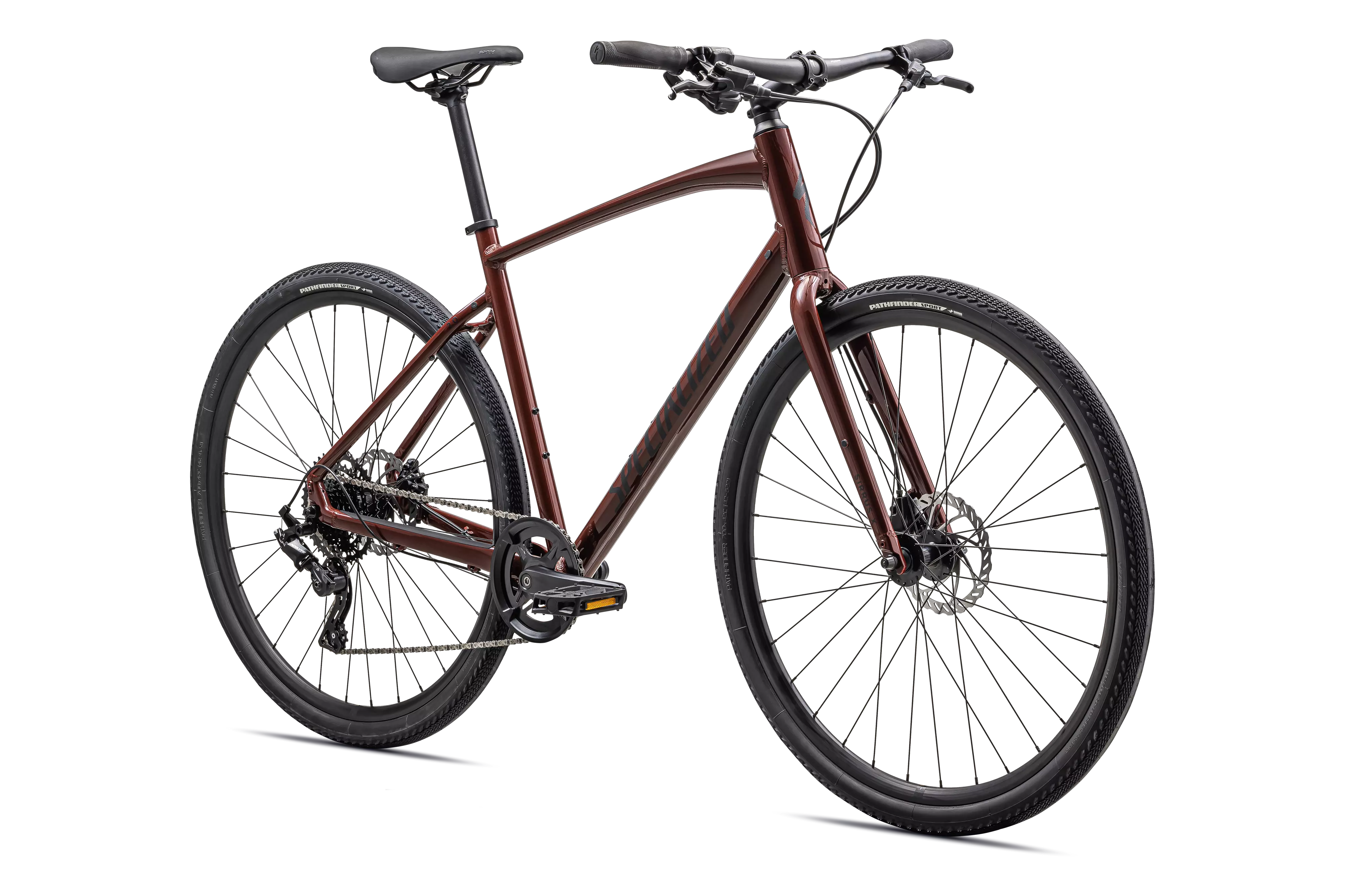 Specialized A1 Premium Aluminum, Fitness Geometry, butted tubing, internal cable routing, flat-mount disc, Plug + Play rack/fender mounts