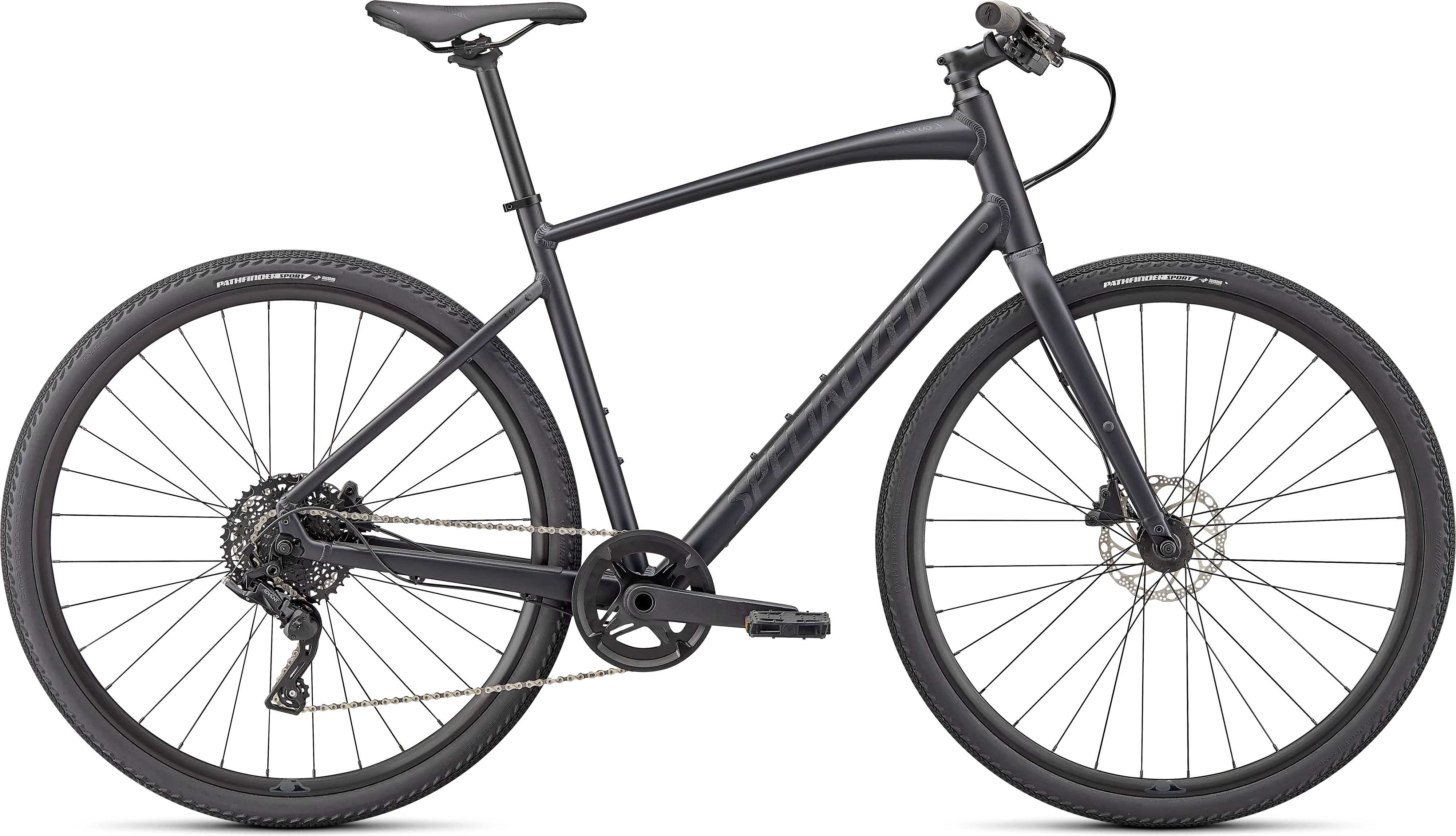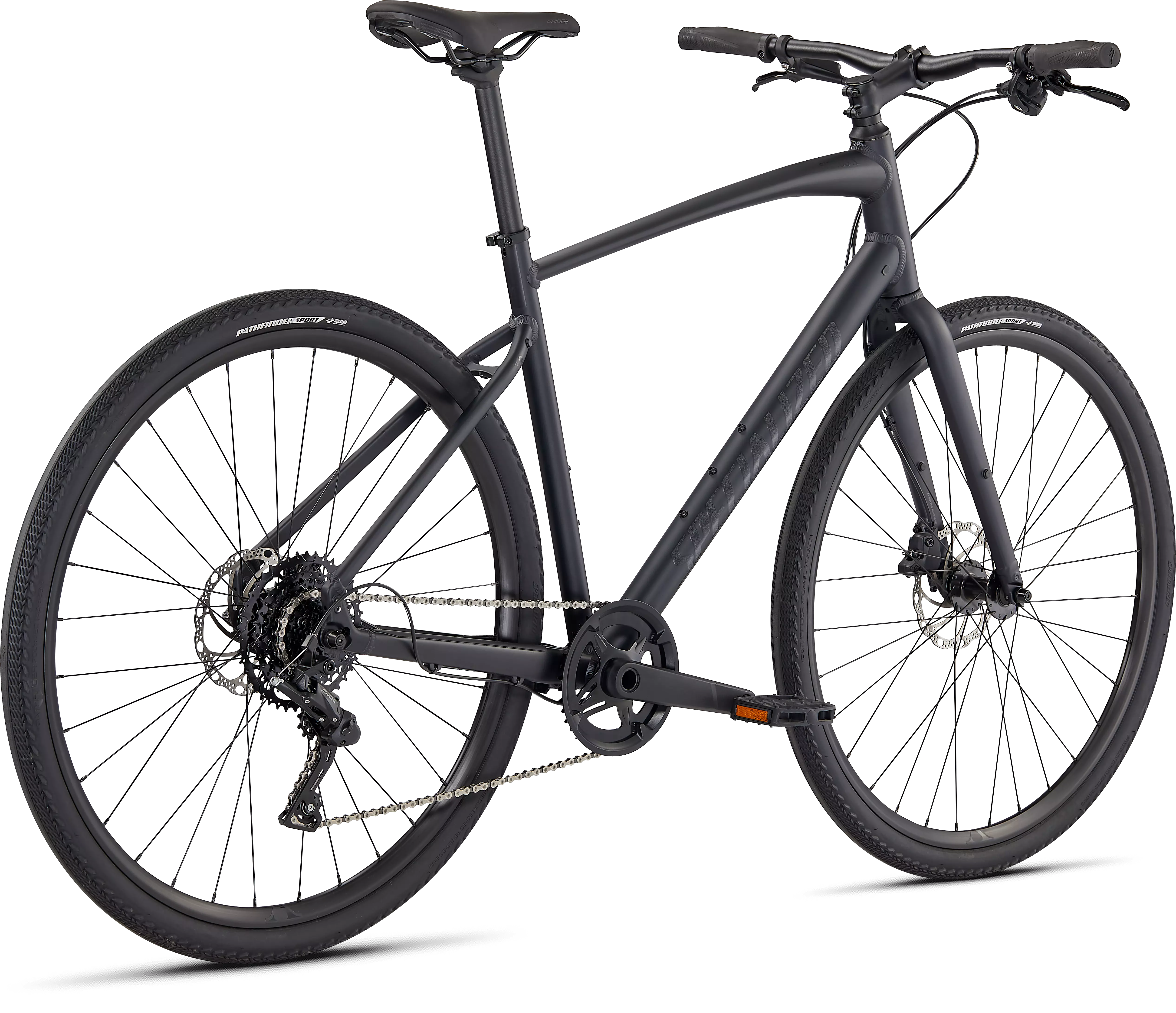 Specialized A1 Premium Aluminum, Fitness Geometry, butted tubing, internal cable routing, flat-mount disc, quick-release, Plug + Play rack/fender mounts