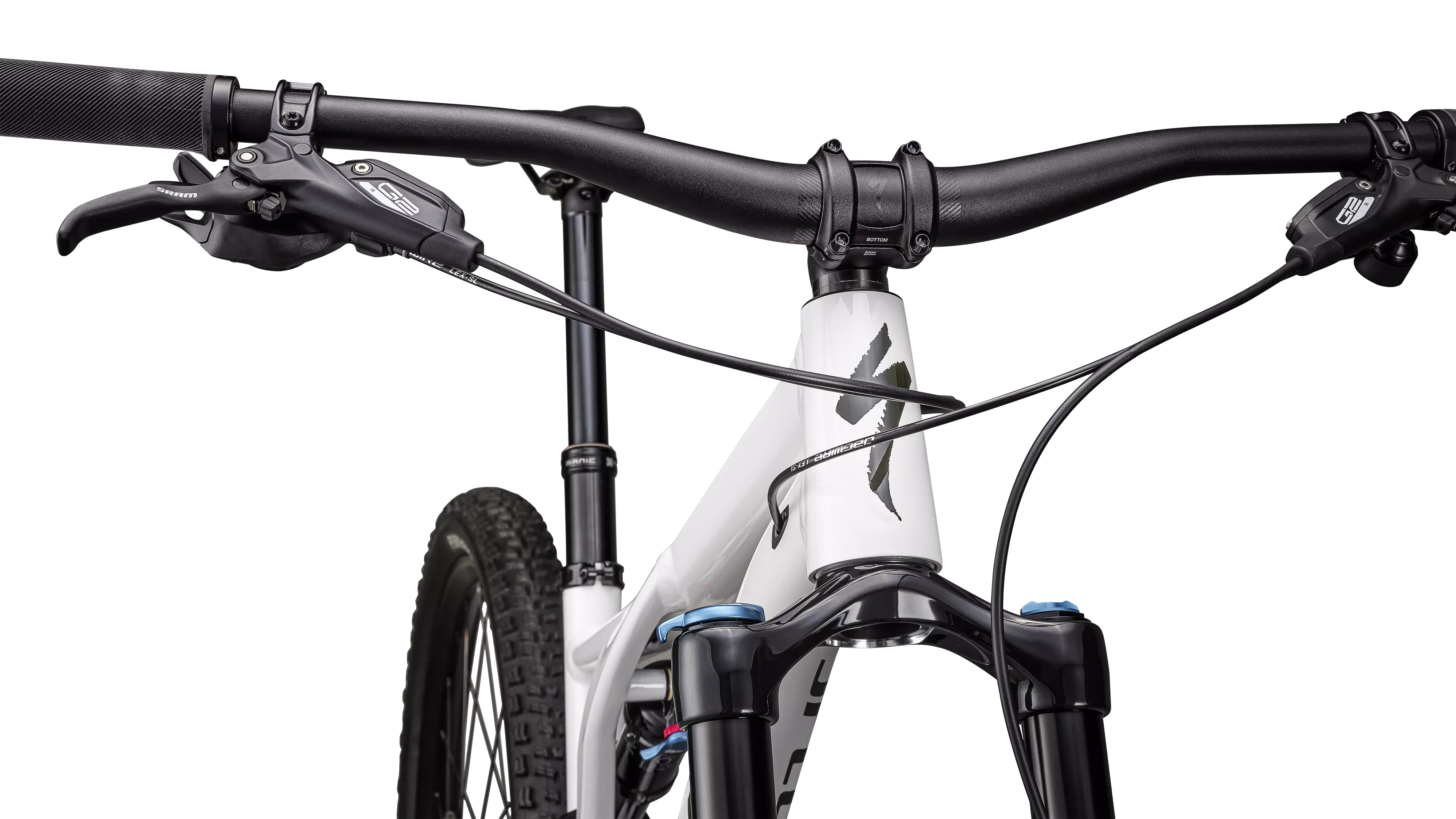 X-Fusion Manic, infinite adjustable, two-bolt head, bottom mount cable routing, remote SLR LE lever, 34.9, S1: 100mm, S2: 125mm, S3: 150mm, S4/S5: 170mm, S6: 190mm