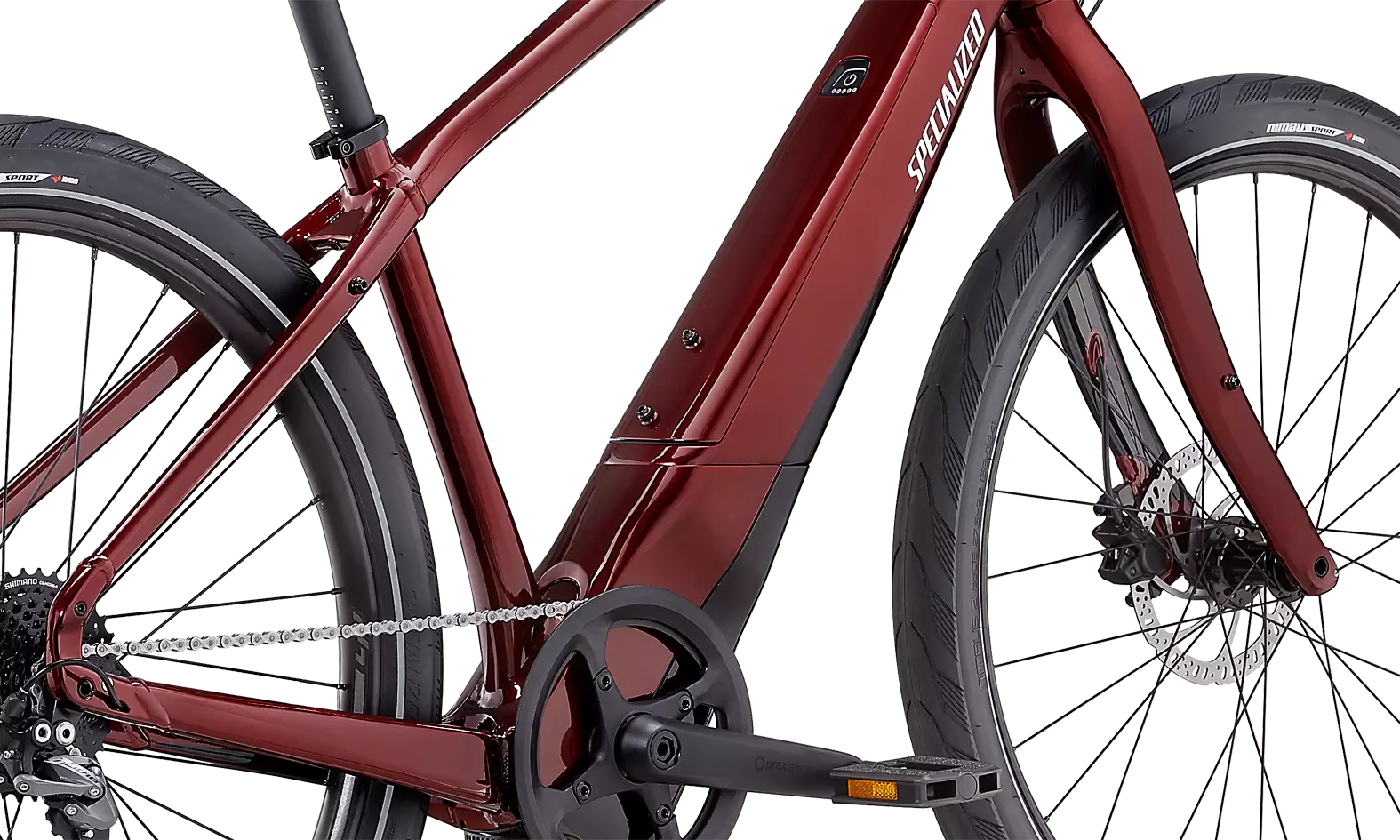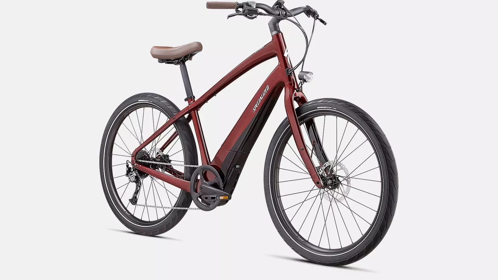 The Turbo Como’s Specialized 1.2 E motor emphasizes efficiency and range. It's also fully integrated with the frame, and has been custom-tuned for city riding. It intuitively reacts to the force of your pedaling, so the harder you pedal, the more power it delivers. And with an internal belt drive design, it does this without added vibration for the smoothest and most silent ride possible.