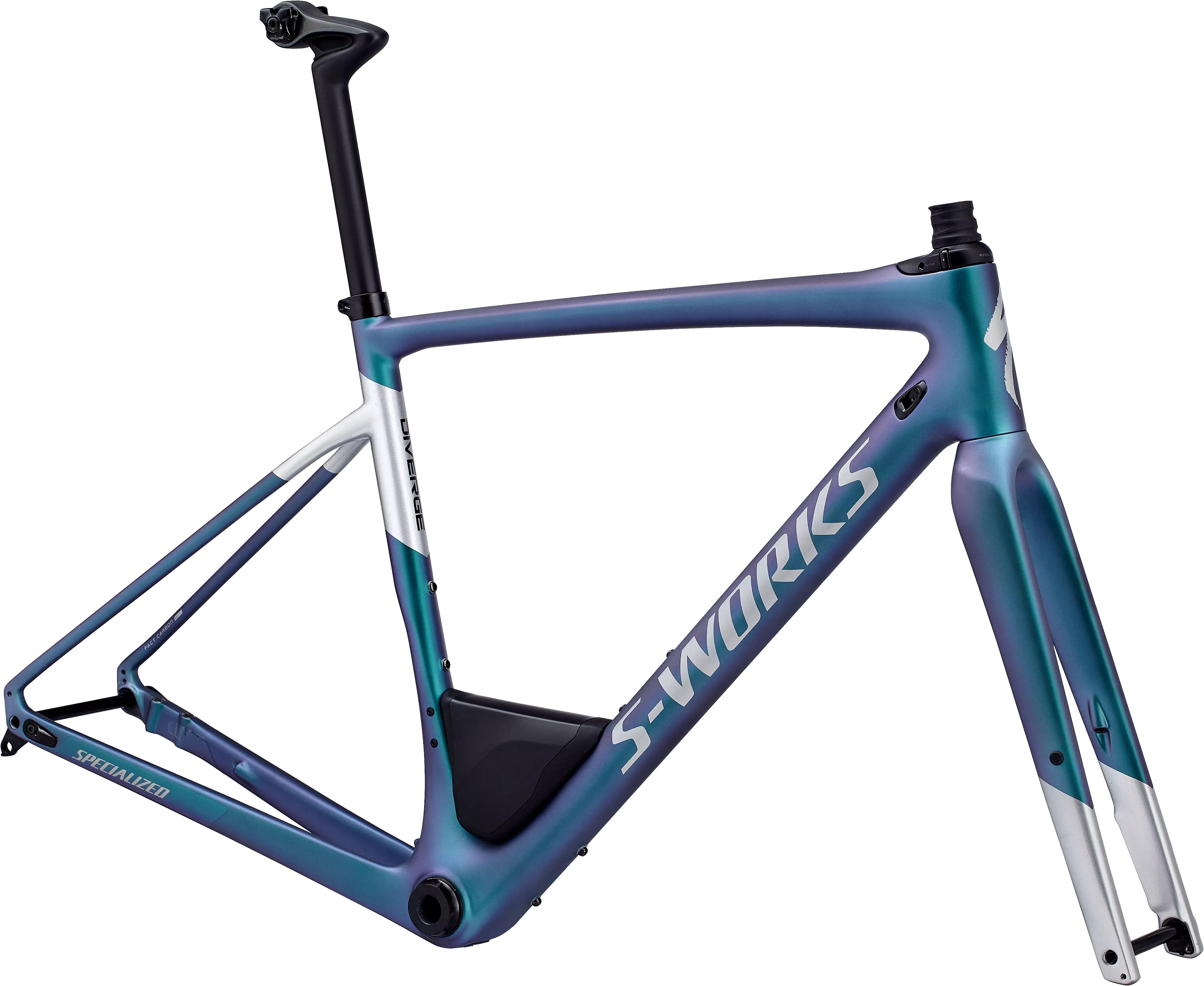 Con un cuadro totalmente rediseñado, la nueva Diverge es más capaz que nunca. Tiene el objetivo de satisfacer todas tus necesidades, y por ello hemos tenido en cuenta la petición número uno, tener más espacio para los neumáticos. En el nuevo cuadro se pueden montar neumáticos de hasta 700x42 mm dejando espacio para que no se acumule barro. Junto con el mayor espacio para los neumáticos, el peso ha sido otro factor muy importante para el diseño, y para mejorarlo nos hemos fijado en algunos puntos de la Roubaix, hemos creado un cuadro de los más ligeros del mercado gracias al carbono FACT 11r.