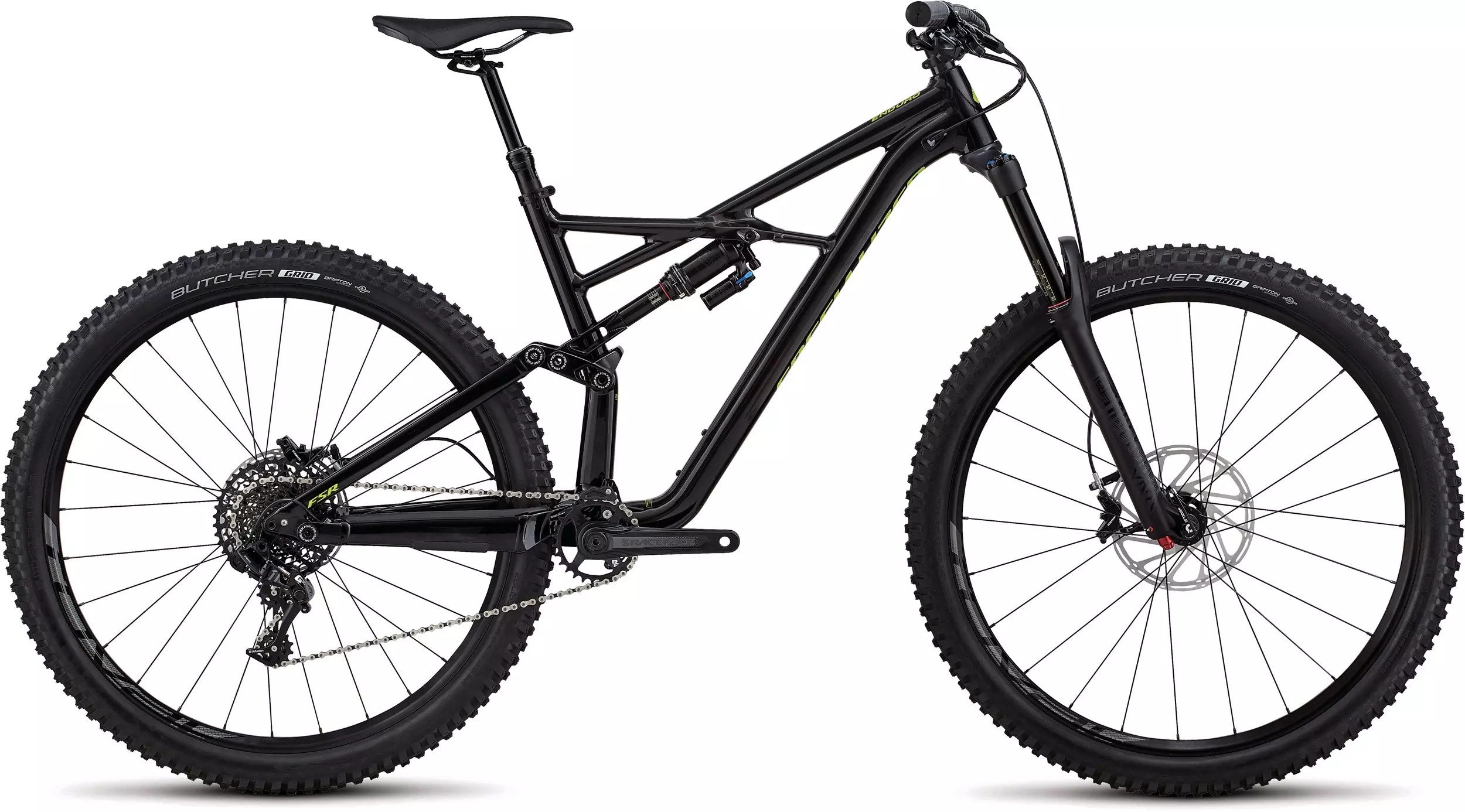 En el montaje, esta Enduro cuenta con transmisión SRAM 1x11, potentes frenos Guide R, ruedas Roval y horquilla RockShox Yari en la parte delantera.