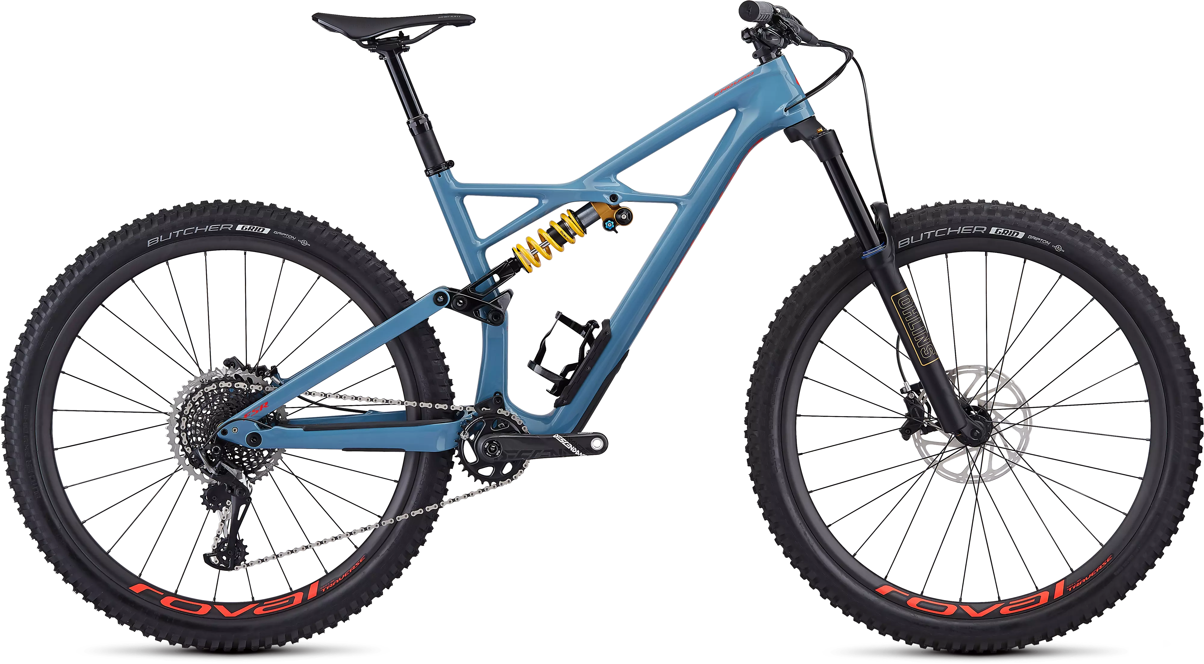 Cuando el camino sube y baja y el trail es lo que buscas la Enduro Pro está lista para la llamada. Tiene los atributos que el trail demanda, como una geometría relajada, mucho recorrido un cuadro duro y muy facil de pedalear. Y con sus ruedas de 29 pulgadas, es es muy versatil. Nuestra misión fue crear la bicicleta de trail con un recorrido largo, y todo comenzó con una mirada a la geometría. Básicamente, la modernizamos - jalando hacia fuera el frontal, alargando el tubo superior, acortando los chainstays, y bajando el bottom bracket. Todos esto hace que la bici realmente se sienta pegada a la tierra, y la plataforma es más sensible y capaz que nunca. Añadimos detalles cruciales para mejorar tu experiencia, como el compartimiento SWAT en el tubo bajo, un bottom bracker forjado y el cableado interno. Y para mantener el peso bajo, el cuadro está construido con nuestro legendario carbono FACT 9m y con un terminal posterior de aluminio M5. Para garantizar los altos grados de esfuerzo esta material es granadioso, otorgando 160mm de viaje de suspensión trasera y delantera. más una geometría que puede ser "ajustada" vía una extensión del amortiguador, con un ajuste "bajo/alto" Para complementar su performance, esta Enduro trae SRAM X01 Eagle de 12 velocidades, poderosos frenos SRAM Code R, ruedas de carbón Roval muy rápidas, un Command Post IRcc y una horquilla Öhlins RXF 36.