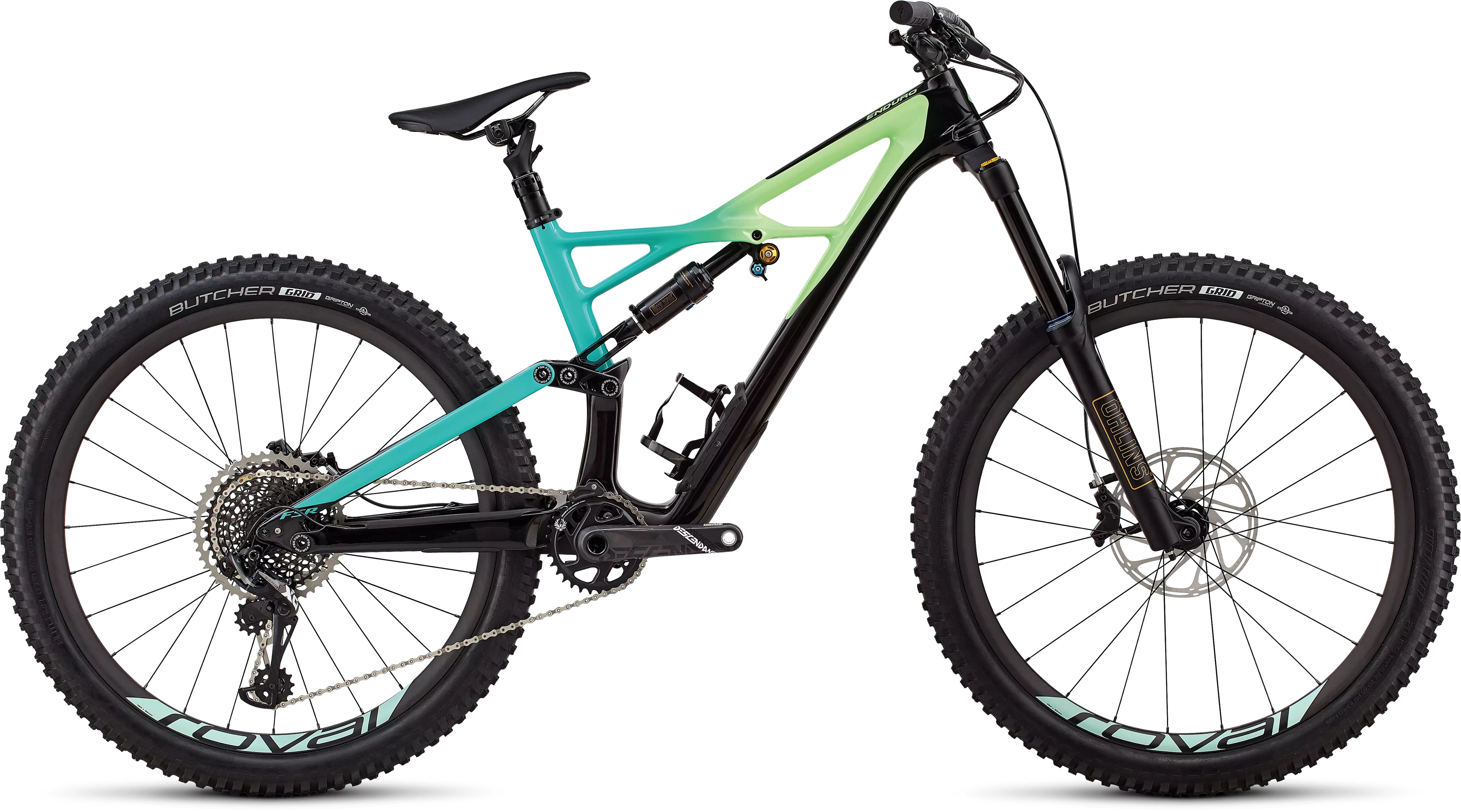 En el montaje, esta Enduro cuenta con transmisión SRAM X01 Eagle de 12 velocidades, potentes frenos Code R, ruedas Roval de carbono, poste de asiento Command Post IRcc Wu y horquilla Öhlins RXF 36.
